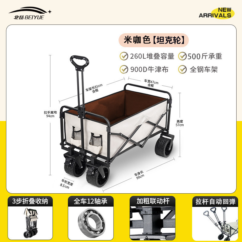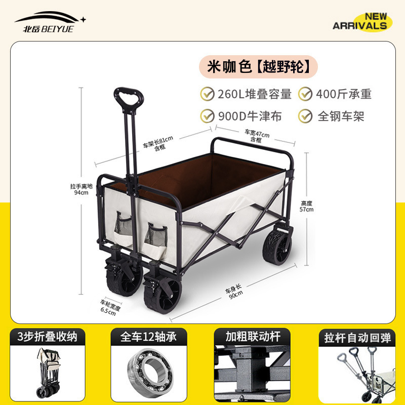 • 카키 [이중 두꺼운 옥스포드 천] - 업그레이드 / 8inch 베어링 오프로드 휠 / 더블 브레이크 + 접이식 테이블