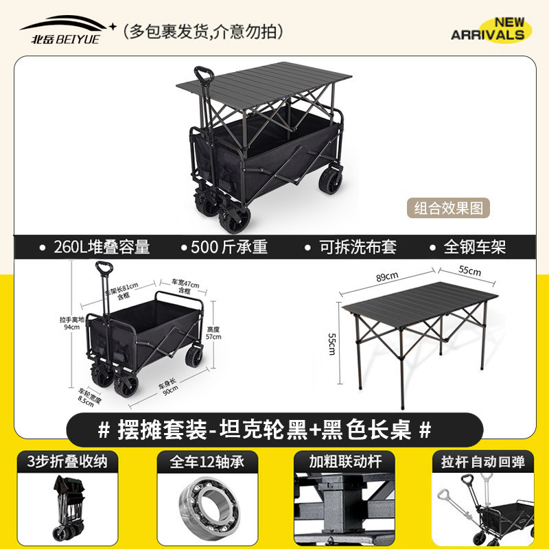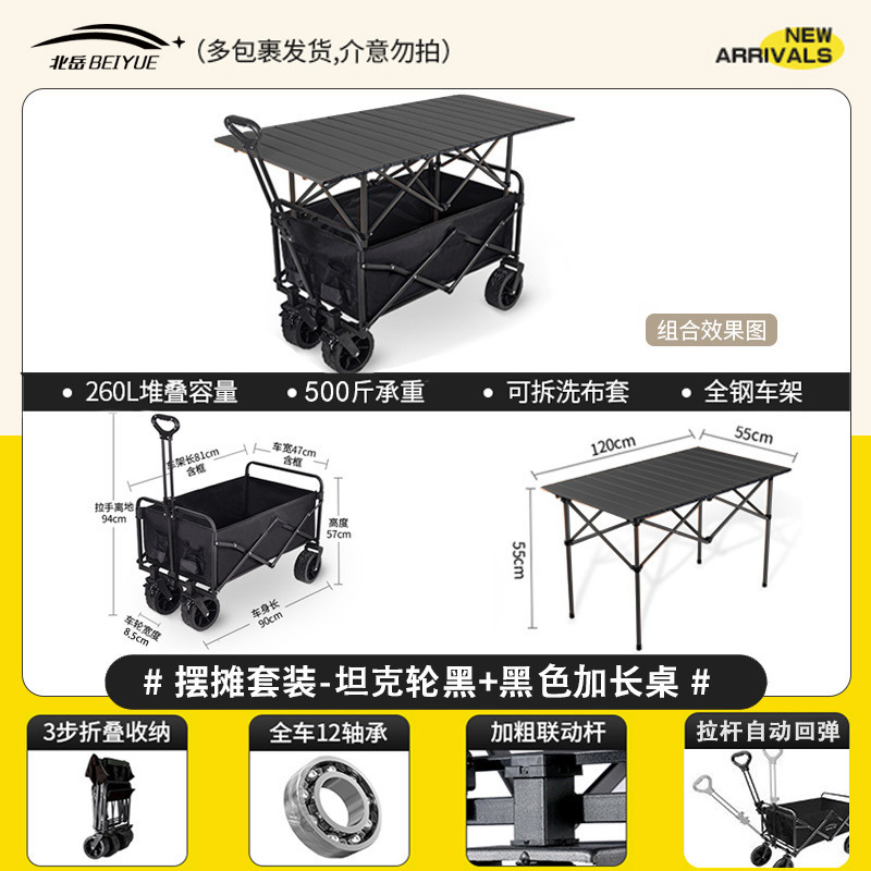 • 블랙 [이중 두꺼운 옥스포드 천] - 상단 구성 / 10inch 탱크 휠 / 더블 브레이크 + 스톨 확장 테이블