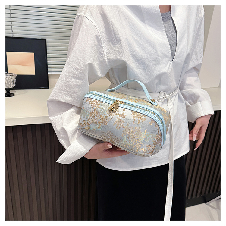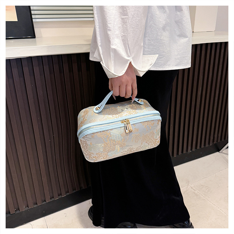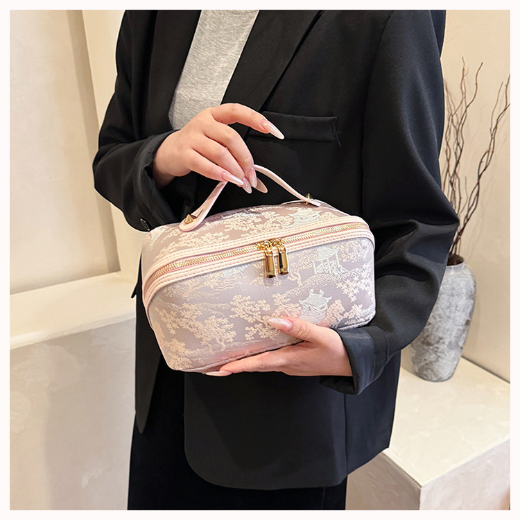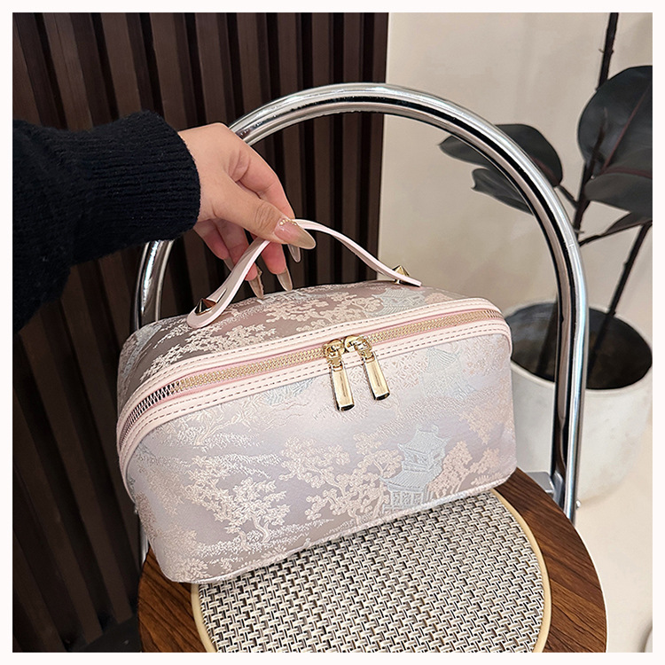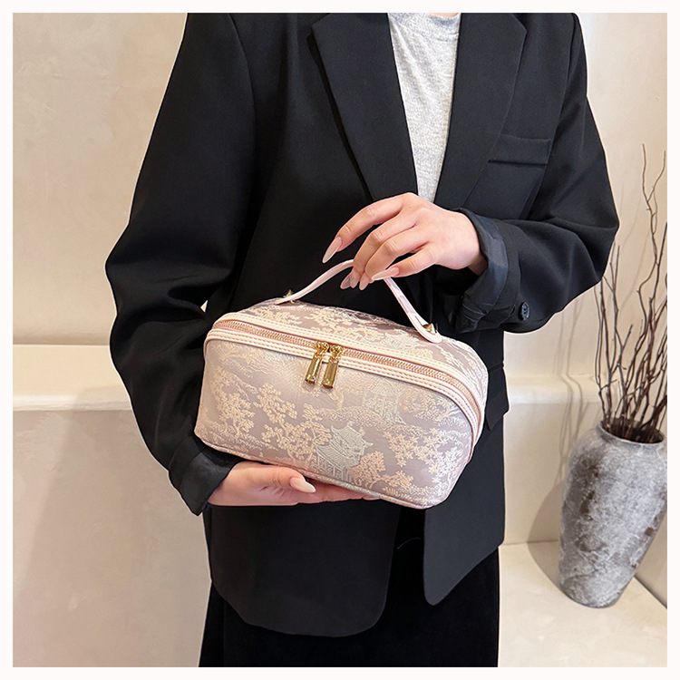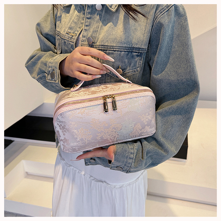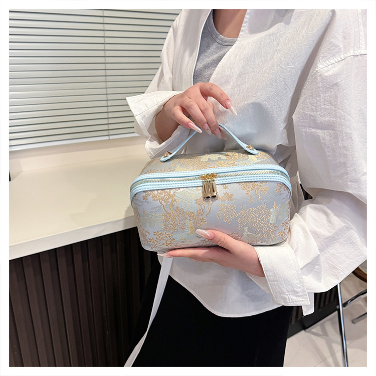 국경을 넘는 중국풍 자수 화장품 가방 여성용 신상품 대용량 출퇴근 수납 가방 고급스러운 휴대용 세면도구 가방스토어 가기
