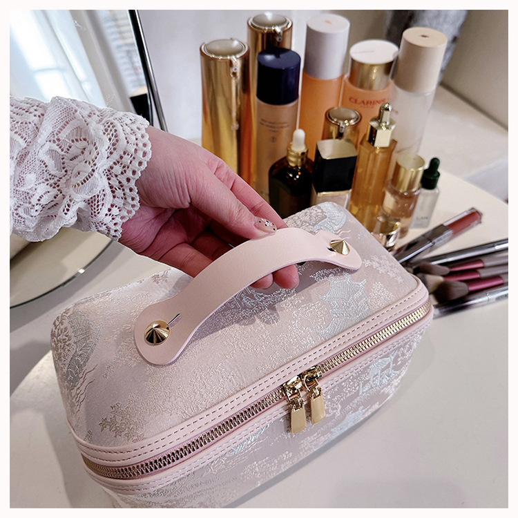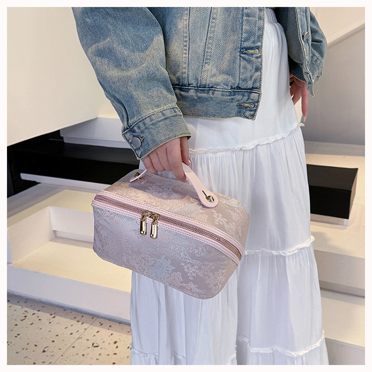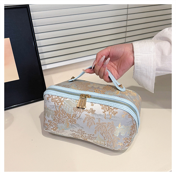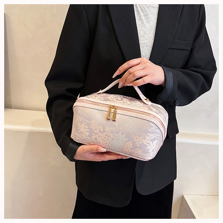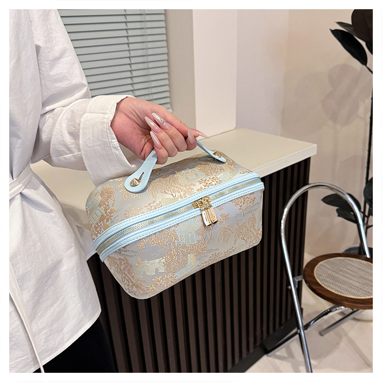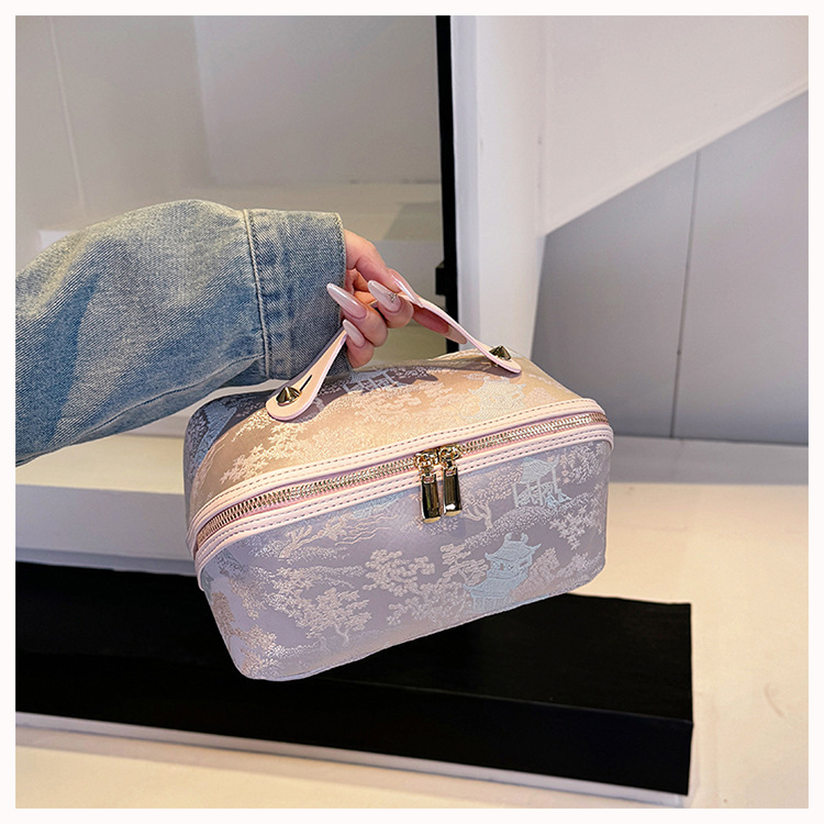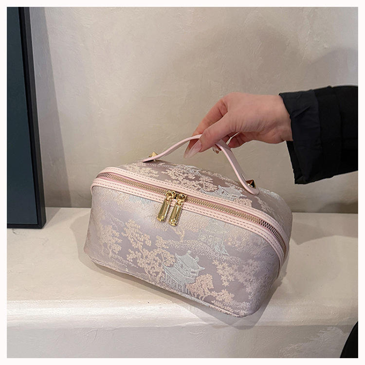 국경을 넘는 중국풍 자수 화장품 가방 여성용 신상품 대용량 출퇴근 수납 가방 고급스러운 휴대용 세면도구 가방스토어 가기