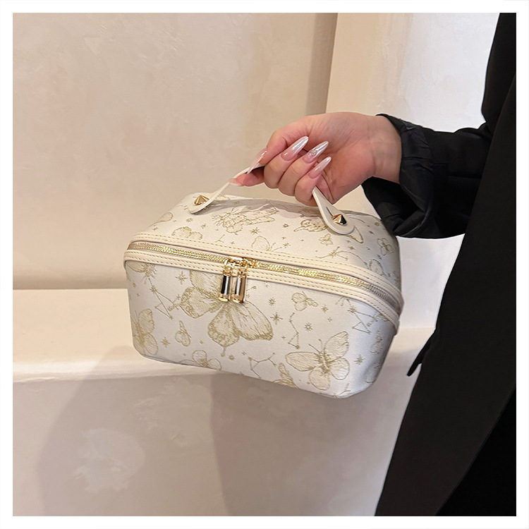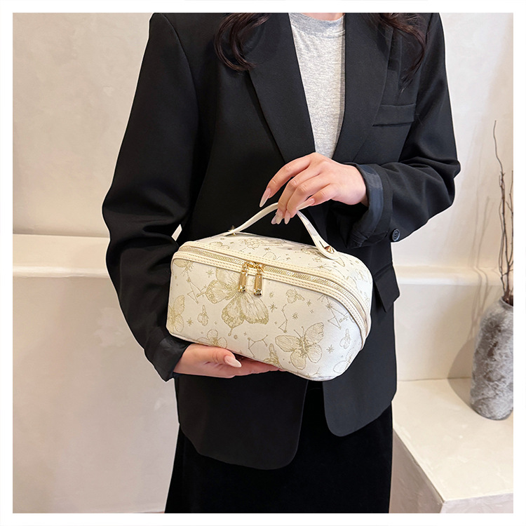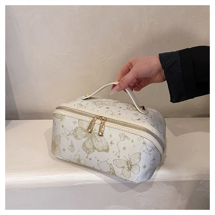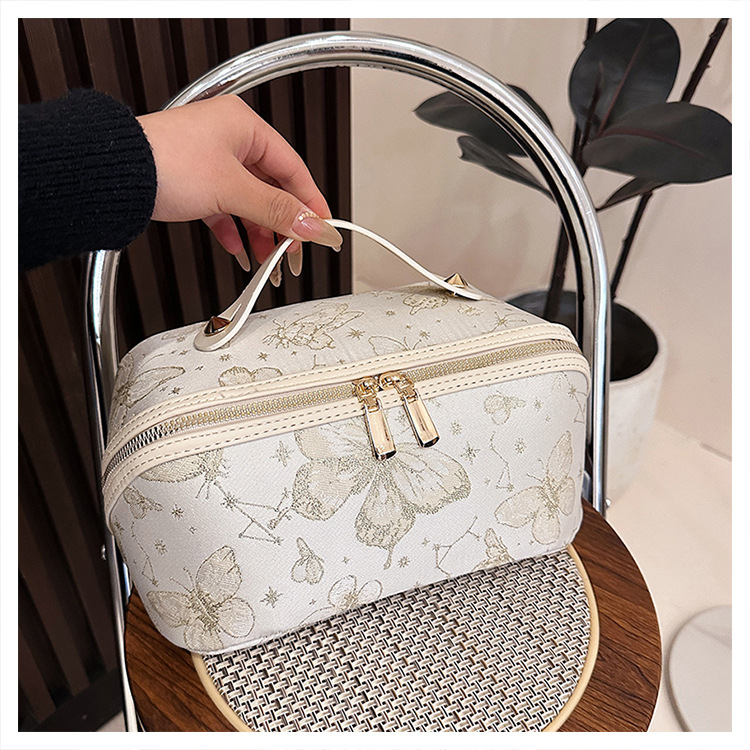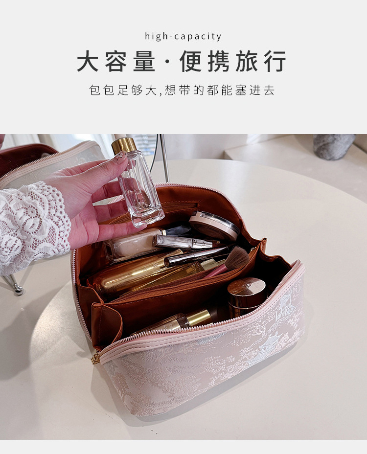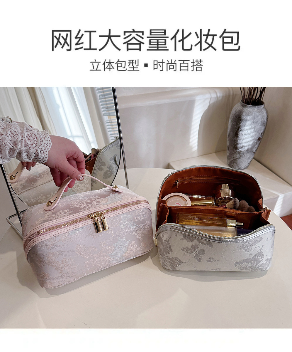 국경을 넘는 중국풍 자수 화장품 가방 여성용 신상품 대용량 출퇴근 수납 가방 고급스러운 휴대용 세면도구 가방