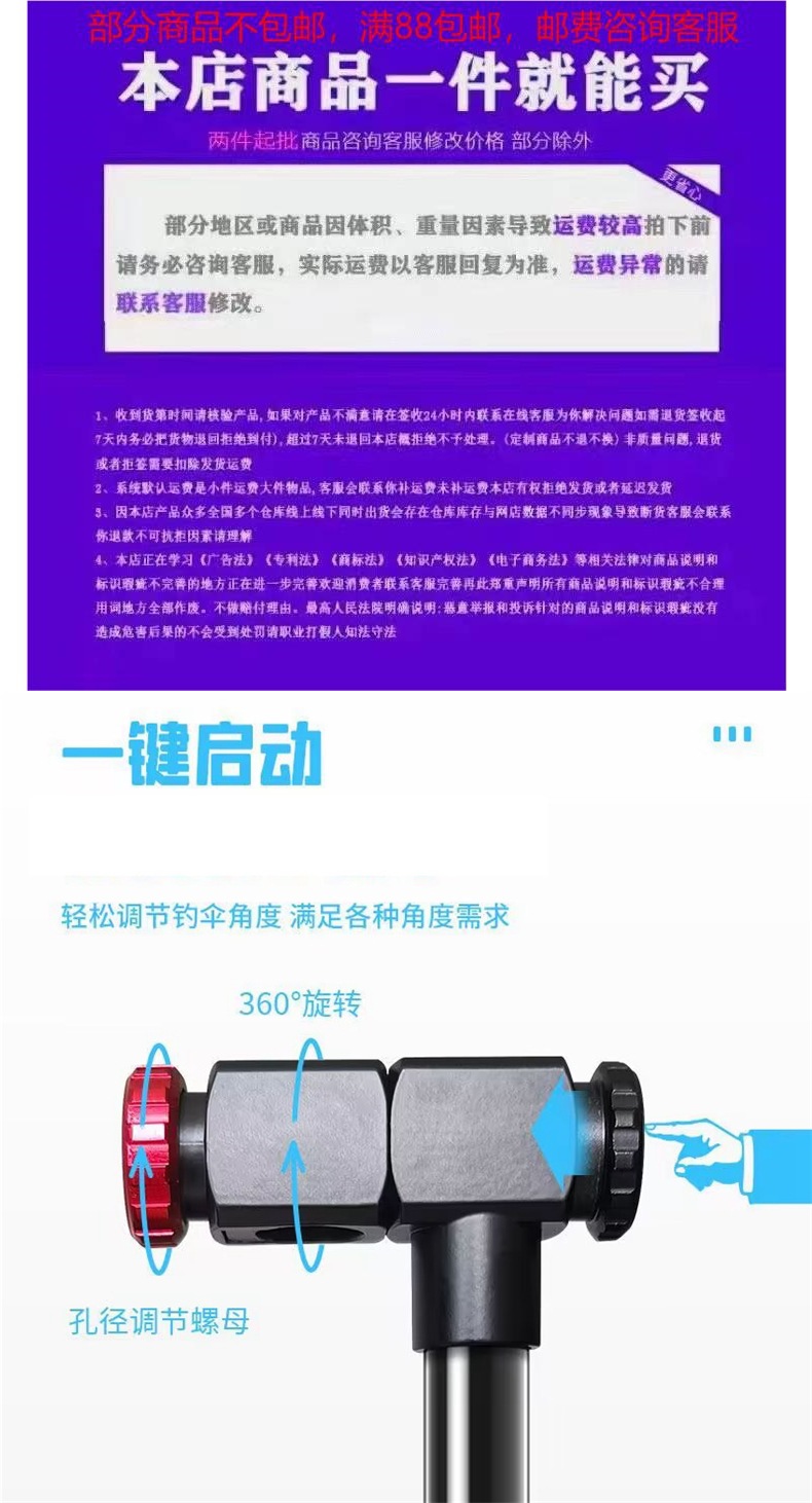 • 2.0m 로봇 팔 회전 방지 낚시 우산 직선 극 금속 별 검정 빨강♢✦