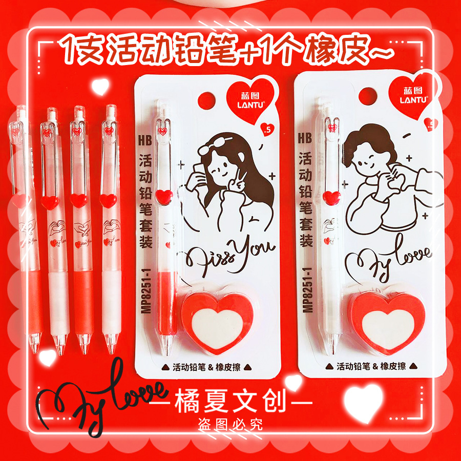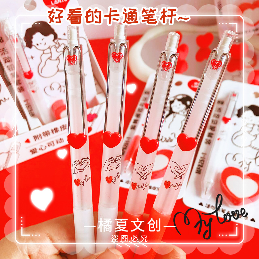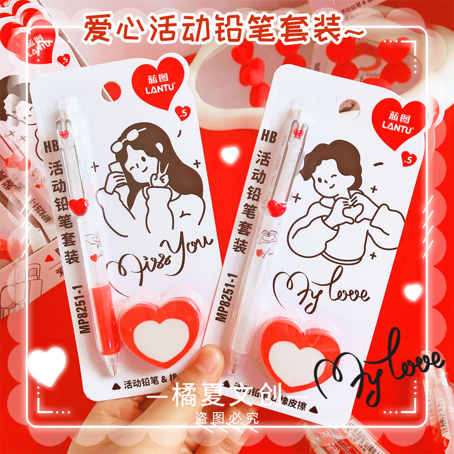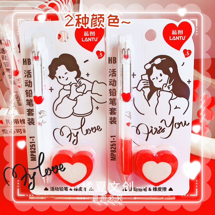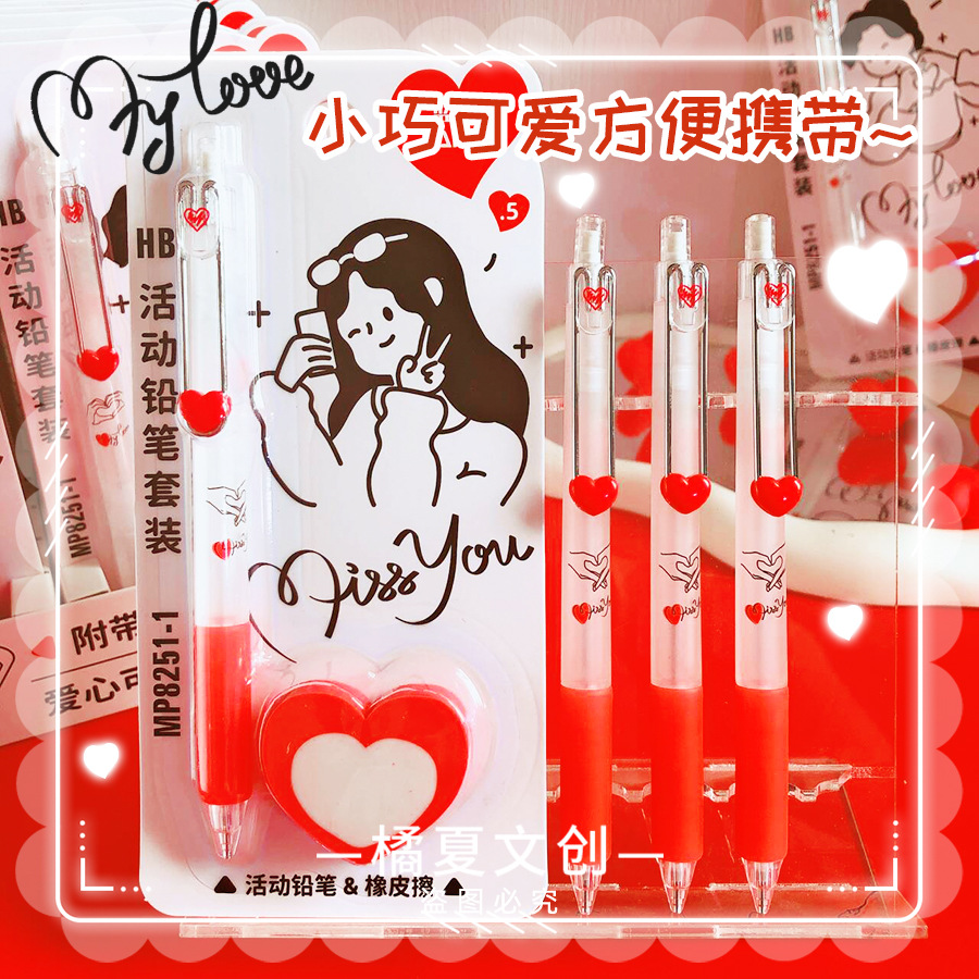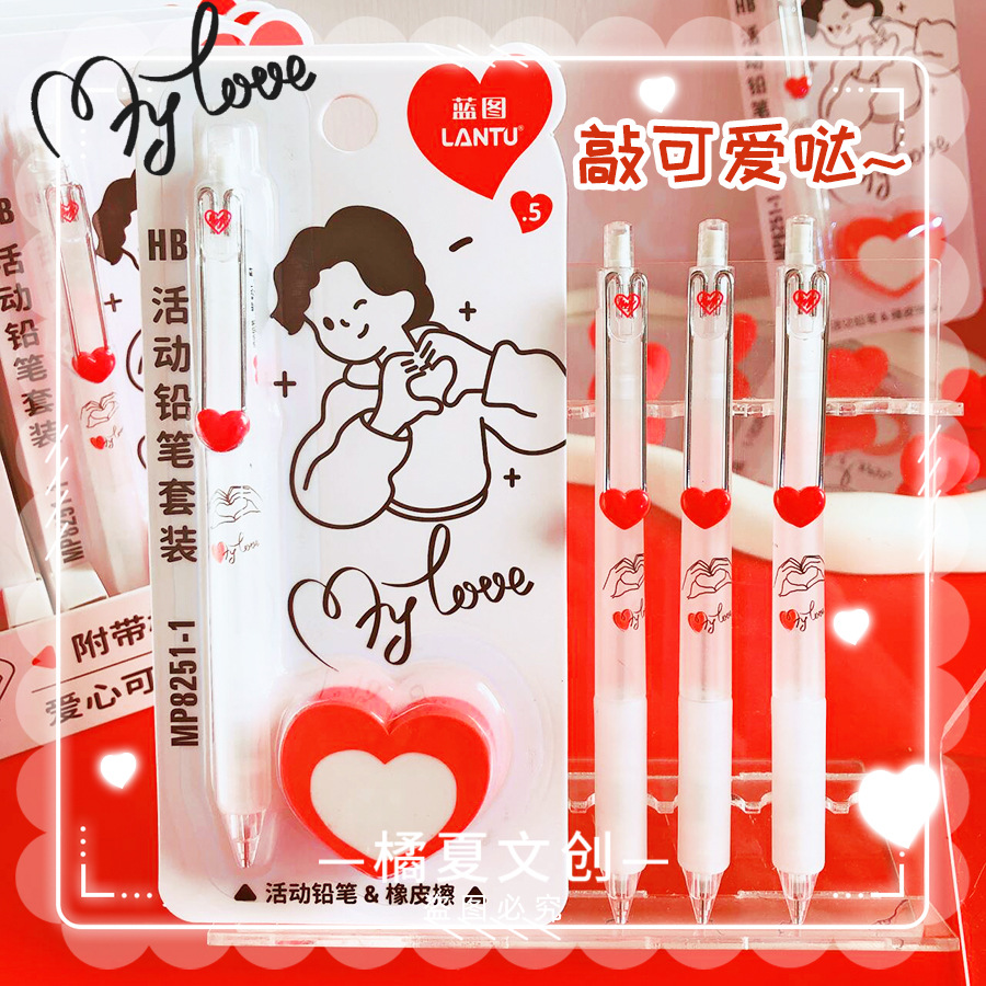 블루 프린트 MP8251-1 학생들이 사용할 수 있는 러브 푸시풀 샤프트 자동 연필 세트, 멋진 창의적인 연필 0.5스토어 가기