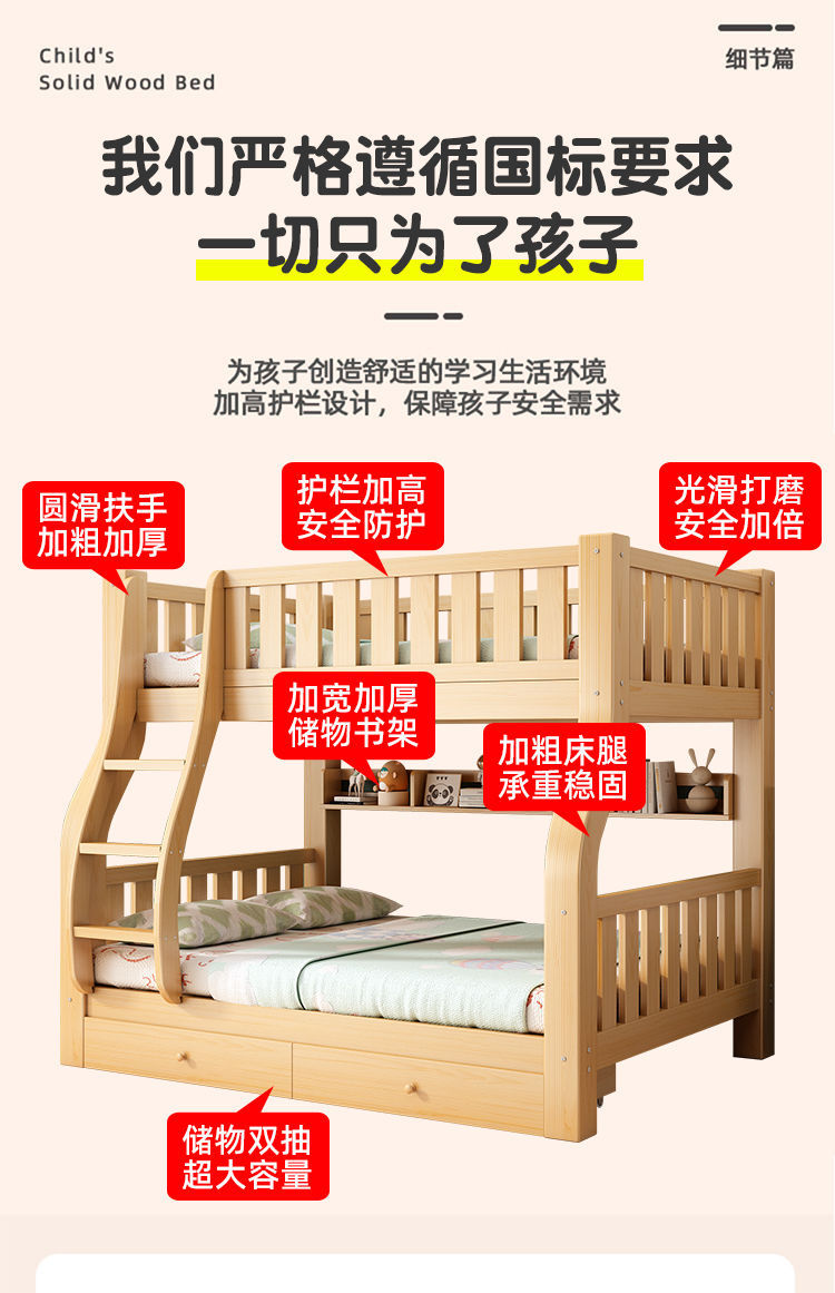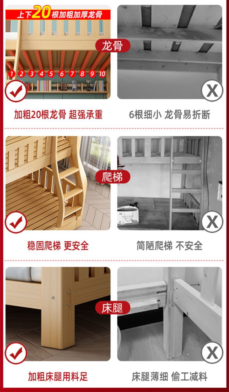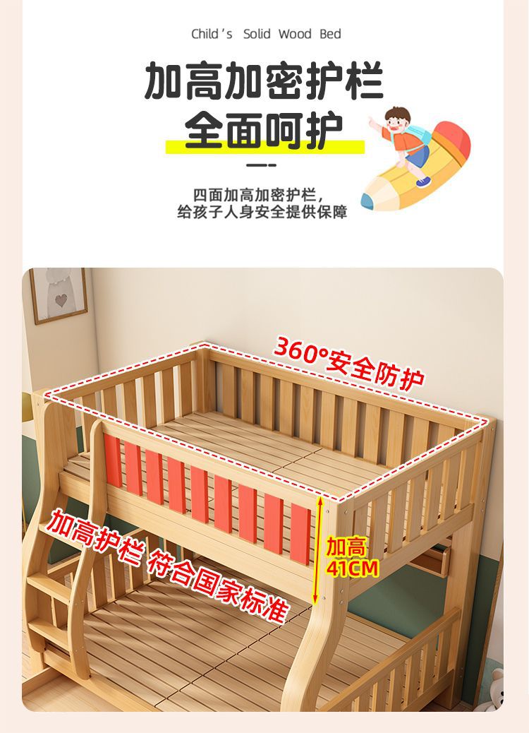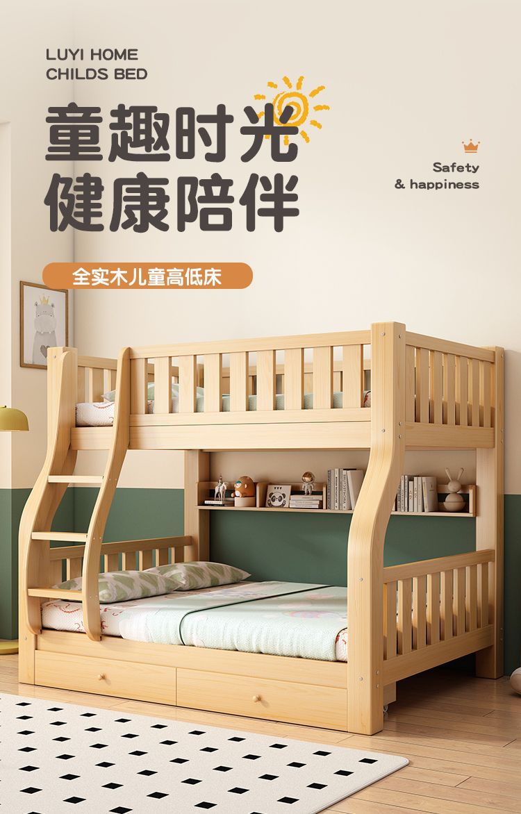 단단한 나무 이층 침대, 두꺼운 이층 침대, 2층 어린이 이층 침대, 높낮이 침대, 소형 기숙사 침대스토어 가기