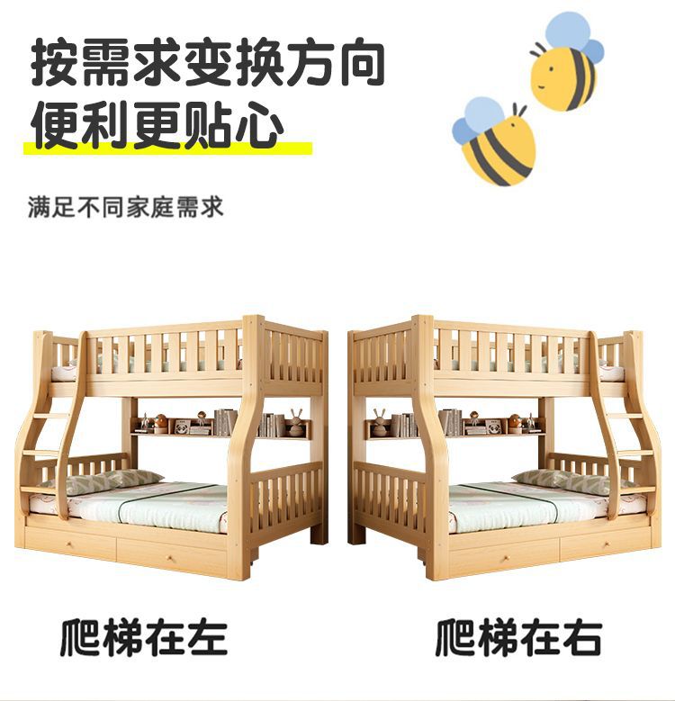 단단한 나무 이층 침대, 두꺼운 이층 침대, 2층 어린이 이층 침대, 높낮이 침대, 소형 기숙사 침대