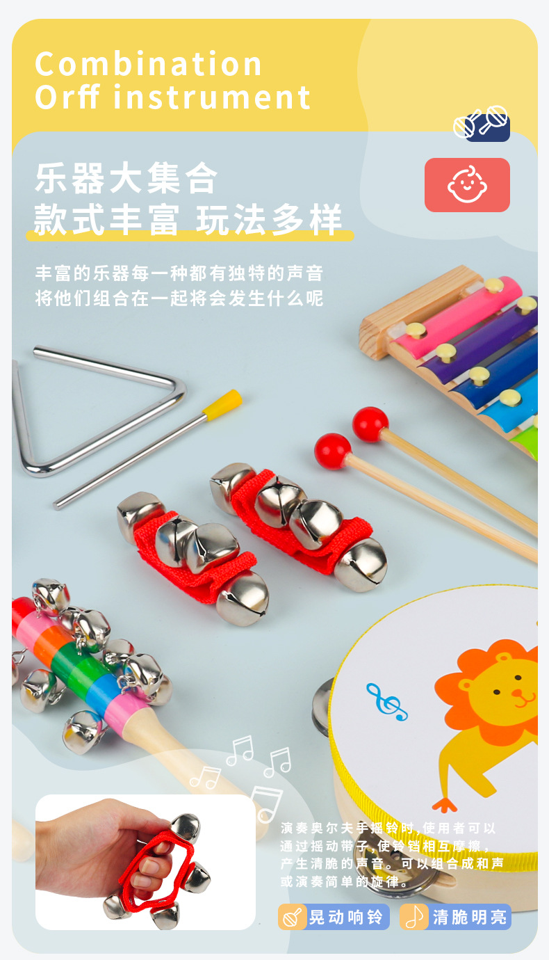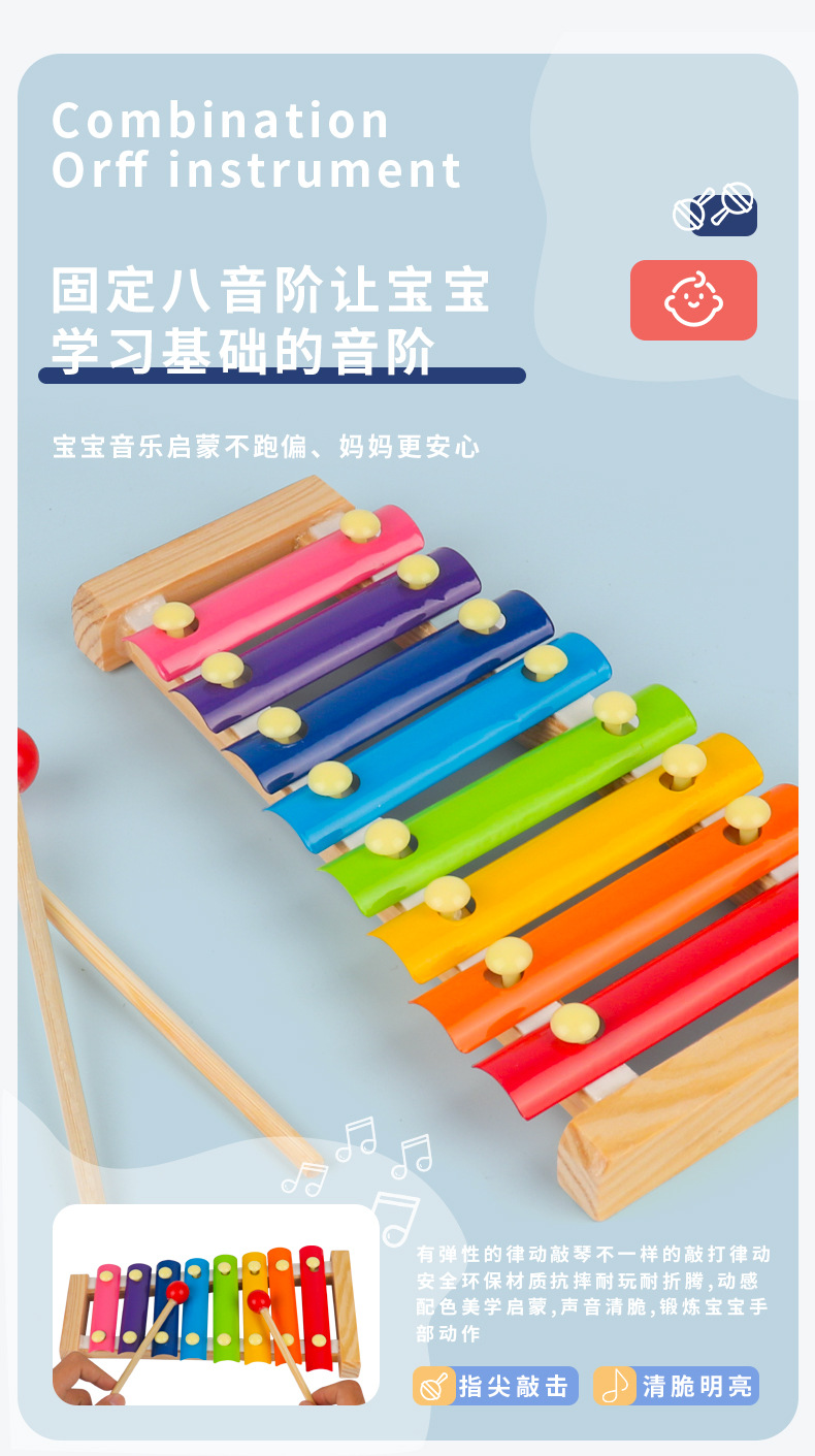 어린이 8음 벨 오르프 악기 세트 아기 잡기 훈련 장난감 타악기 세트