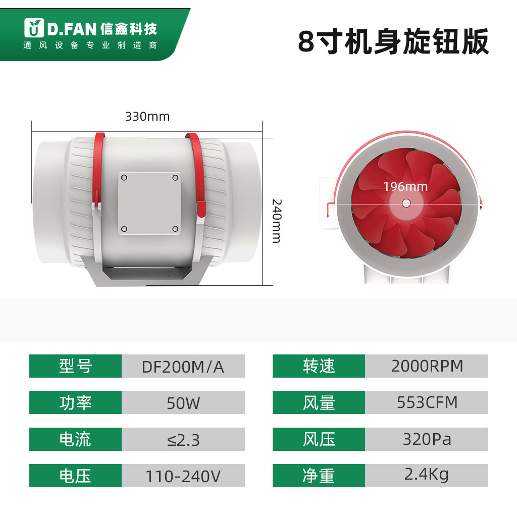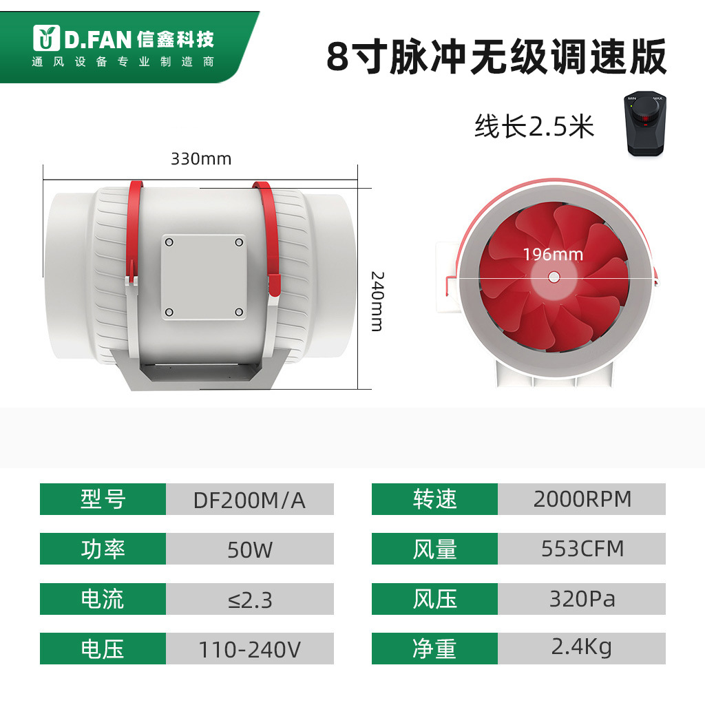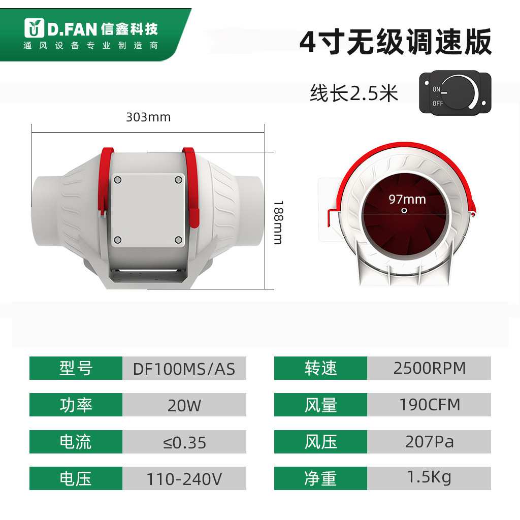 EC 가변 주파수 경사류 덕트 팬 화장실 배기 팬 환기 468inch 저소음 고압