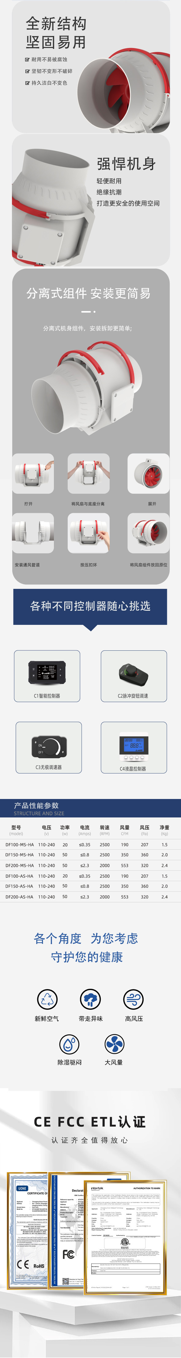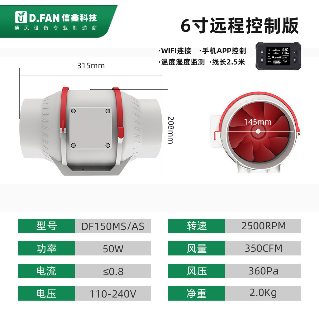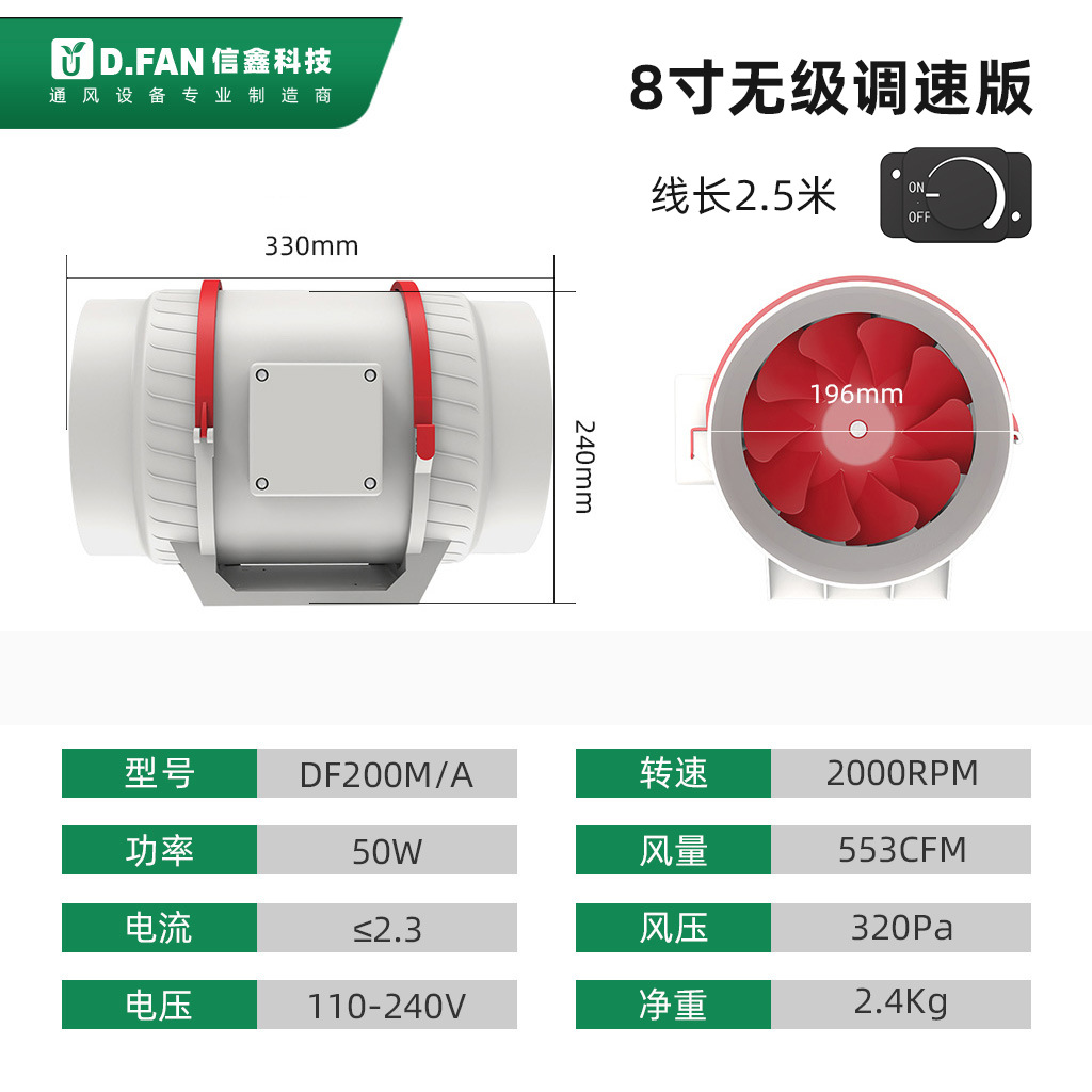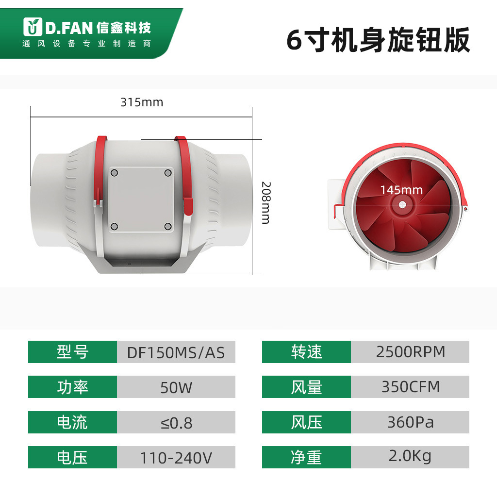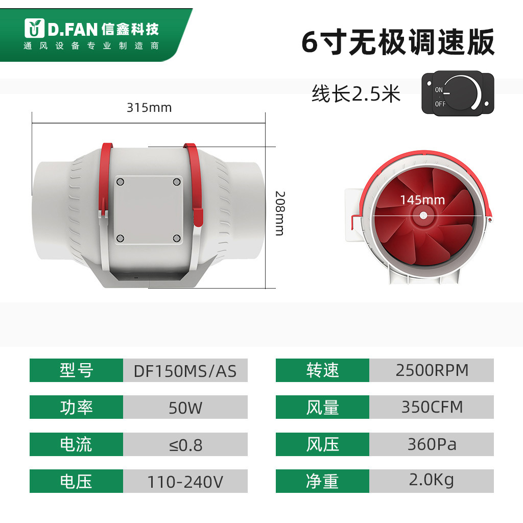EC 가변 주파수 경사류 덕트 팬 화장실 배기 팬 환기 468inch 저소음 고압스토어 가기