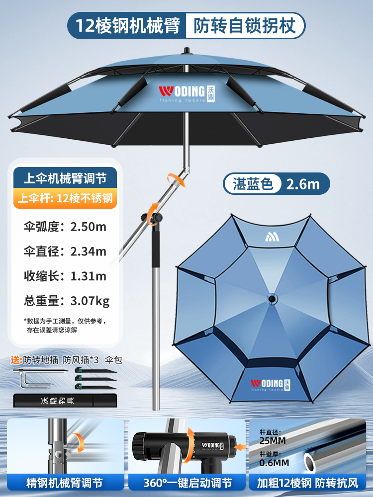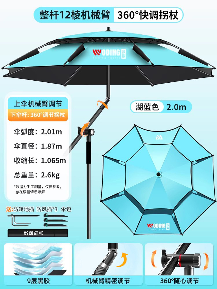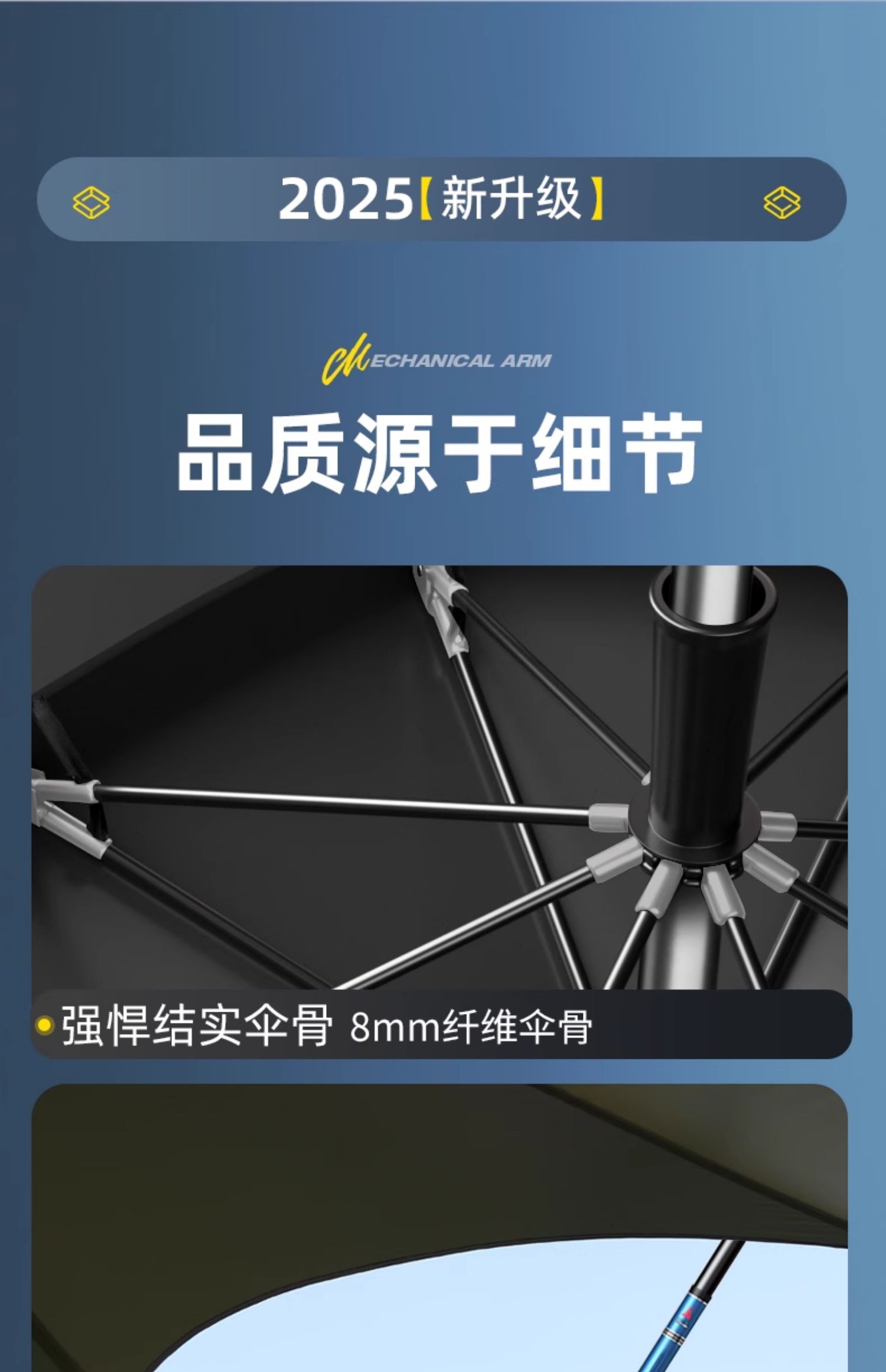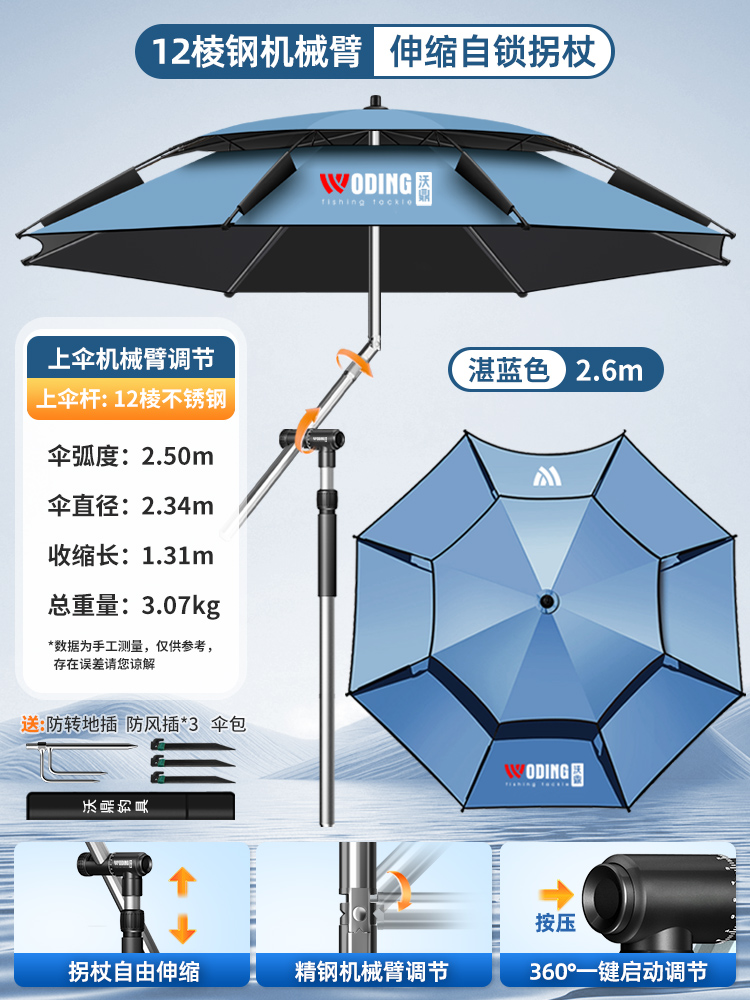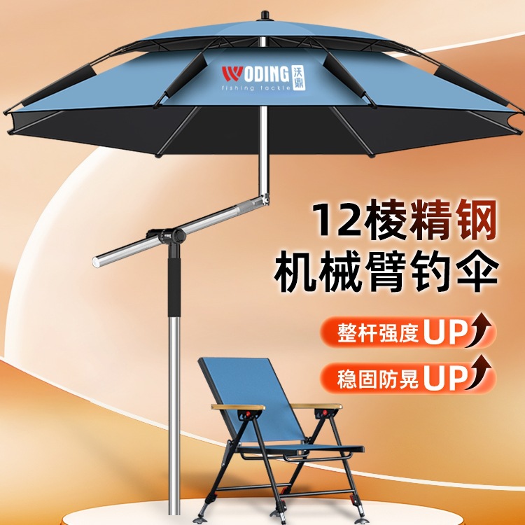 낚시 우산 2025 새로운 기계식 팔 낚시 우산 야외 파라솔 두꺼운 태양 보호 회전 방지 지팡이 우산스토어 가기