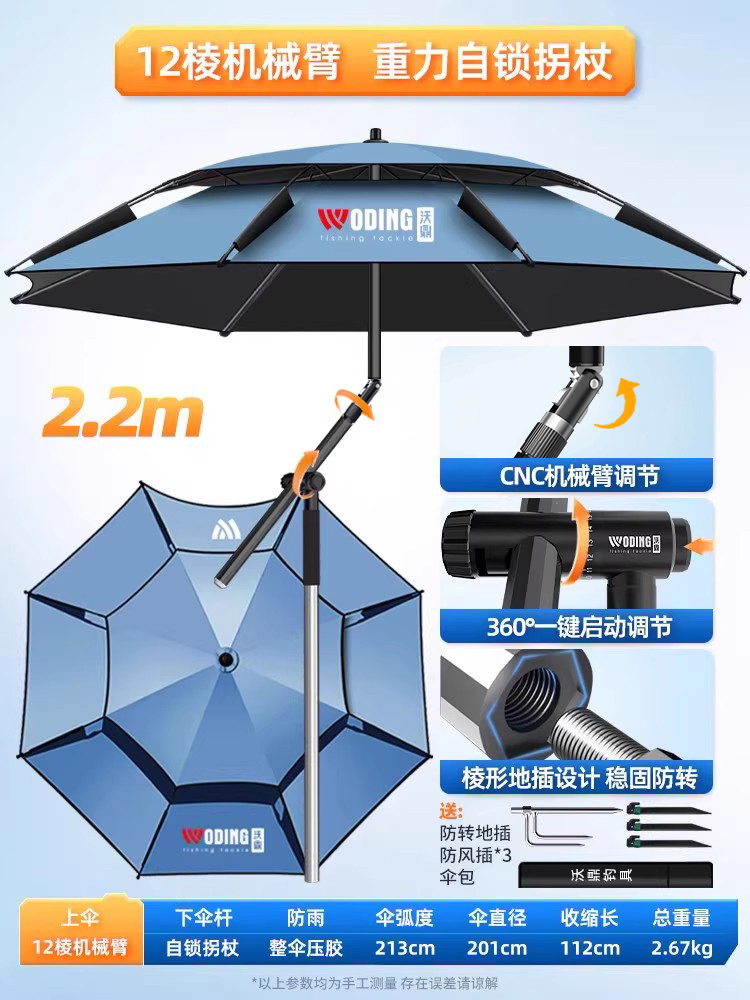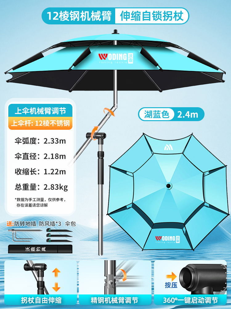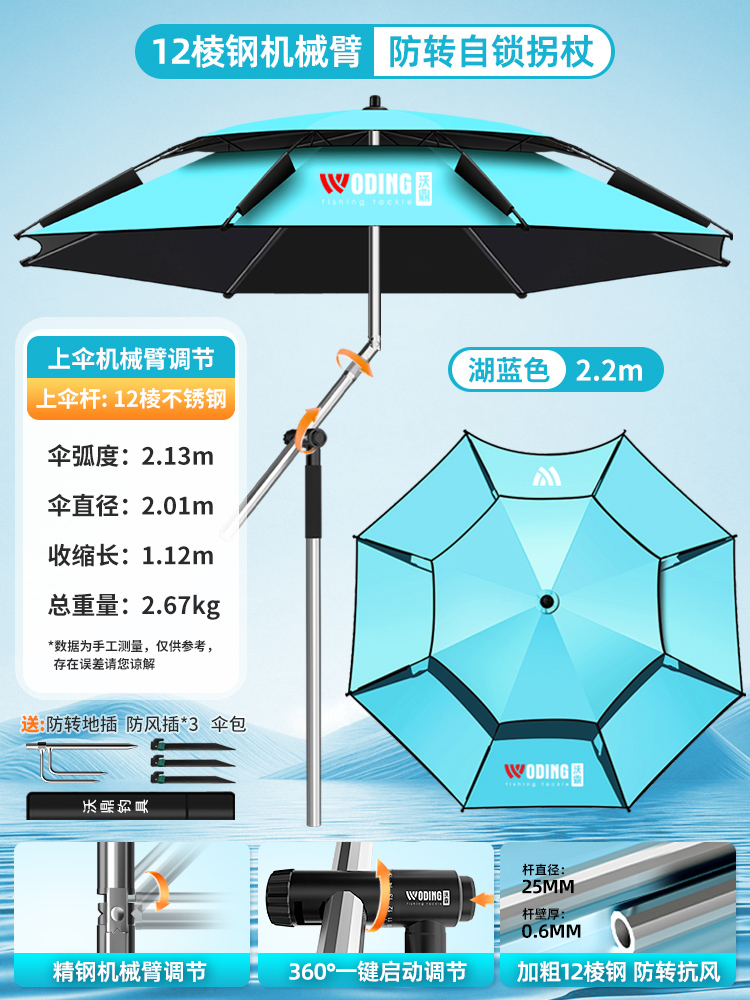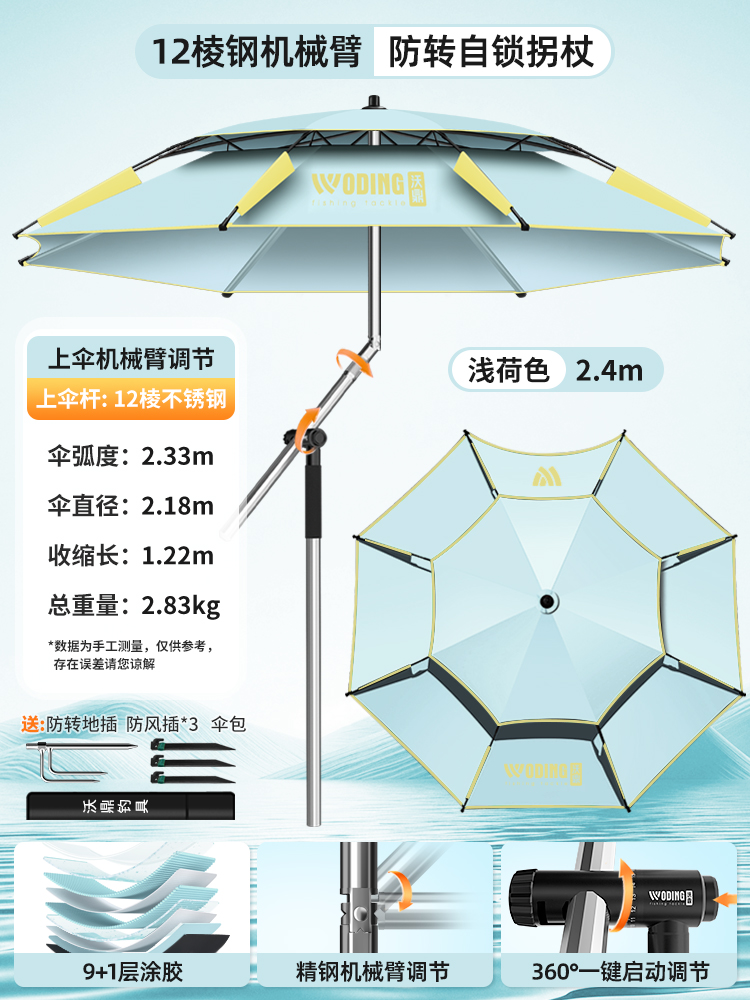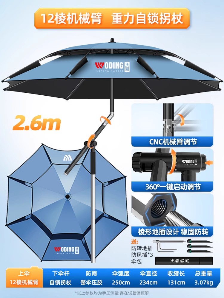 낚시 우산 2025 새로운 기계식 팔 낚시 우산 야외 파라솔 두꺼운 태양 보호 회전 방지 지팡이 우산스토어 가기