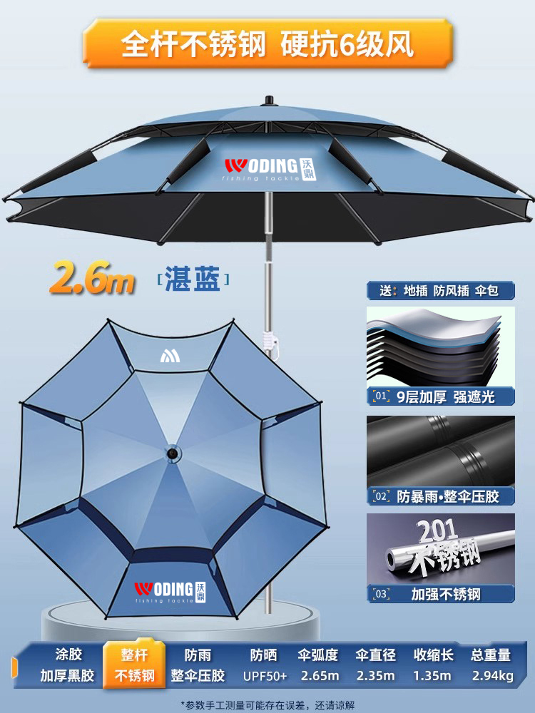 • 강화 [전체 기둥 12-립 스테인레스 스틸, 방풍 및 방수] 2.0m 파란색