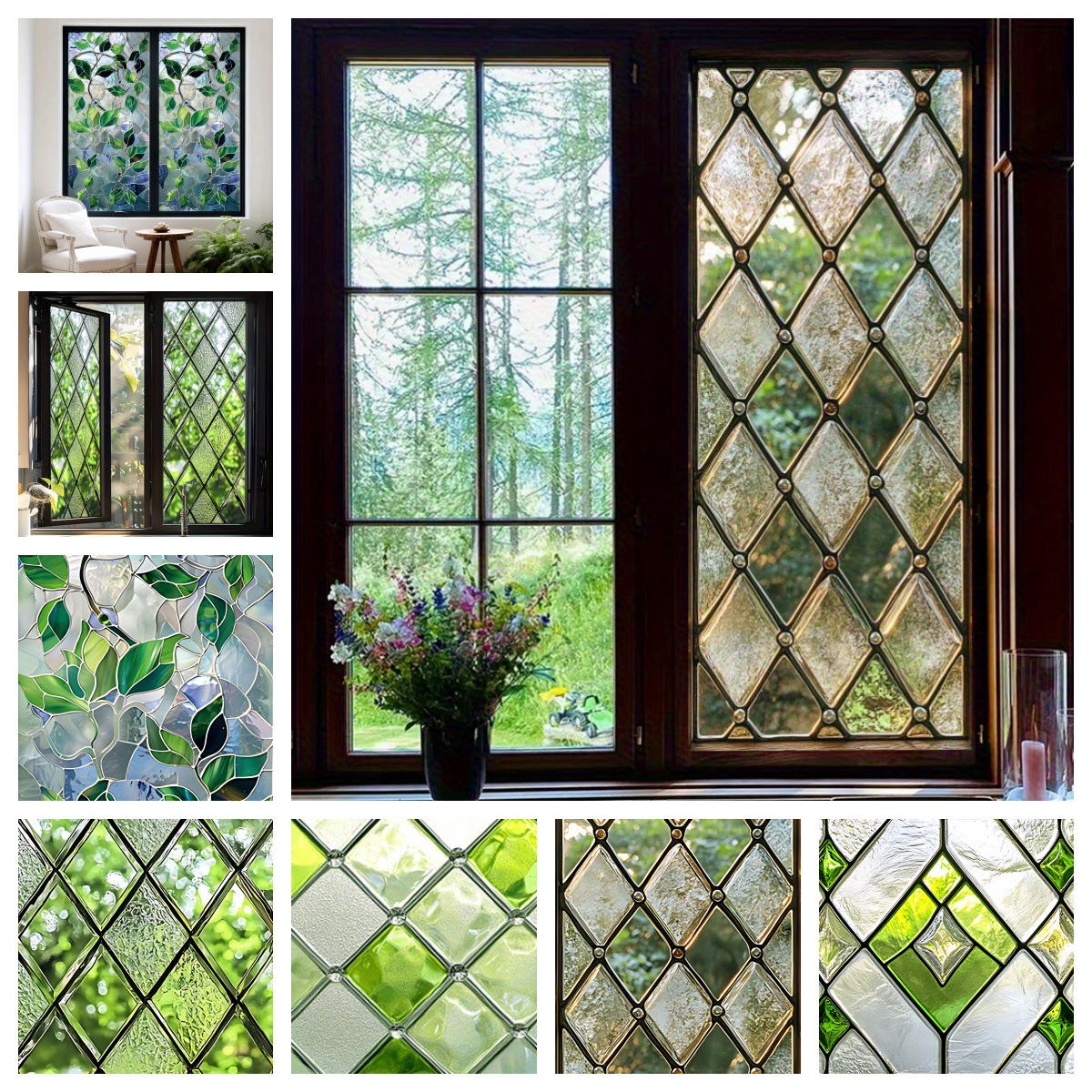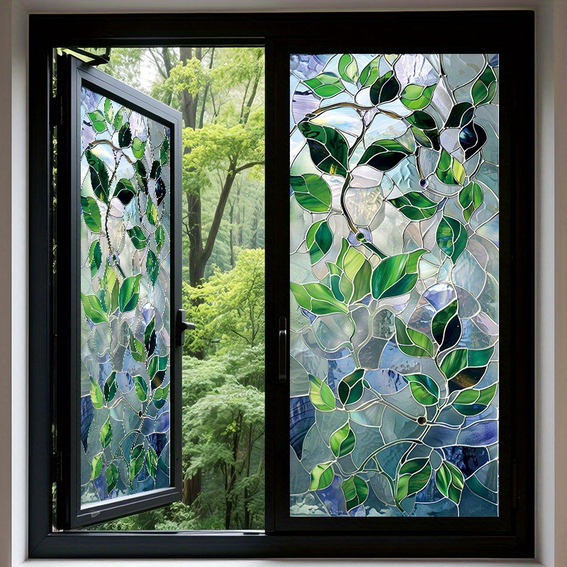 레트로 유럽 스타일의 오즈의 마법사 느낌 녹색 잎 숲 유리 창 슈퍼마켓 이동식 PVC 정전기 유리 스티커