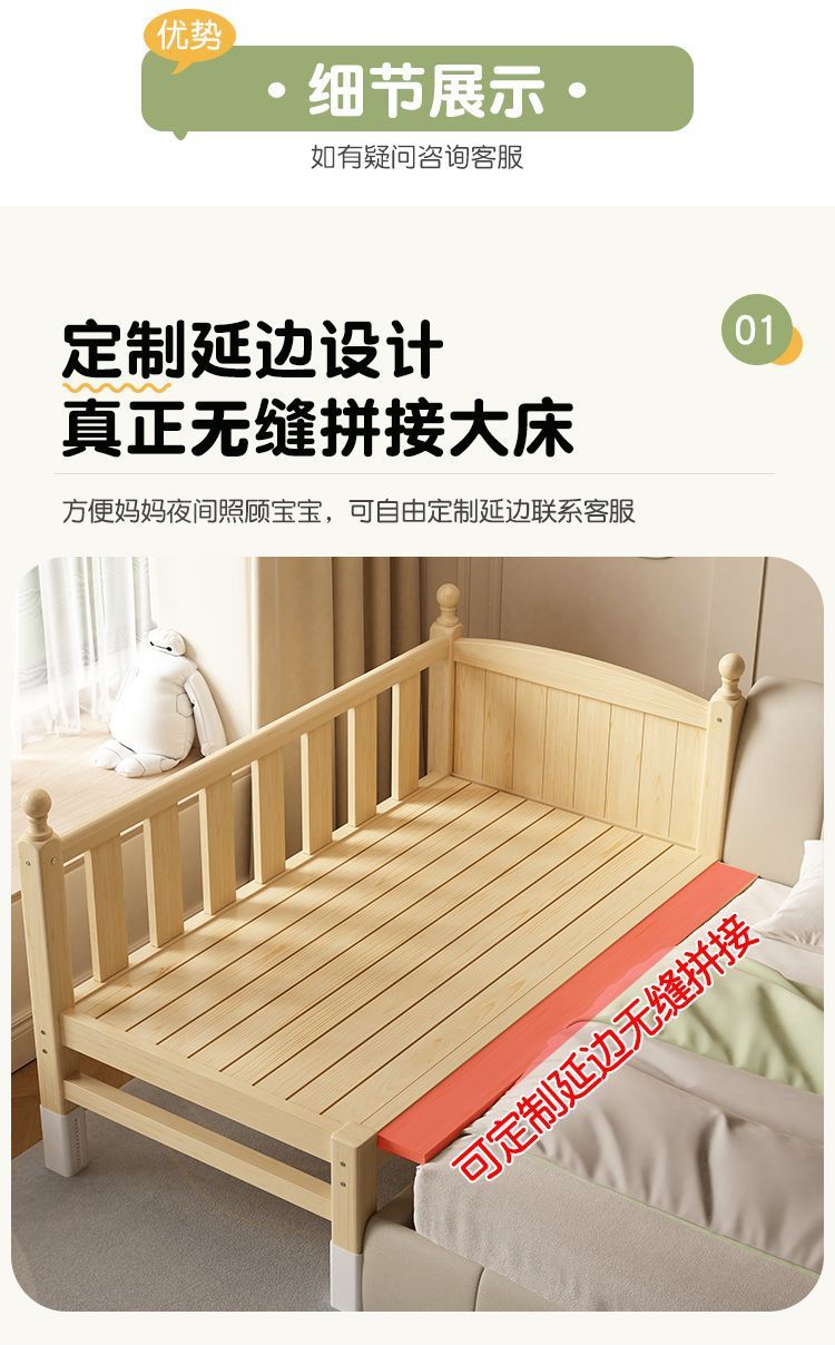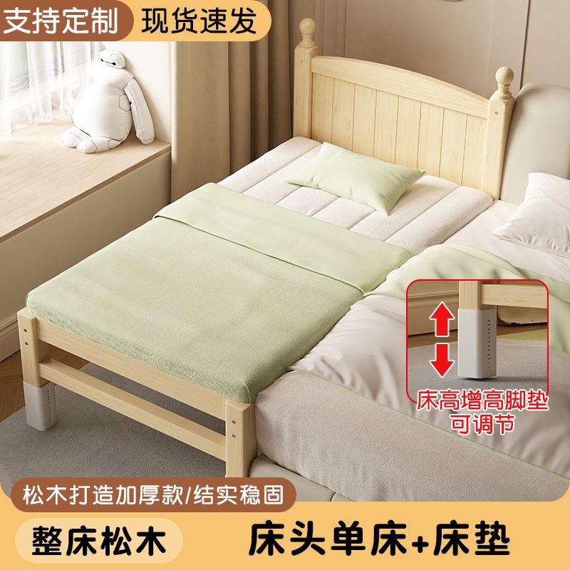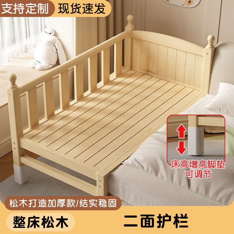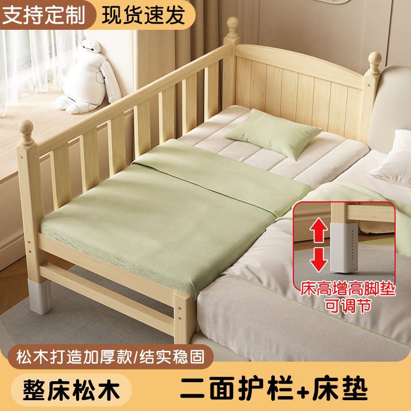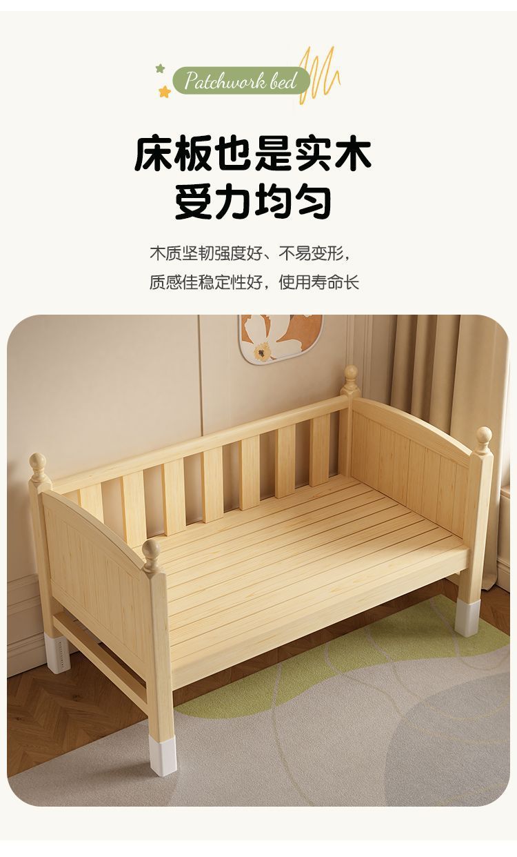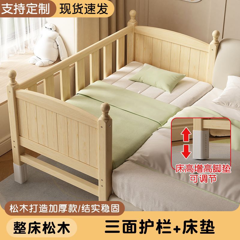 어린이 접합 침대 확장 유아용 침대 소년과 소녀 가드 레일이있는 단단한 나무 대형 침대 아기 침대 옆 싱글 침대 공장스토어 가기