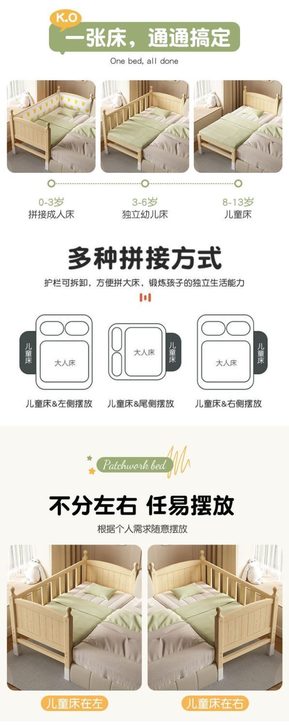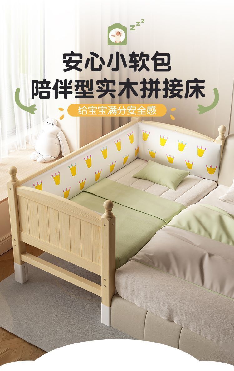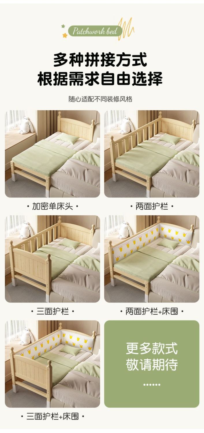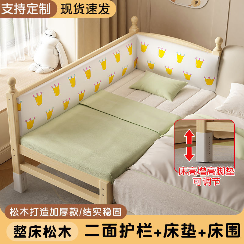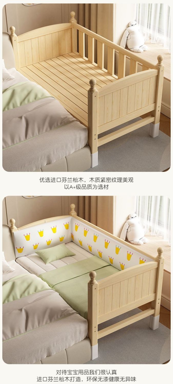 어린이 접합 침대 확장 유아용 침대 소년과 소녀 가드 레일이있는 단단한 나무 대형 침대 아기 침대 옆 싱글 침대 공장스토어 가기