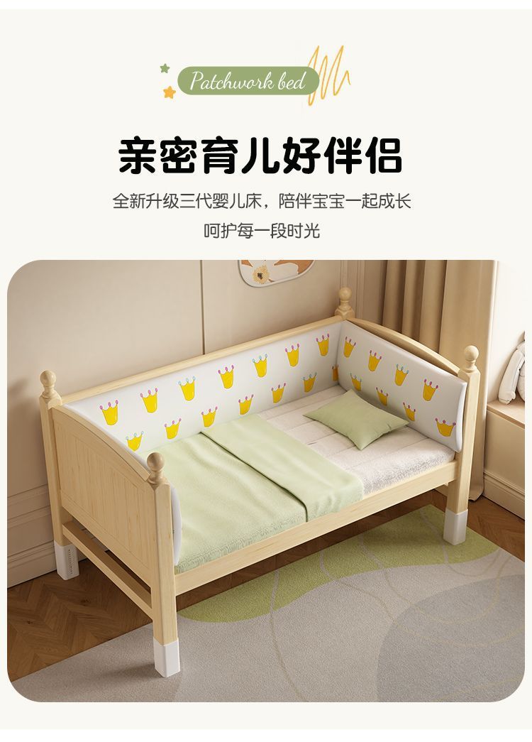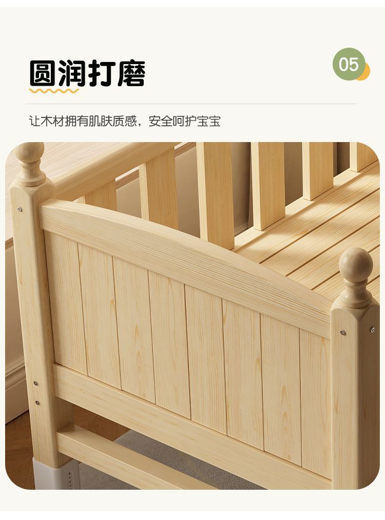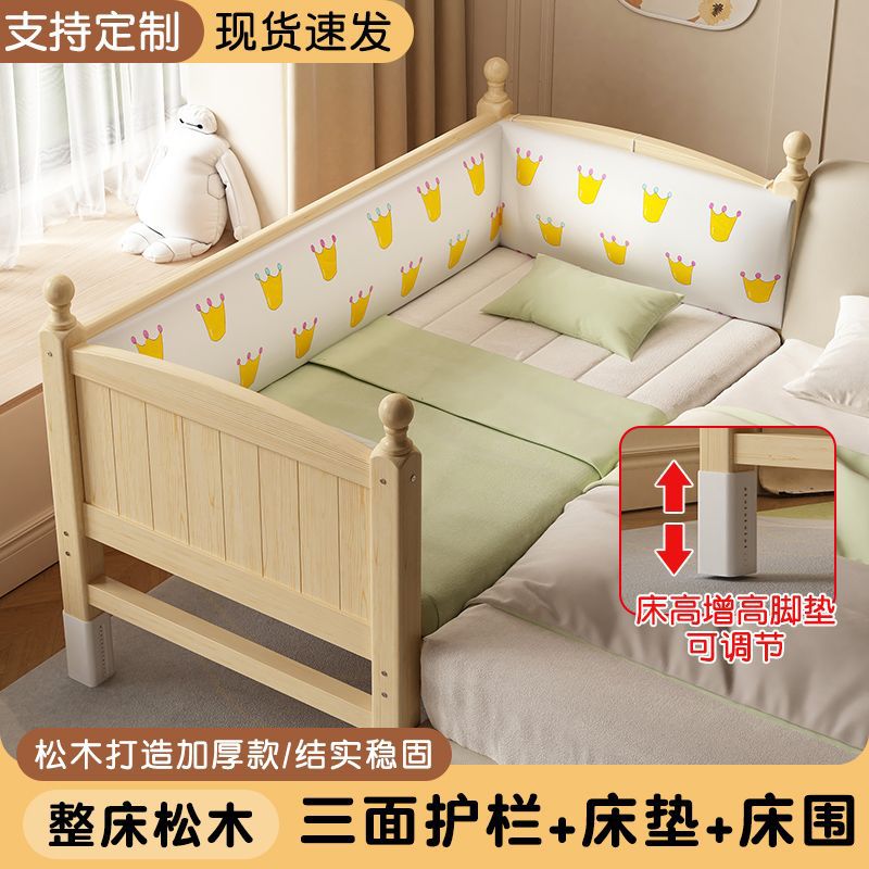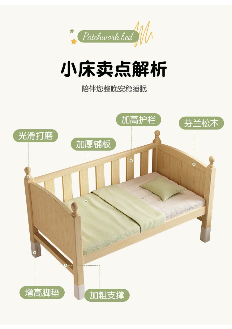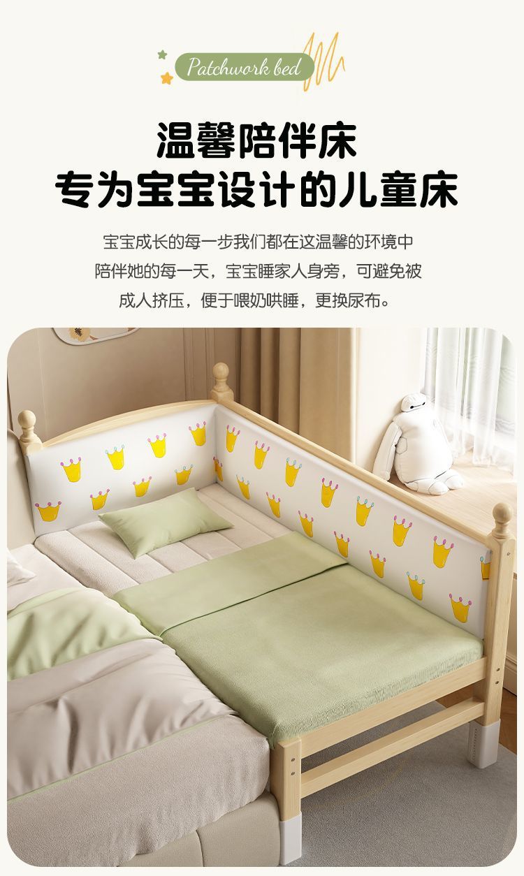 어린이 접합 침대 확장 유아용 침대 소년과 소녀 가드 레일이있는 단단한 나무 대형 침대 아기 침대 옆 싱글 침대 공장스토어 가기