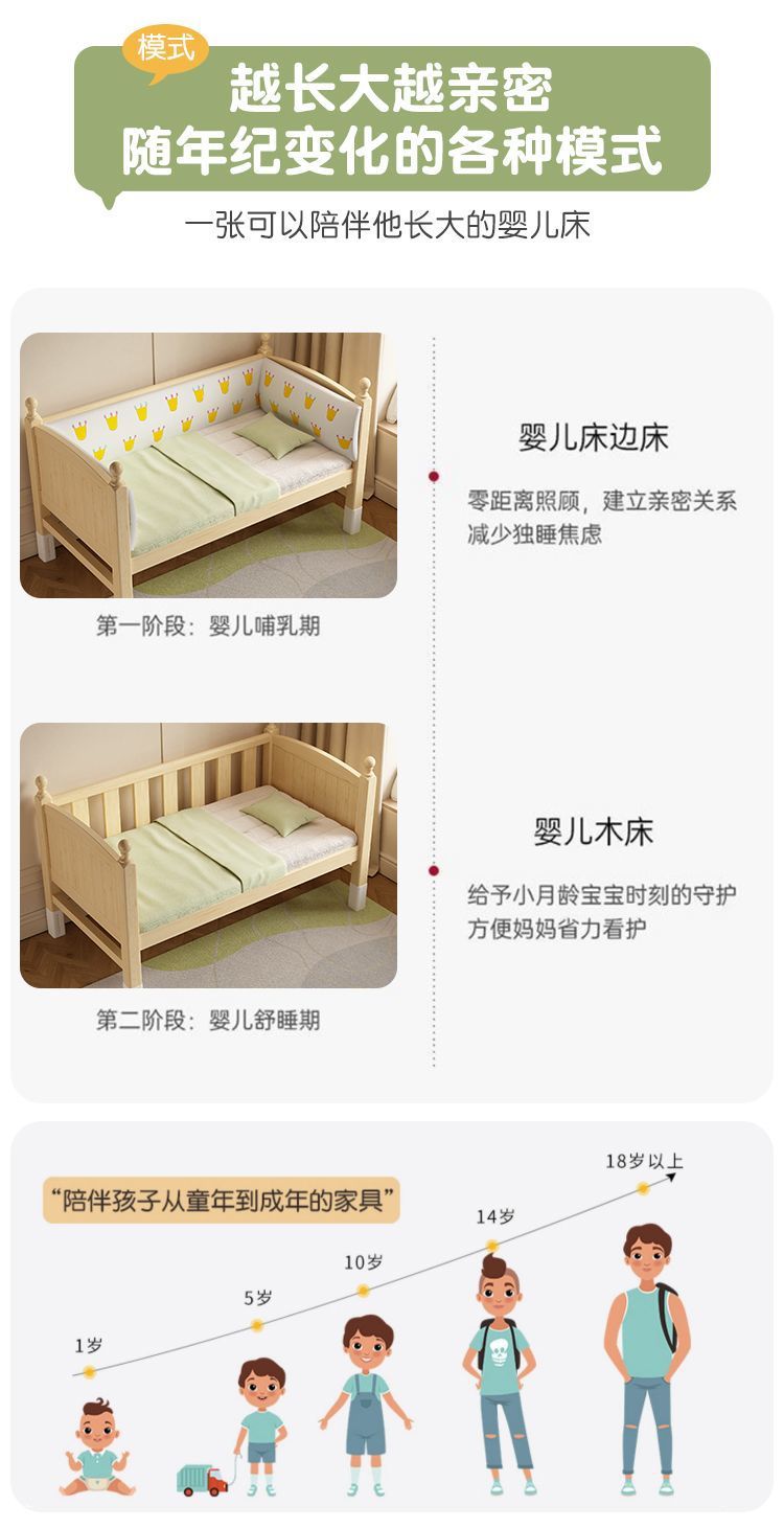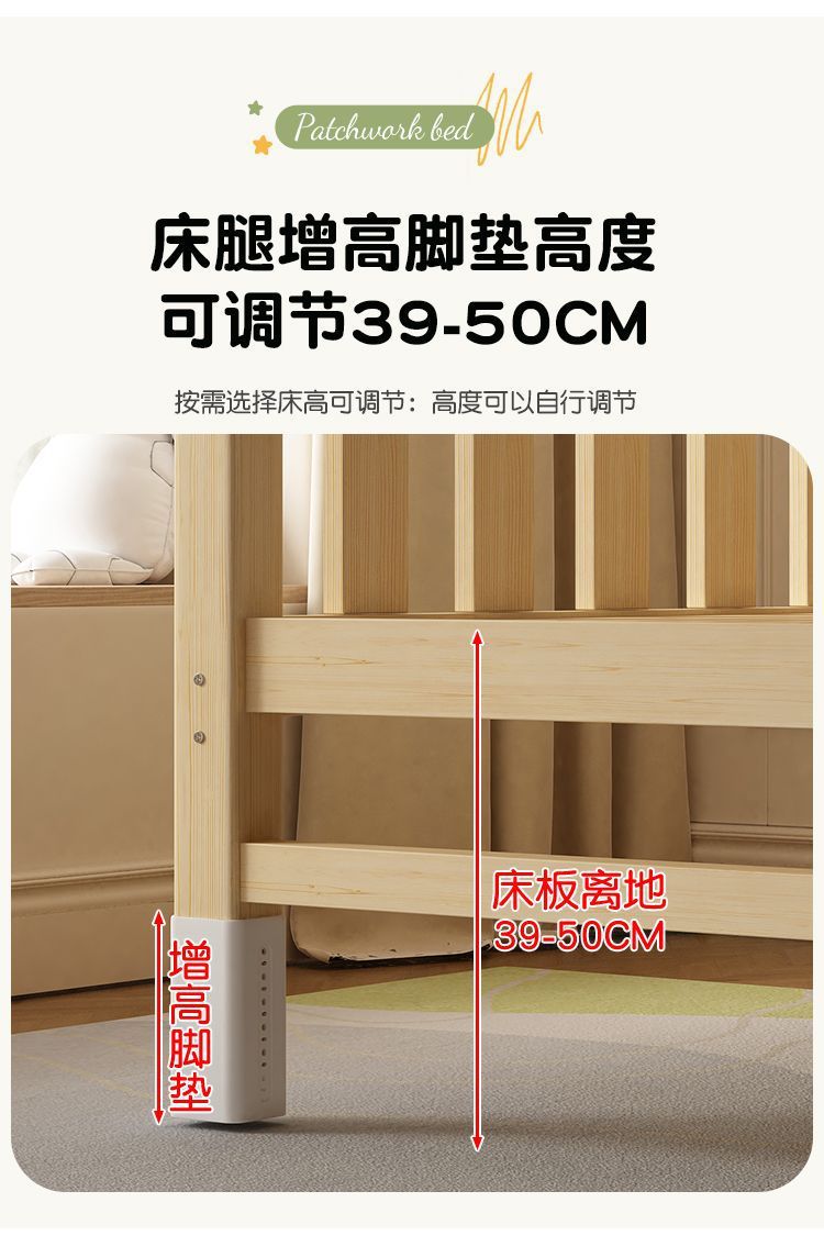 • [높이 조절 가능] 원목 침대 + 삼면 가드레일 + 3E 코코넛 야자 침대