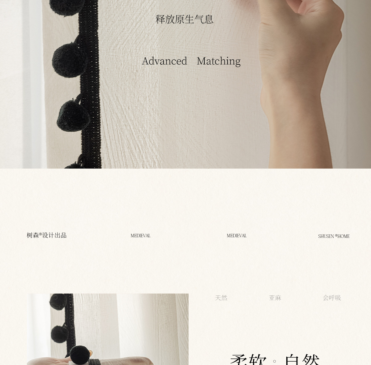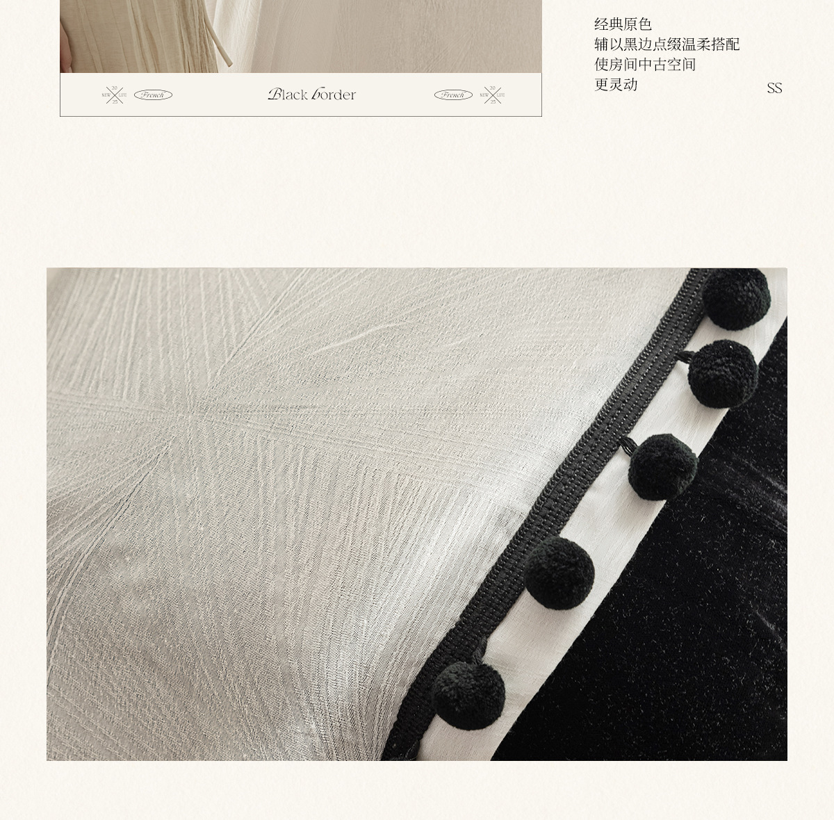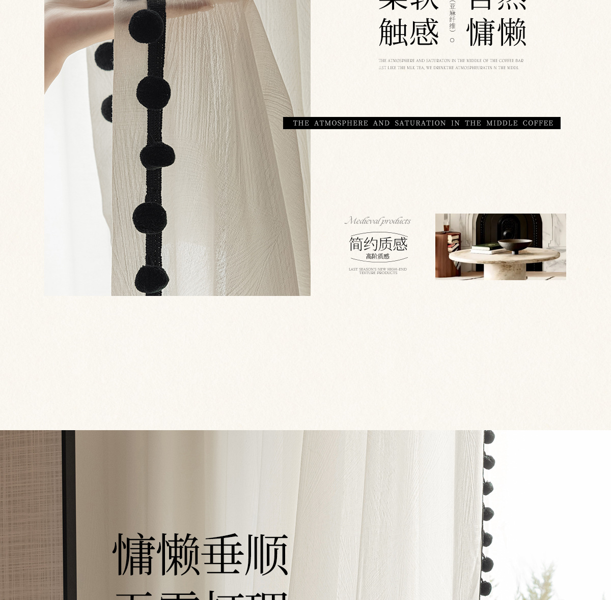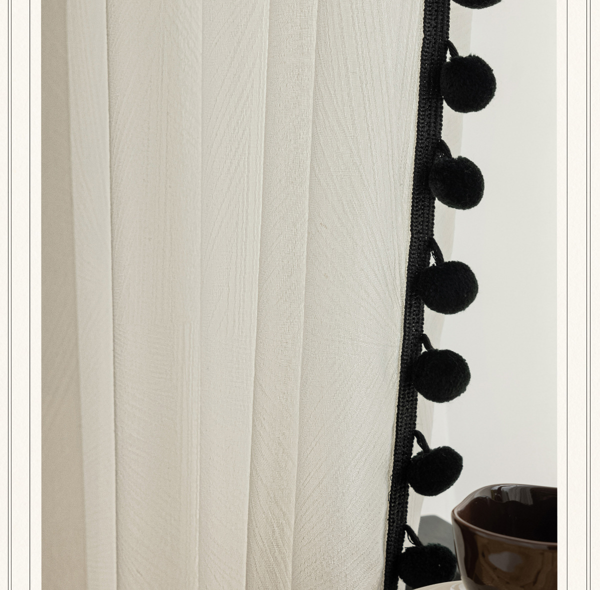 검은색 모피 공이 있는 잎 자카드 원사, 바람이 많이 부는 흰색 원사 커튼, 거실 발코니, 침실 홈 장식, 미적 창문 스크린스토어 가기