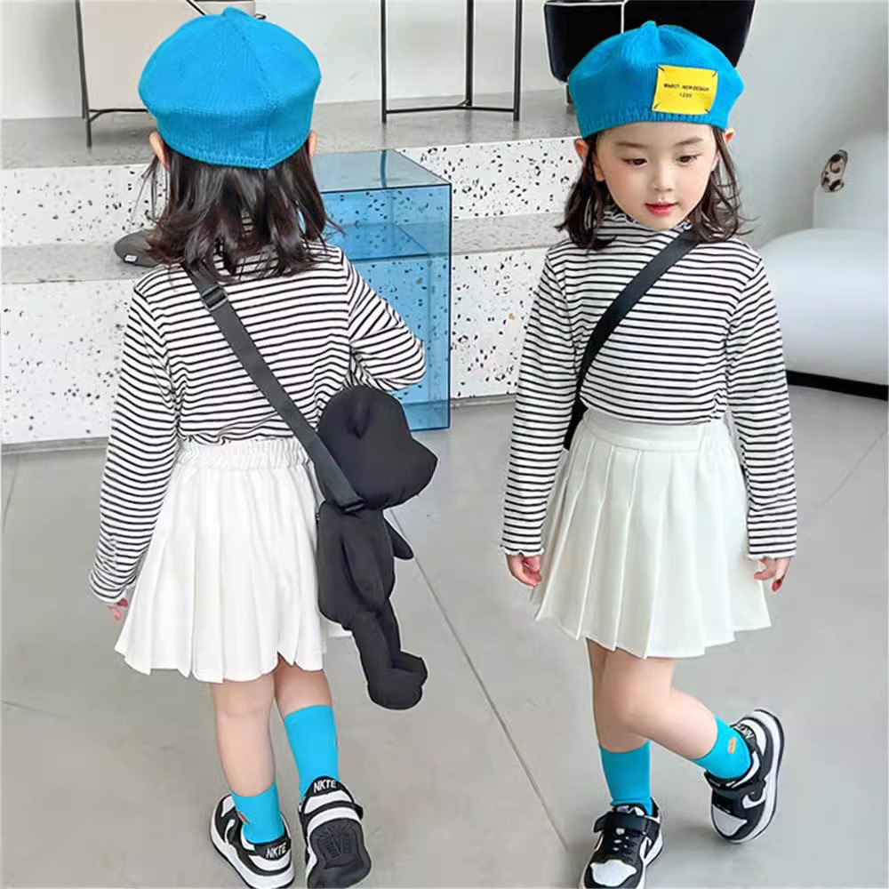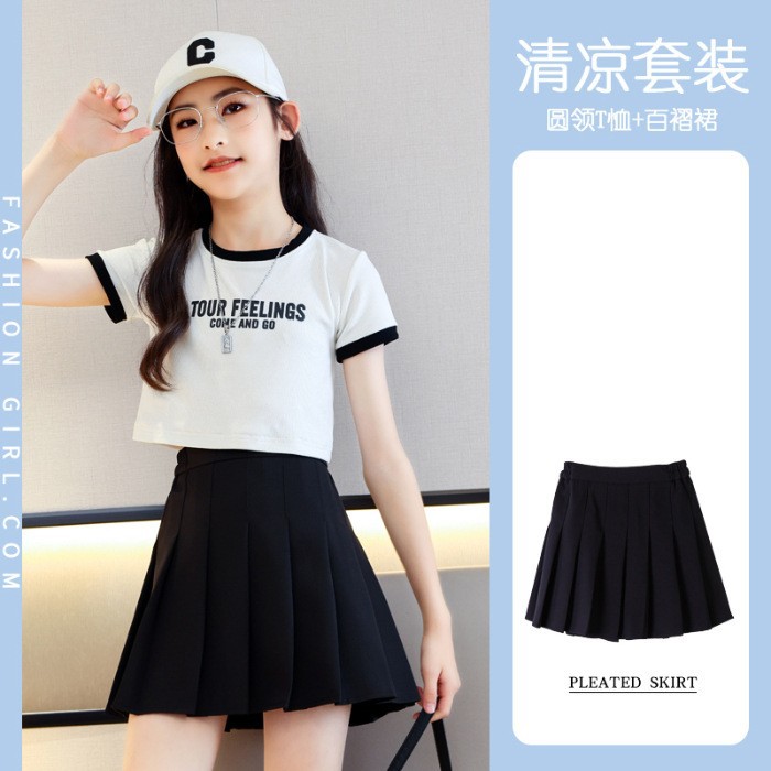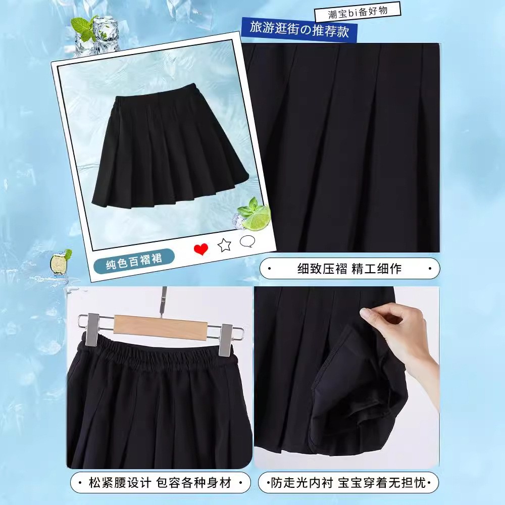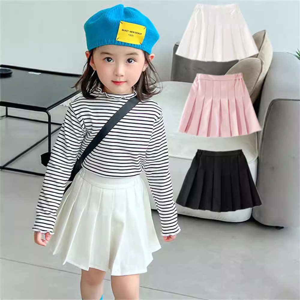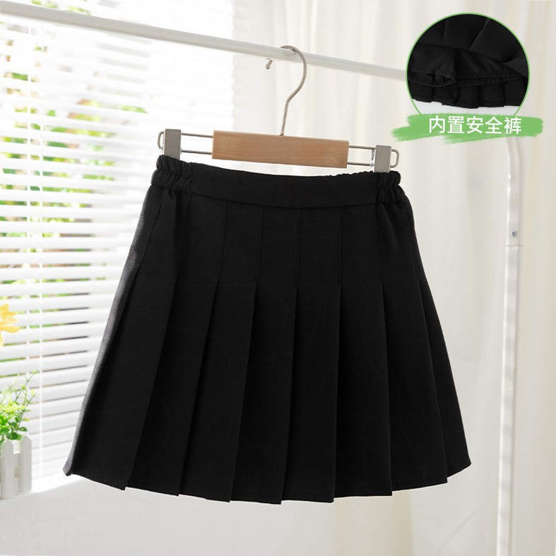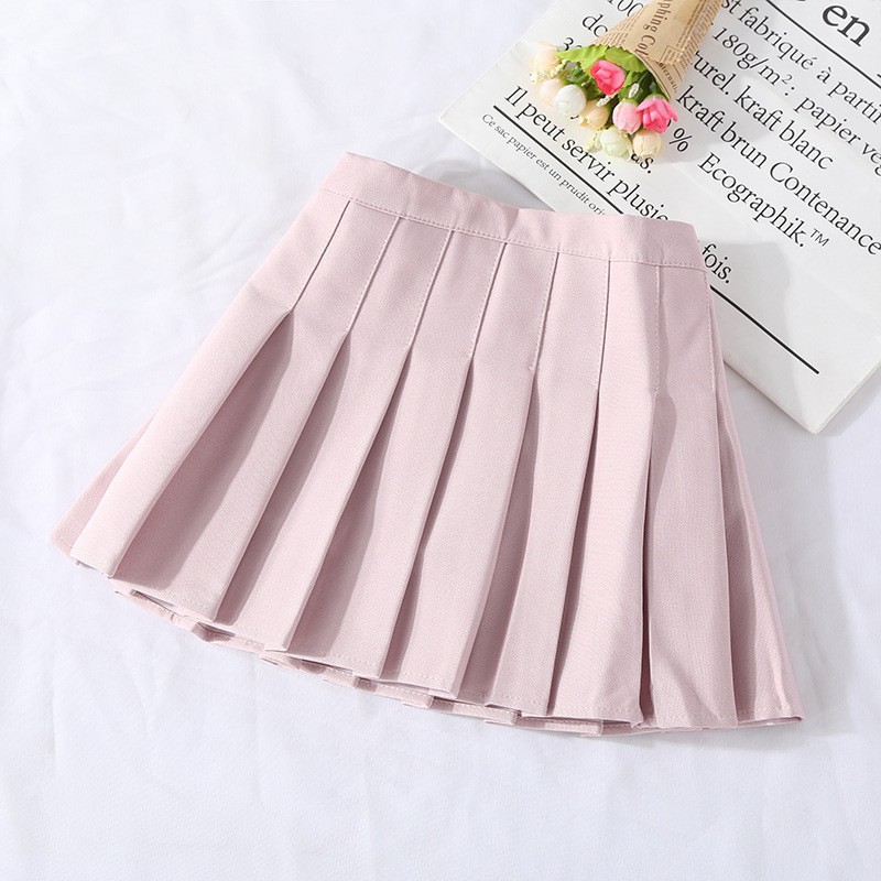 여아용 주름 스커트, 하이웨이스트 A라인 스커트 팬츠, 한국 스타일, 여학생 스타일, 아동용 하프 스커트, 신축성 있는 허리, 넓은 스커트 밑단