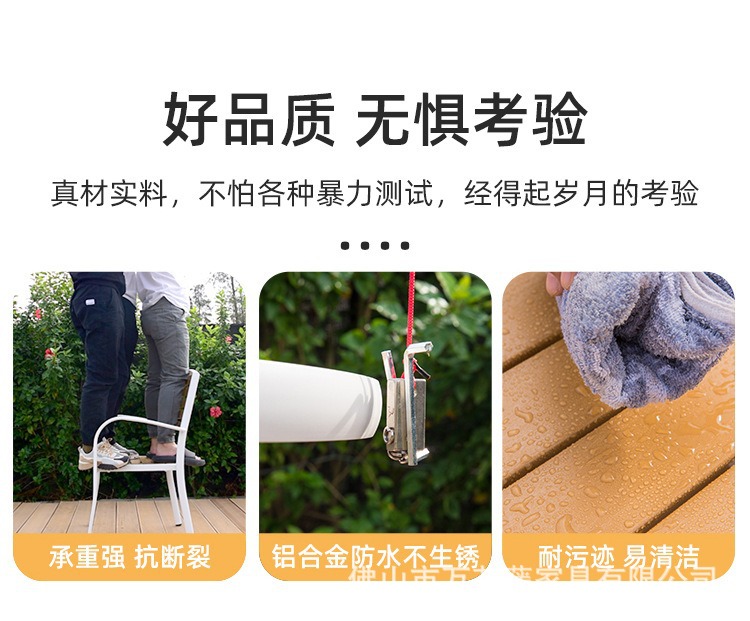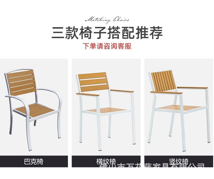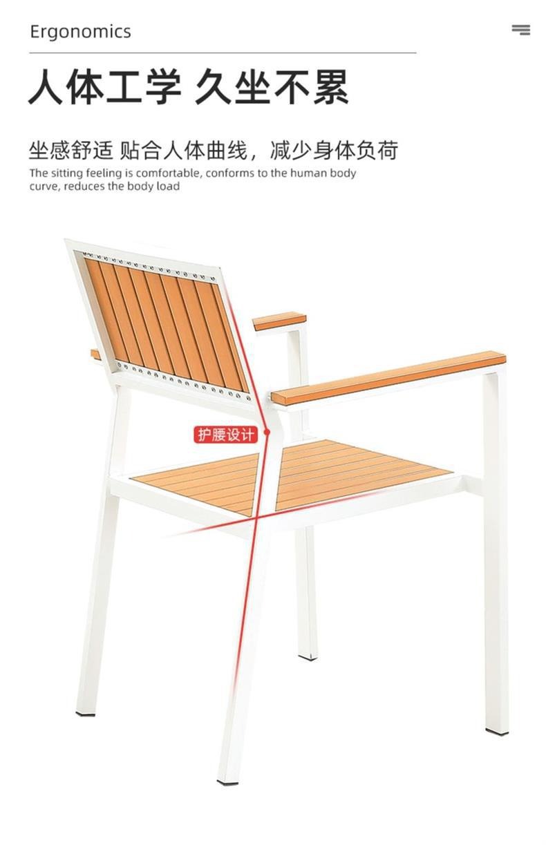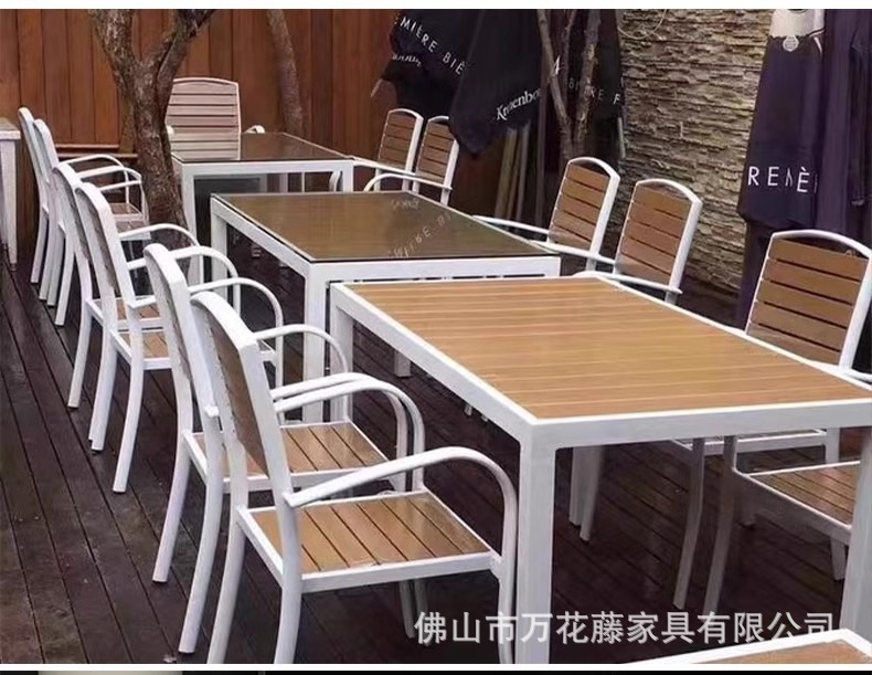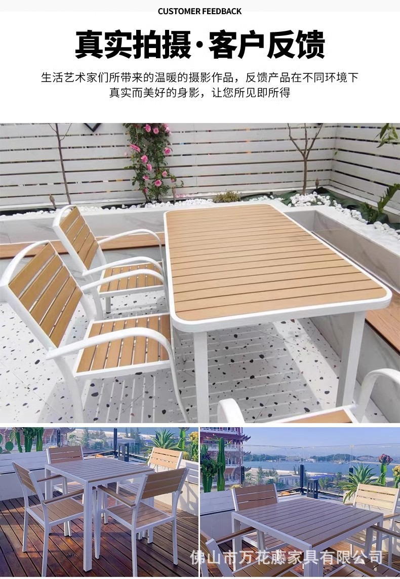 야외 플라스틱 목재 테이블과 의자 커피숍 야외 레저 식탁 안뜰 호텔 테라스 부식 방지 목재 발코니 테이블과 의자 조합스토어 가기