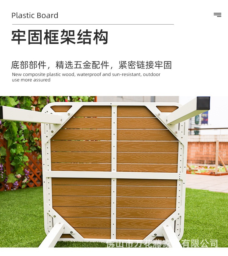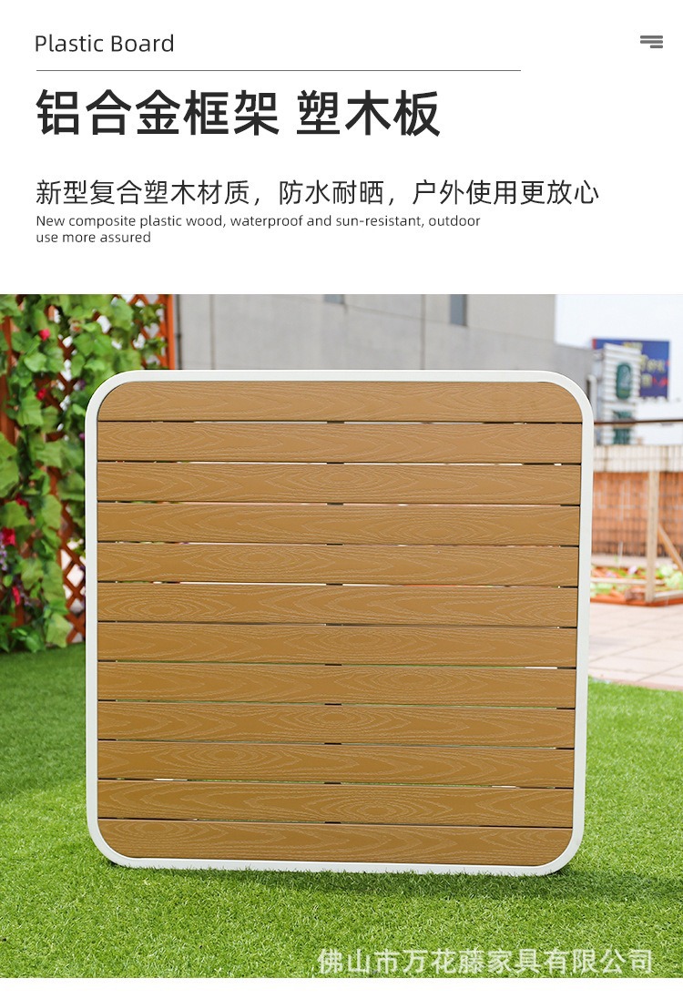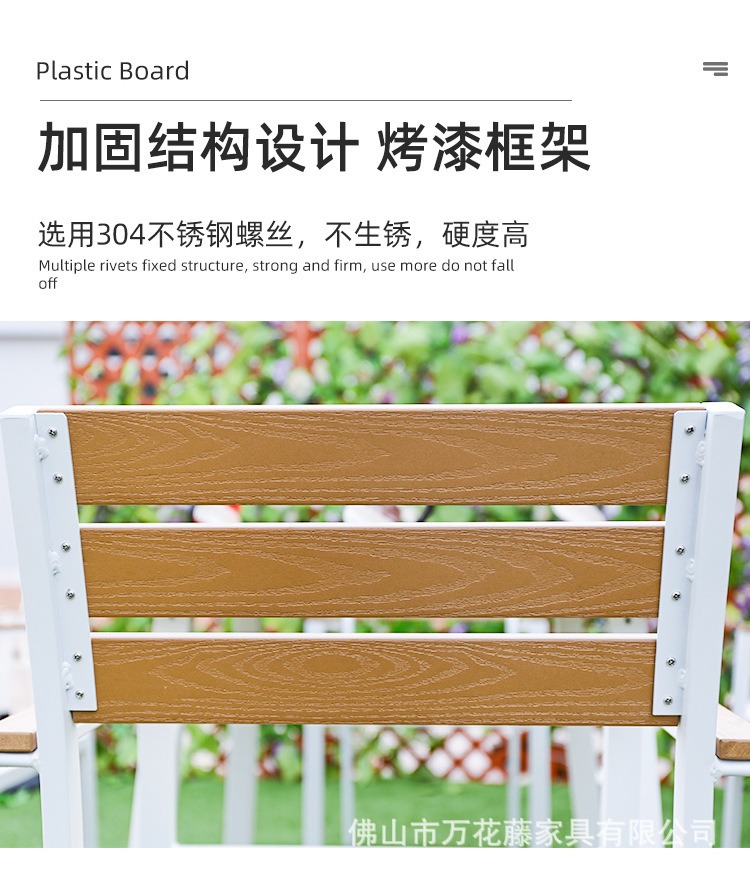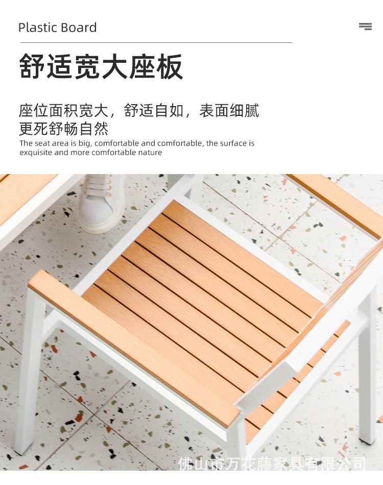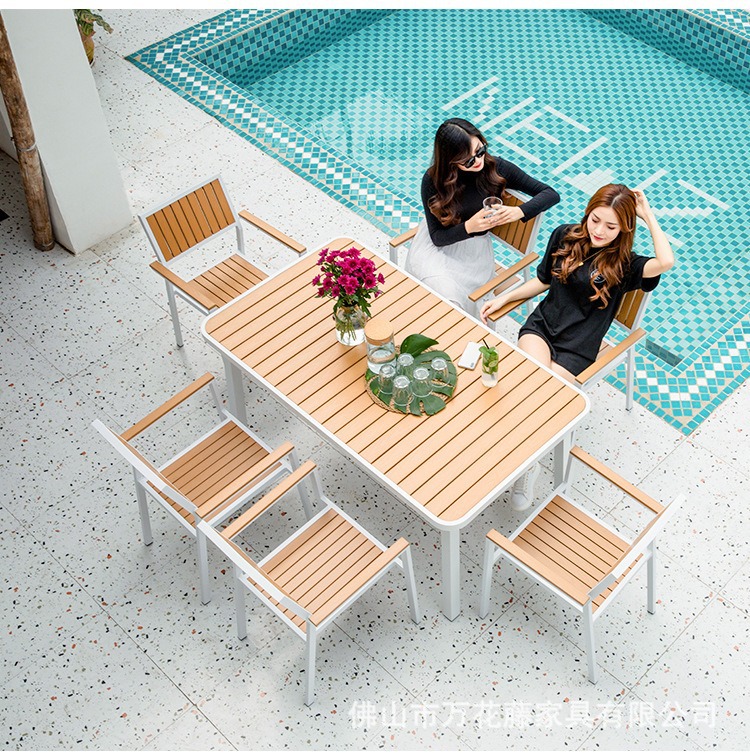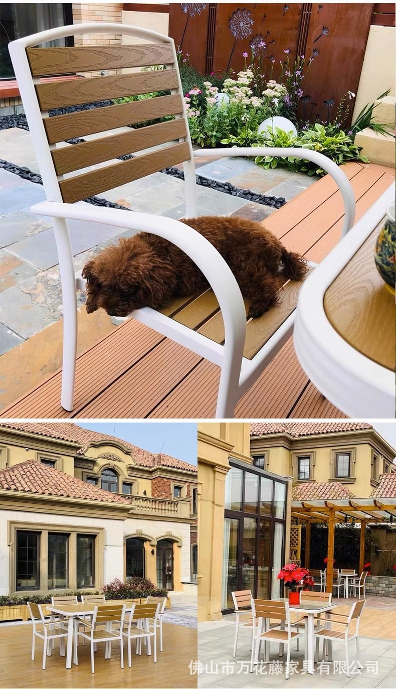 야외 플라스틱 목재 테이블과 의자 커피숍 야외 레저 식탁 안뜰 호텔 테라스 부식 방지 목재 발코니 테이블과 의자 조합
