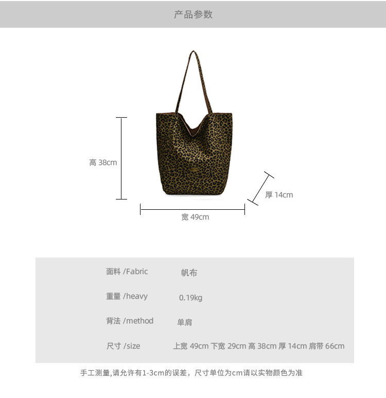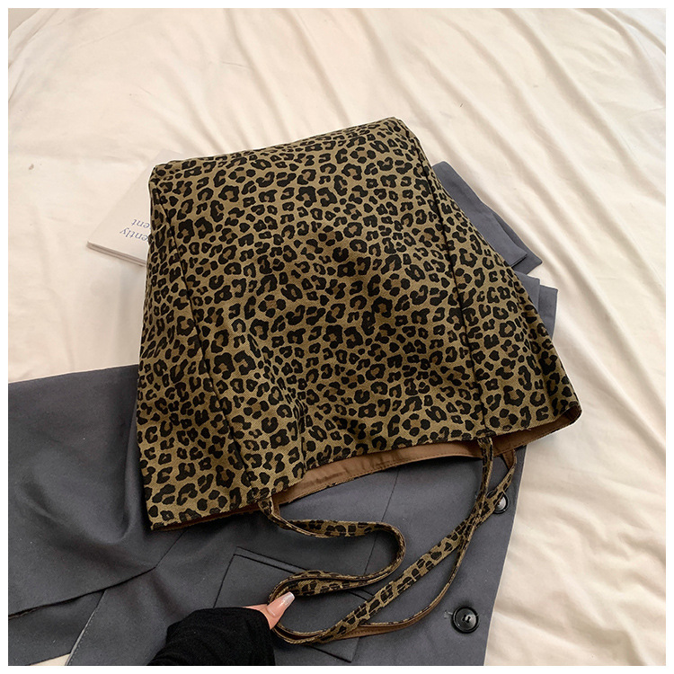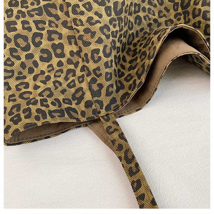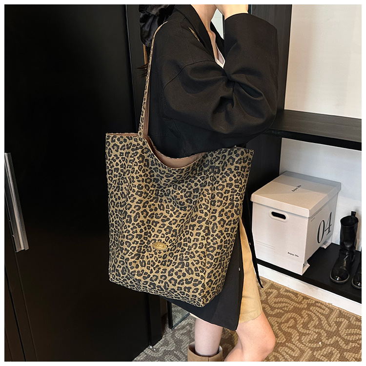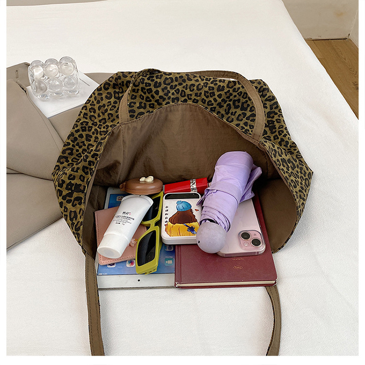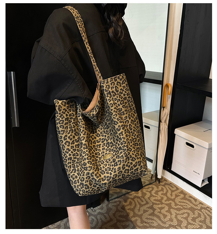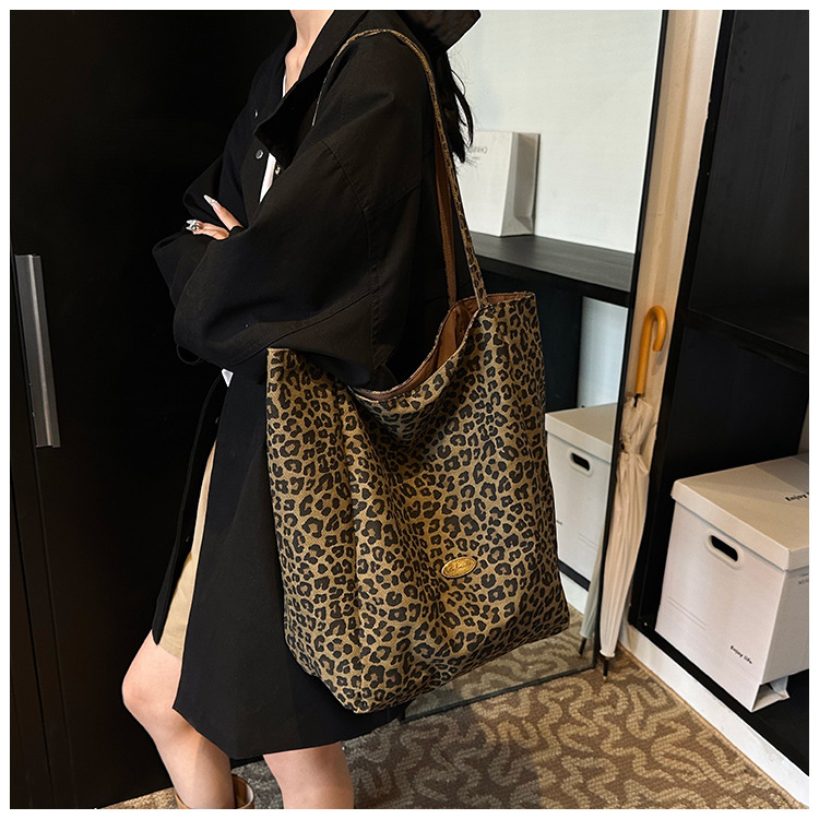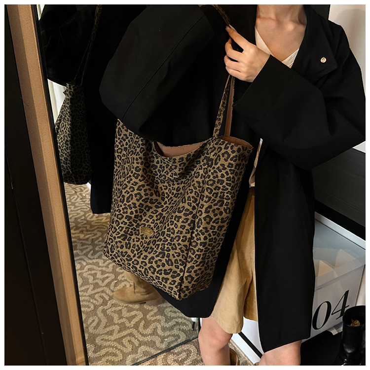 한국 레오파드 프린트 캔버스 가방 여성의 새로운 패션 대학 스타일 토트 백 캐주얼 대용량 겨드랑이 양면 숄더백스토어 가기