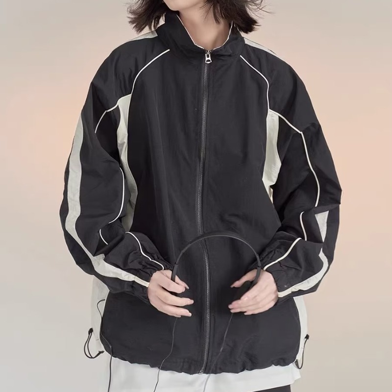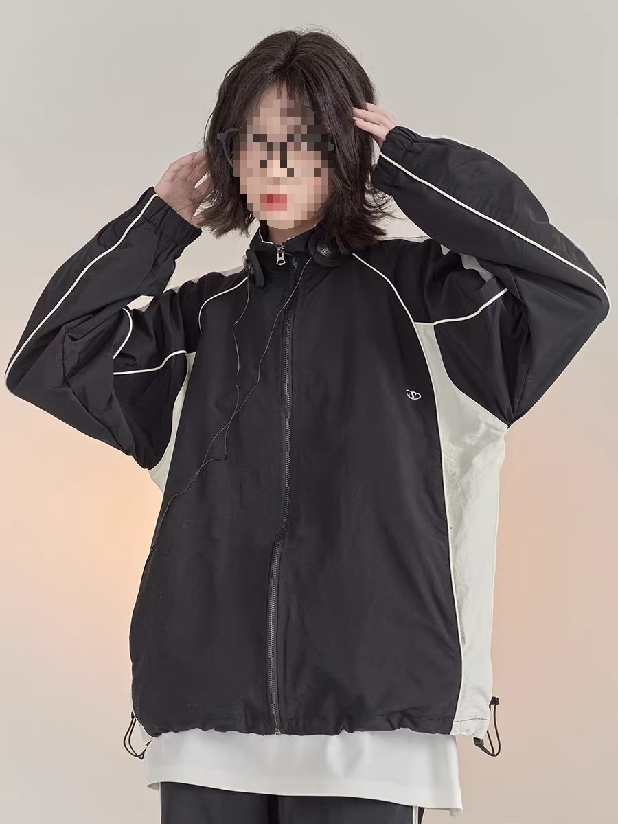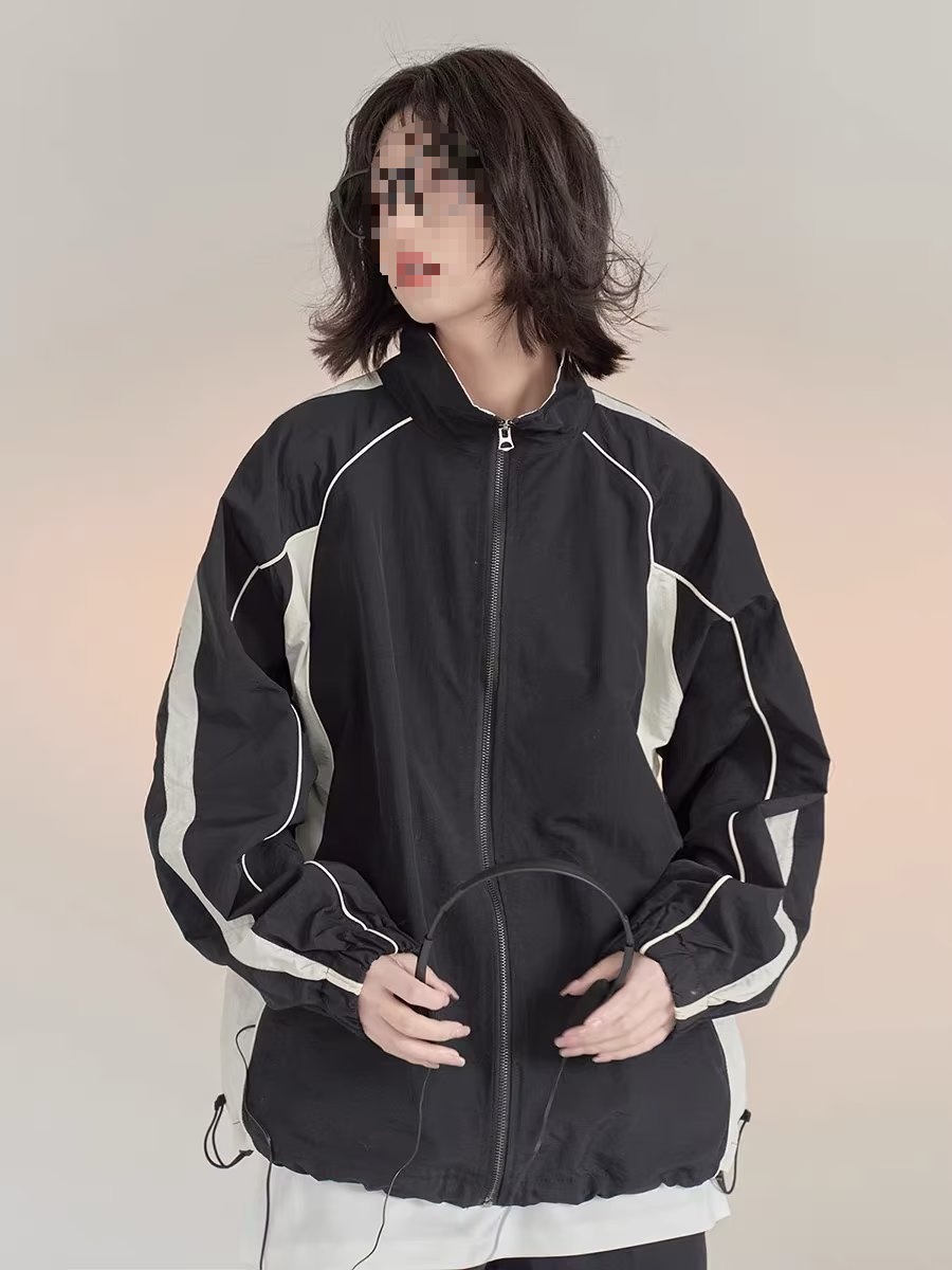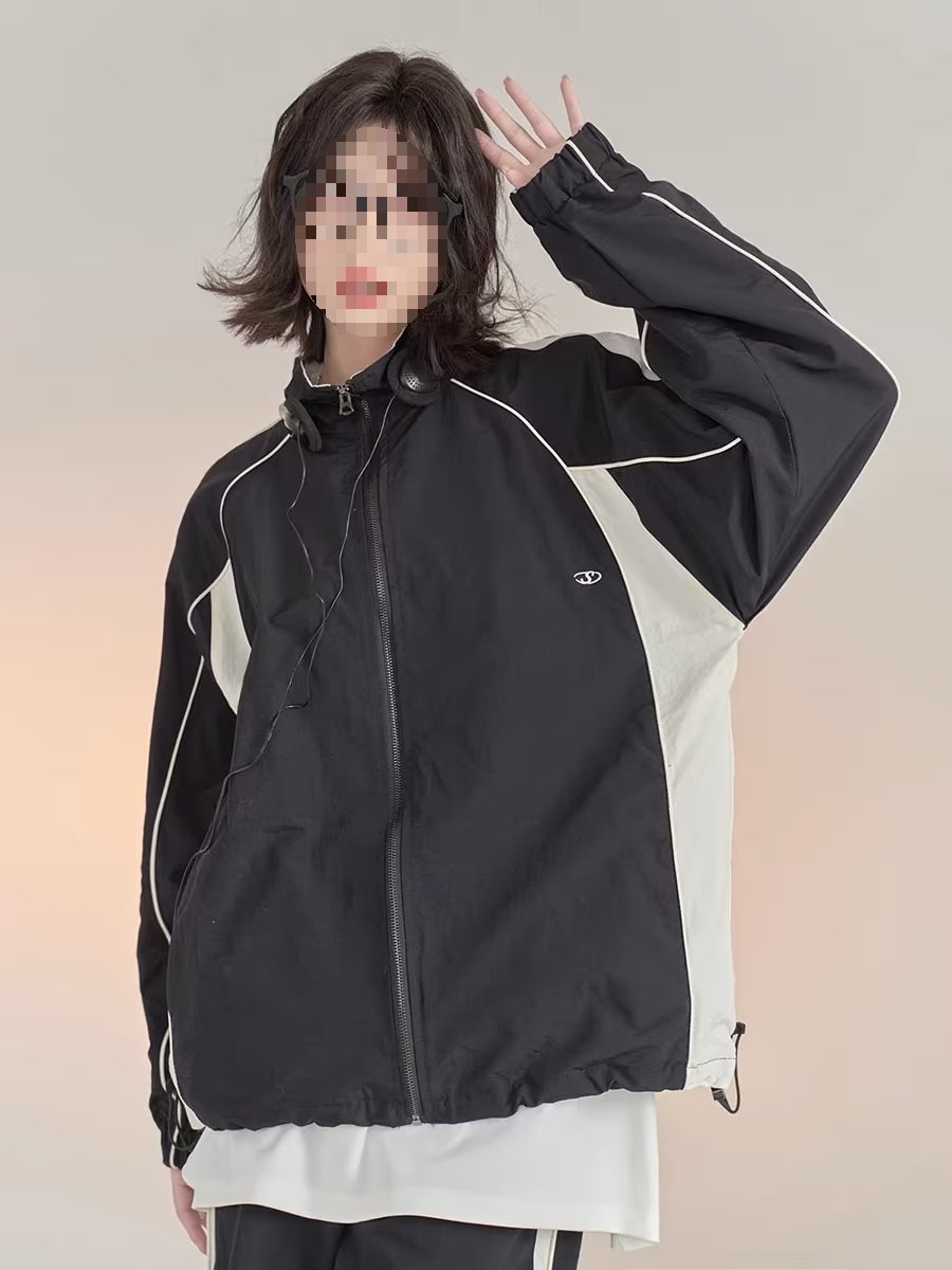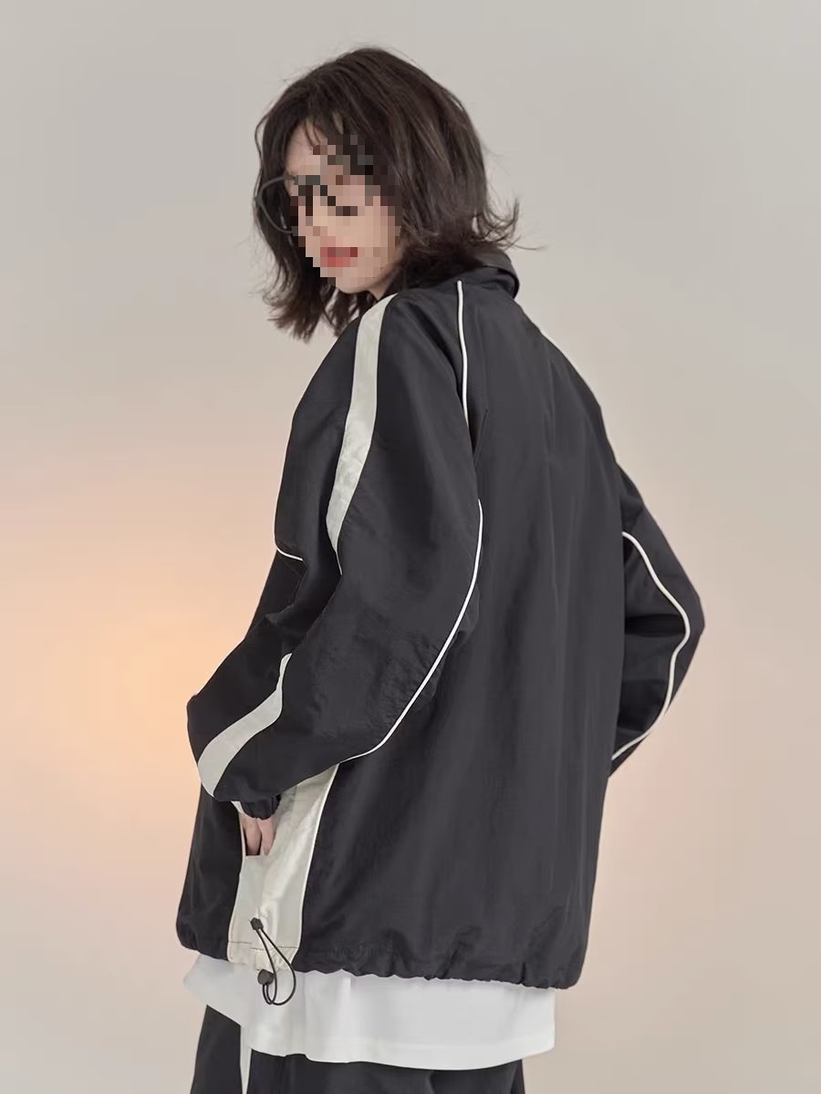 대비 색상 재킷 남성 봄, 가을 2024 유럽 드로스트링 캐주얼 스포츠 재킷 스탠드 칼라 윈드 브레이커 야구 재킷스토어 가기