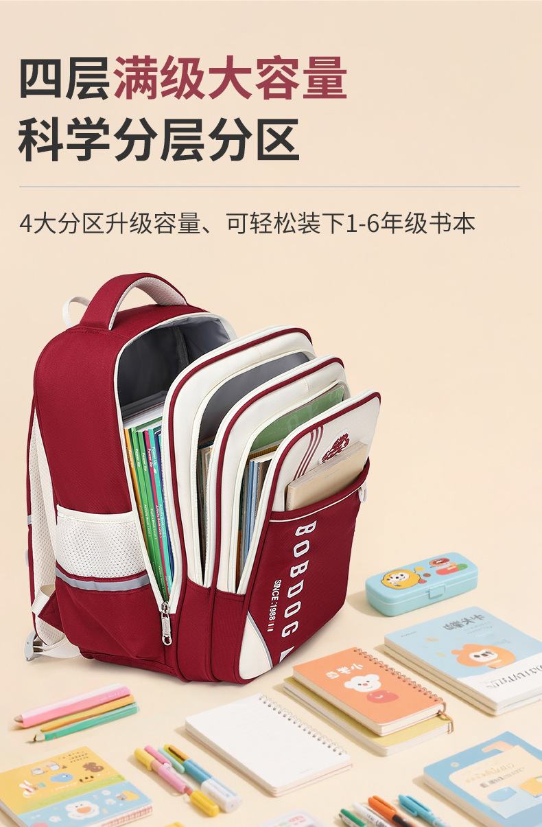 Babu Dou의 새로운 어린이 대용량 부담 감소 척추 보호 배낭 1, 3, 6 학년 소녀 초등학교 가방