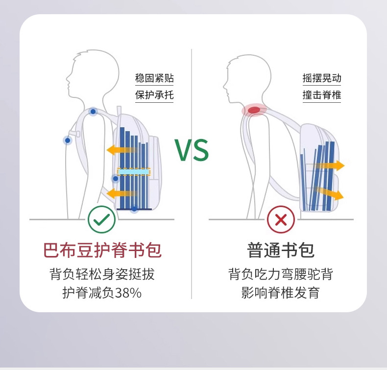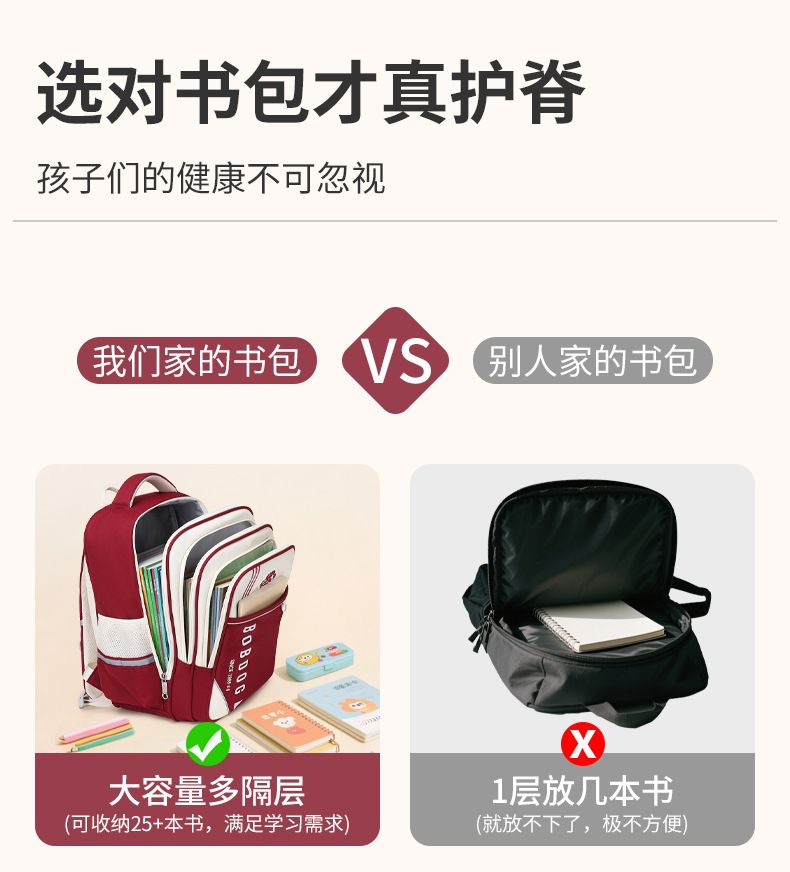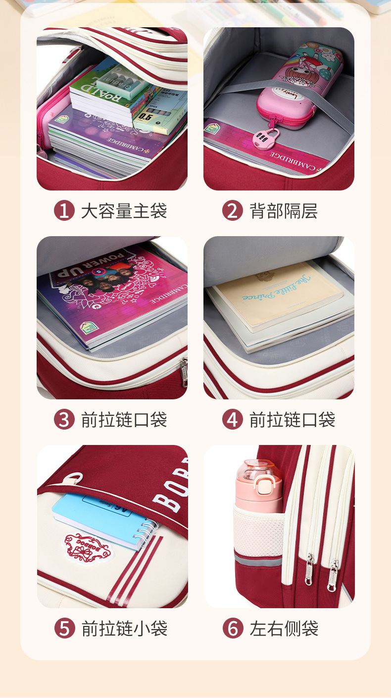 Babu Dou의 새로운 어린이 대용량 부담 감소 척추 보호 배낭 1, 3, 6 학년 소녀 초등학교 가방스토어 가기