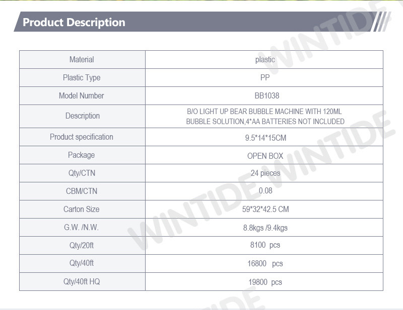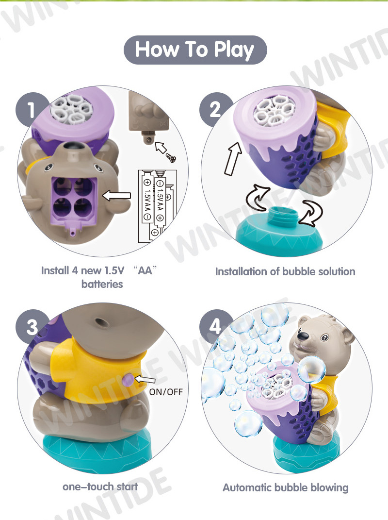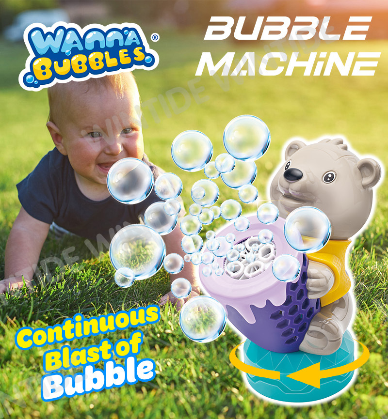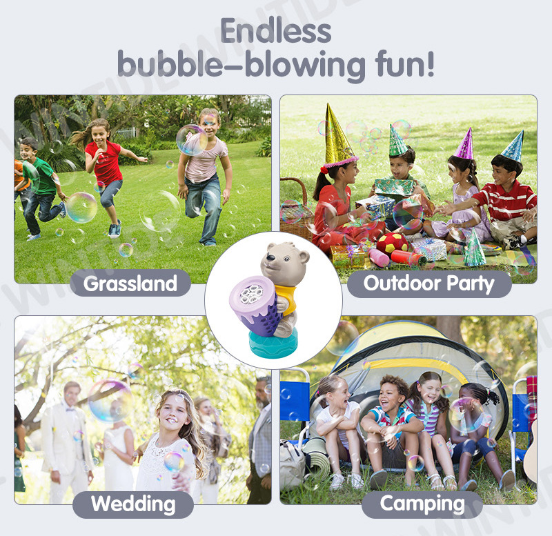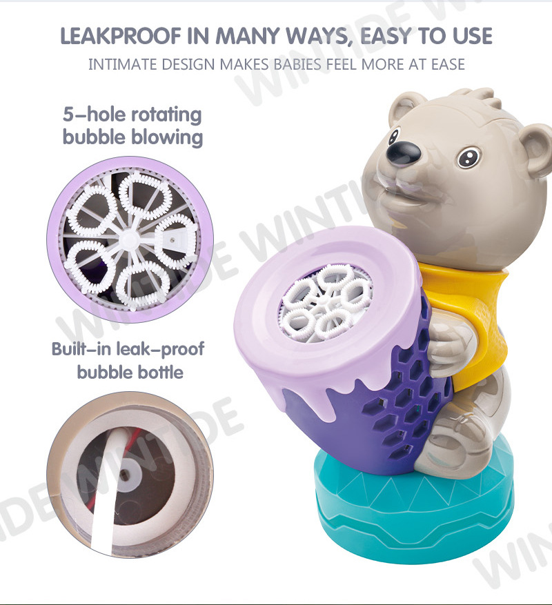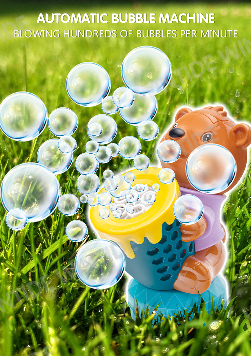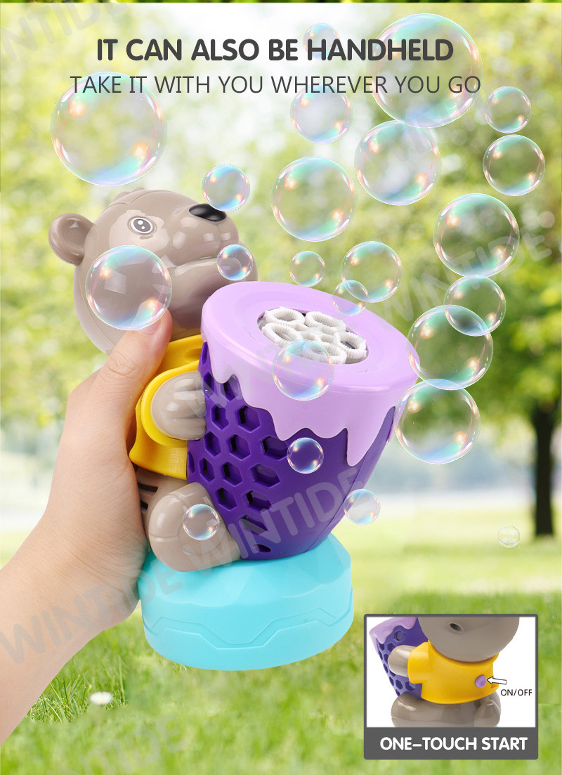신제품 국경 간 완전 자동 버블 머신 120ml 버블 워터와 조명이있는 곰 버블 머신
