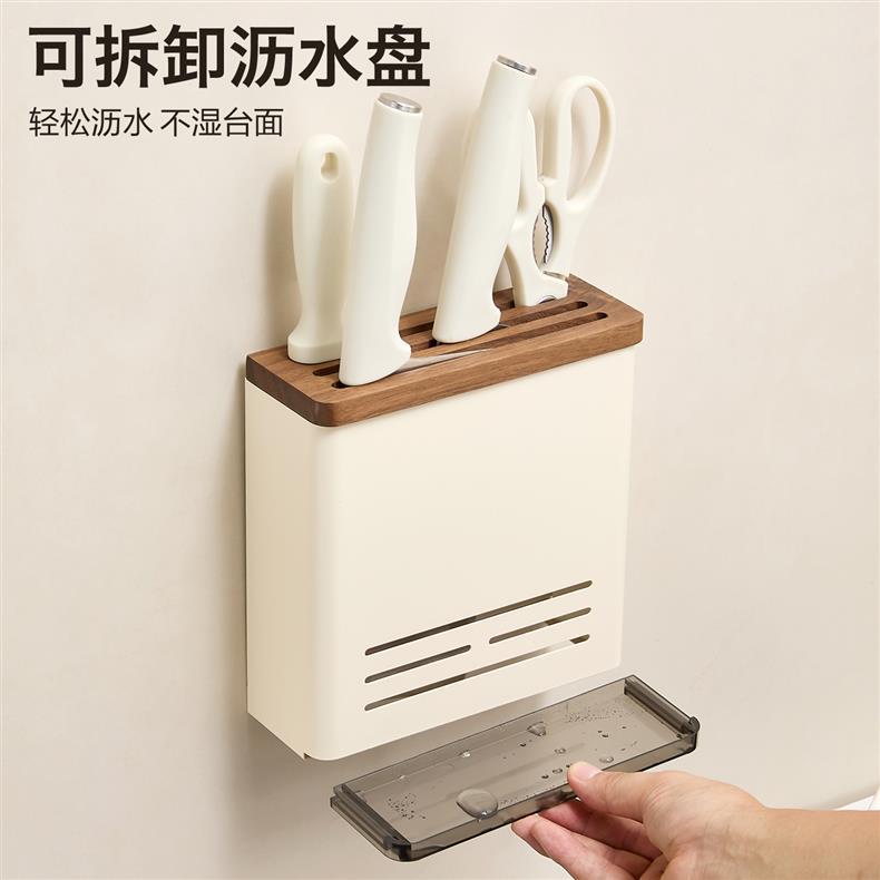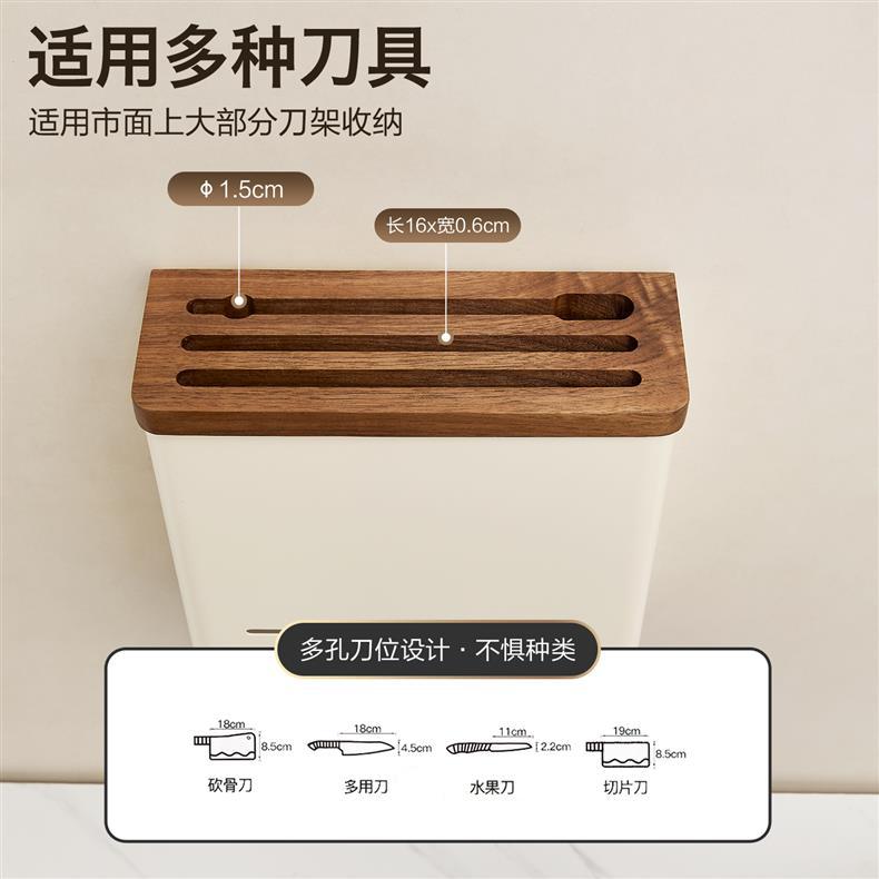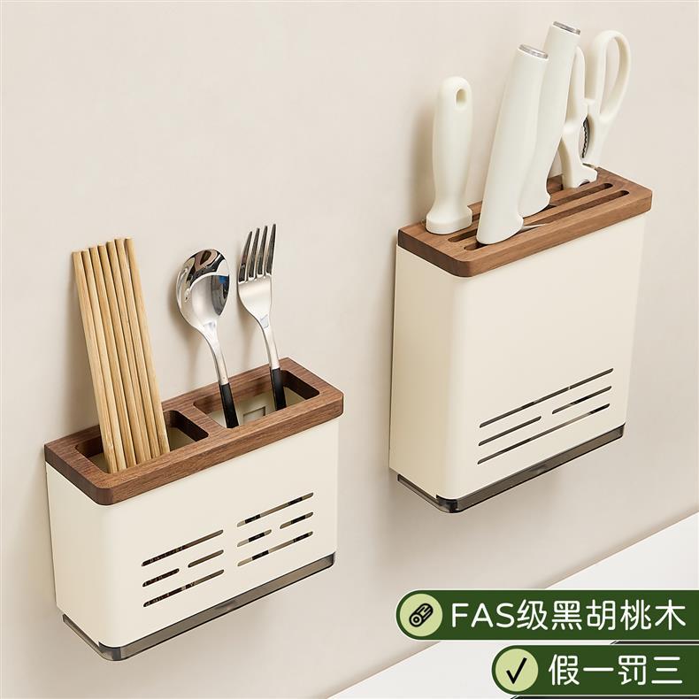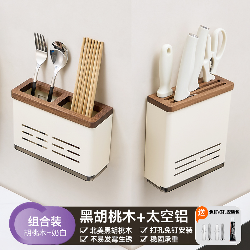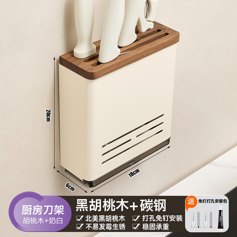 유백색 호두나무 칼걸이, 주방 벽걸이 칼걸이, 젓가락통 일체형 다기능 칼수납선반