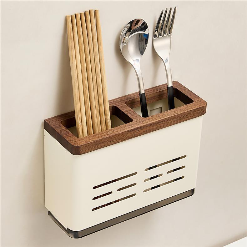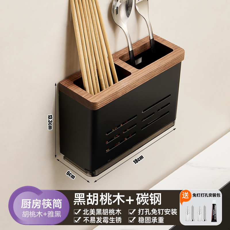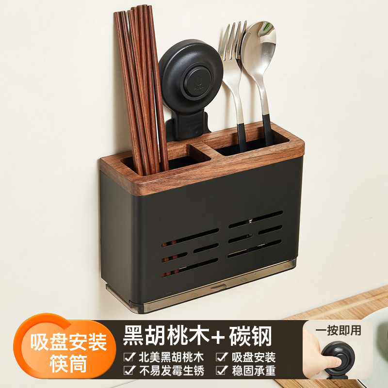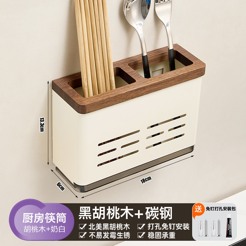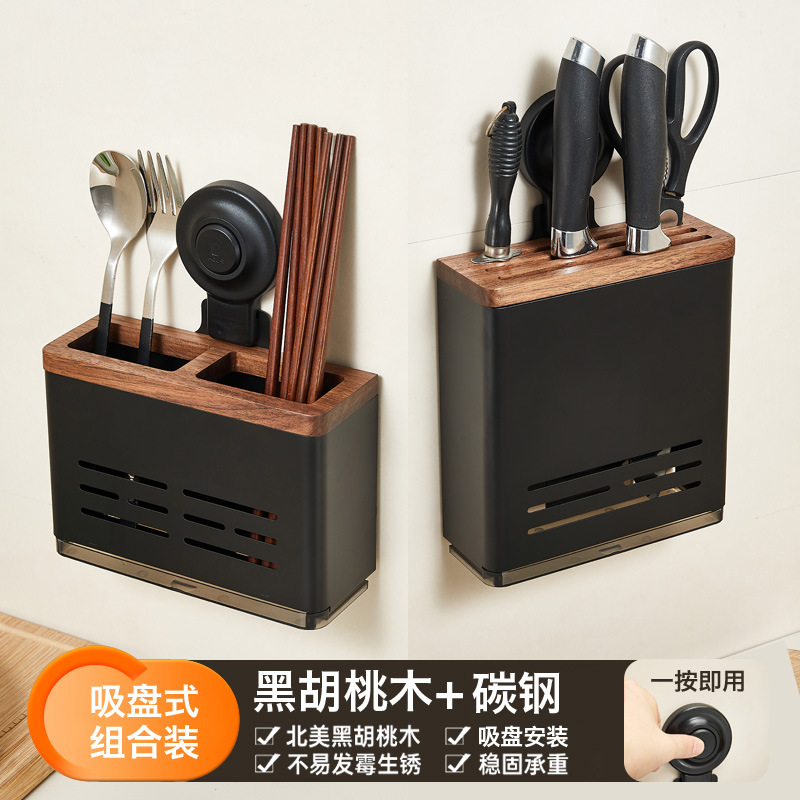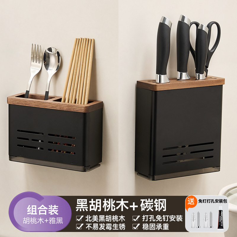 유백색 호두나무 칼걸이, 주방 벽걸이 칼걸이, 젓가락통 일체형 다기능 칼수납선반