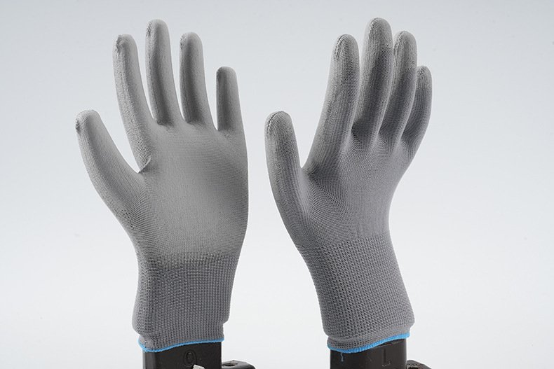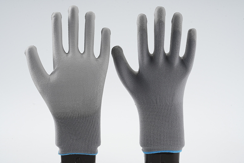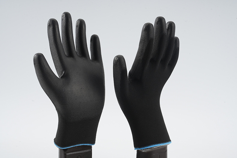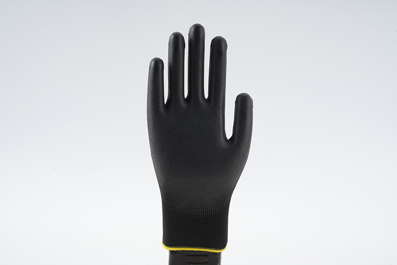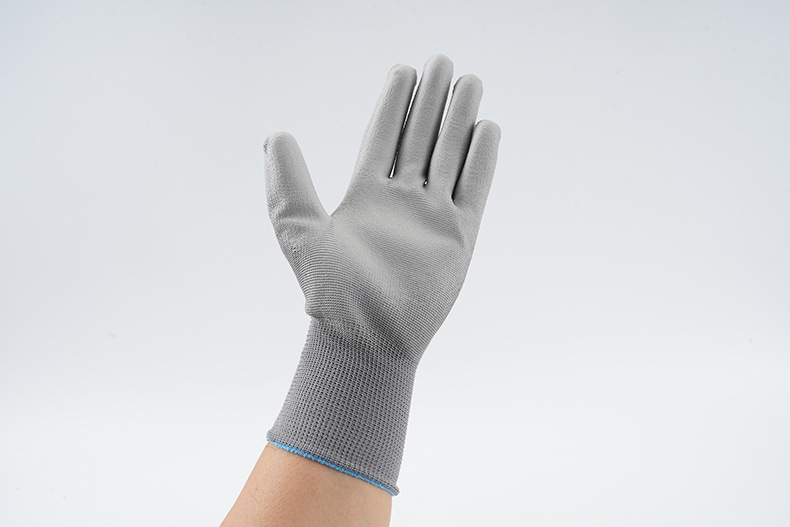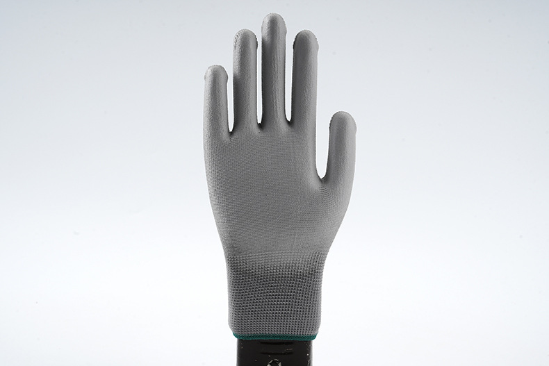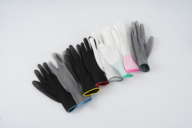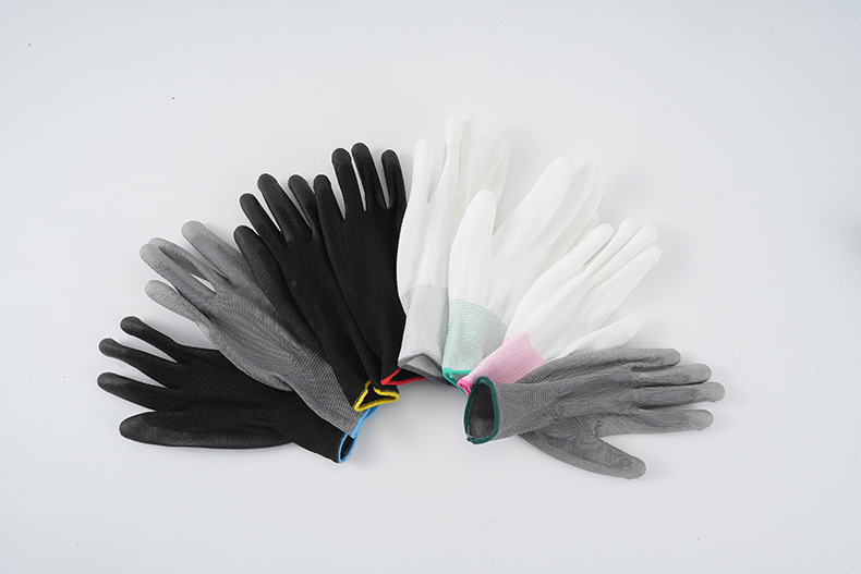 단색 PU 코팅 손바닥 장갑, 13바늘 통기성 고무 코팅 장갑, 통기성 작업 보호 장갑, 재고 도매스토어 가기
