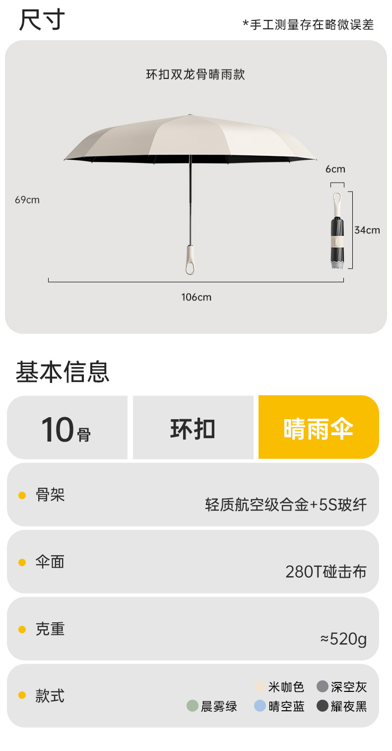 • 맑은 하늘색 소형 링 버클 - 블랙 코팅 자외선 차단