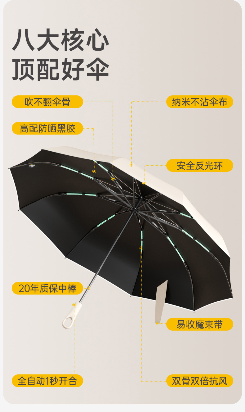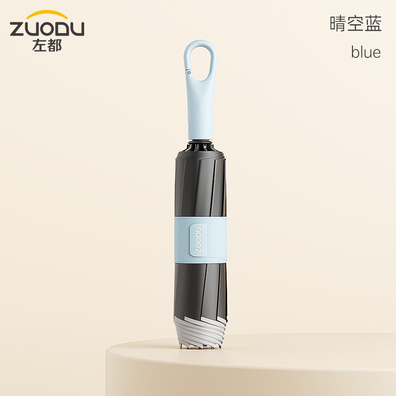 Zuodu 비닐 버클 우산 완전 자동 역방향 우산 비 또는 빛 남성용 강화 및 두꺼운 자외선 차단 우산