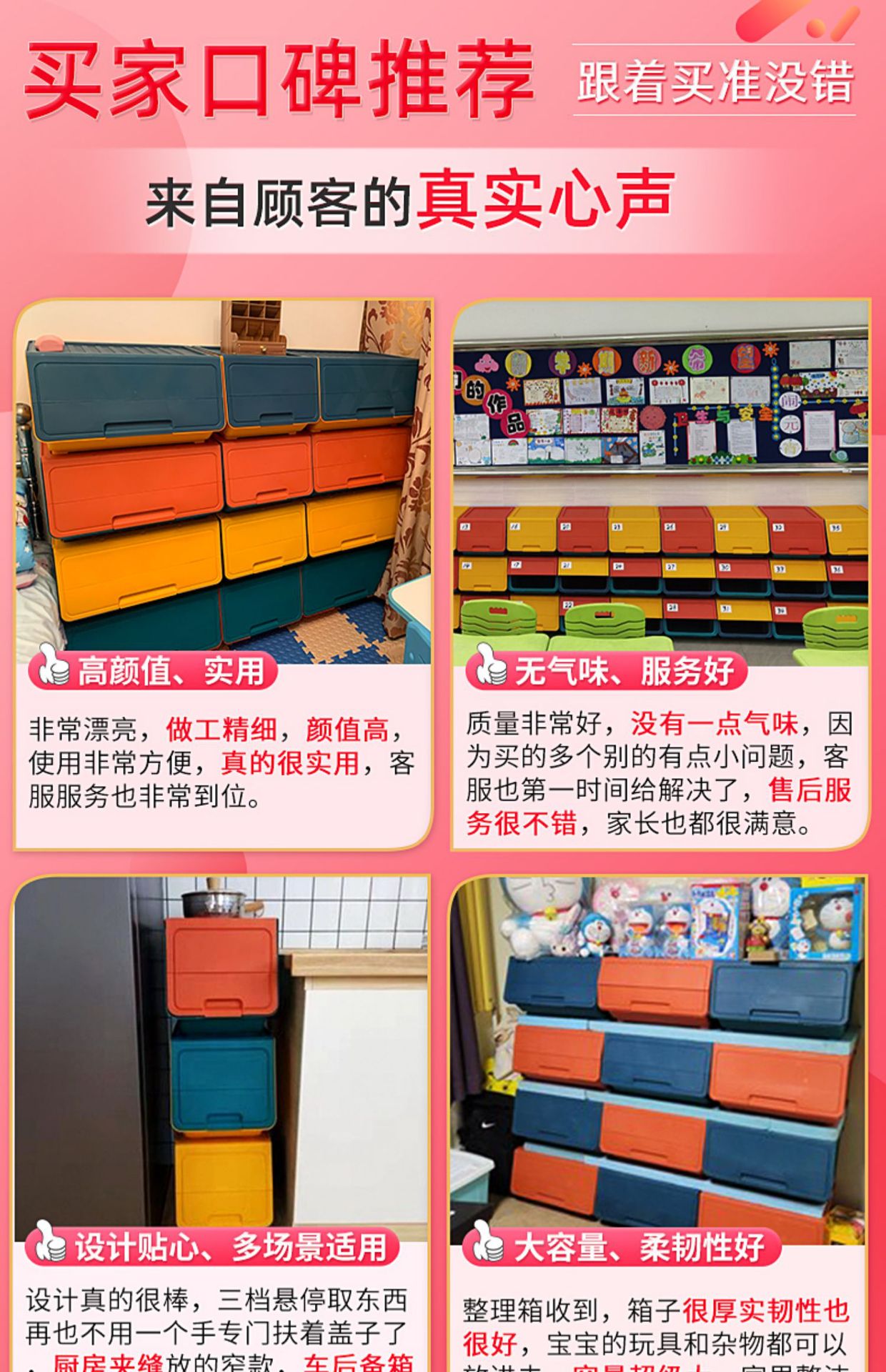 전면 개방형 보관함 플립 탑 어린이 장난감 보관함 플라스틱 가정용 스낵 도서 보관함 정리 캐비닛