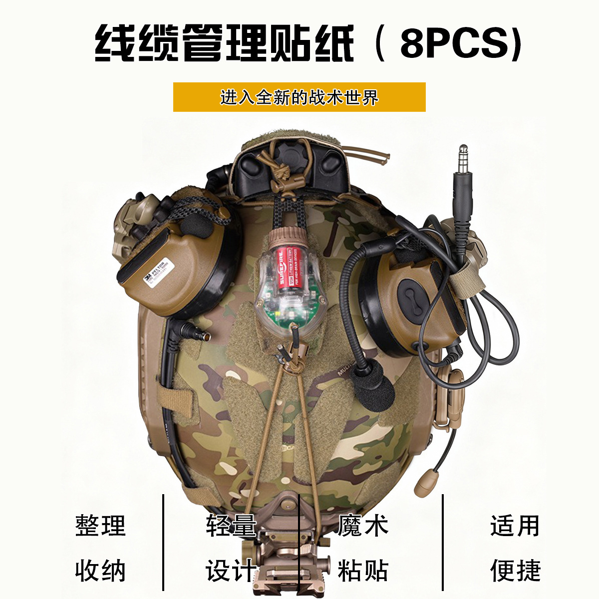 전술 야외 전자 통신 장비 라디오 PTT 정리 및 보관 벨크로 케이블 관리 스티커 8pcs스토어 가기