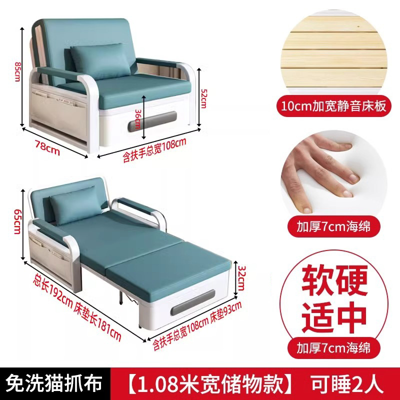 소파 베드 접이식 이중 목적 발코니 다기능 침대 작은 아파트 싱글 소파 2025 새로운 인터넷 연예인 텔레스코픽 침대스토어 가기