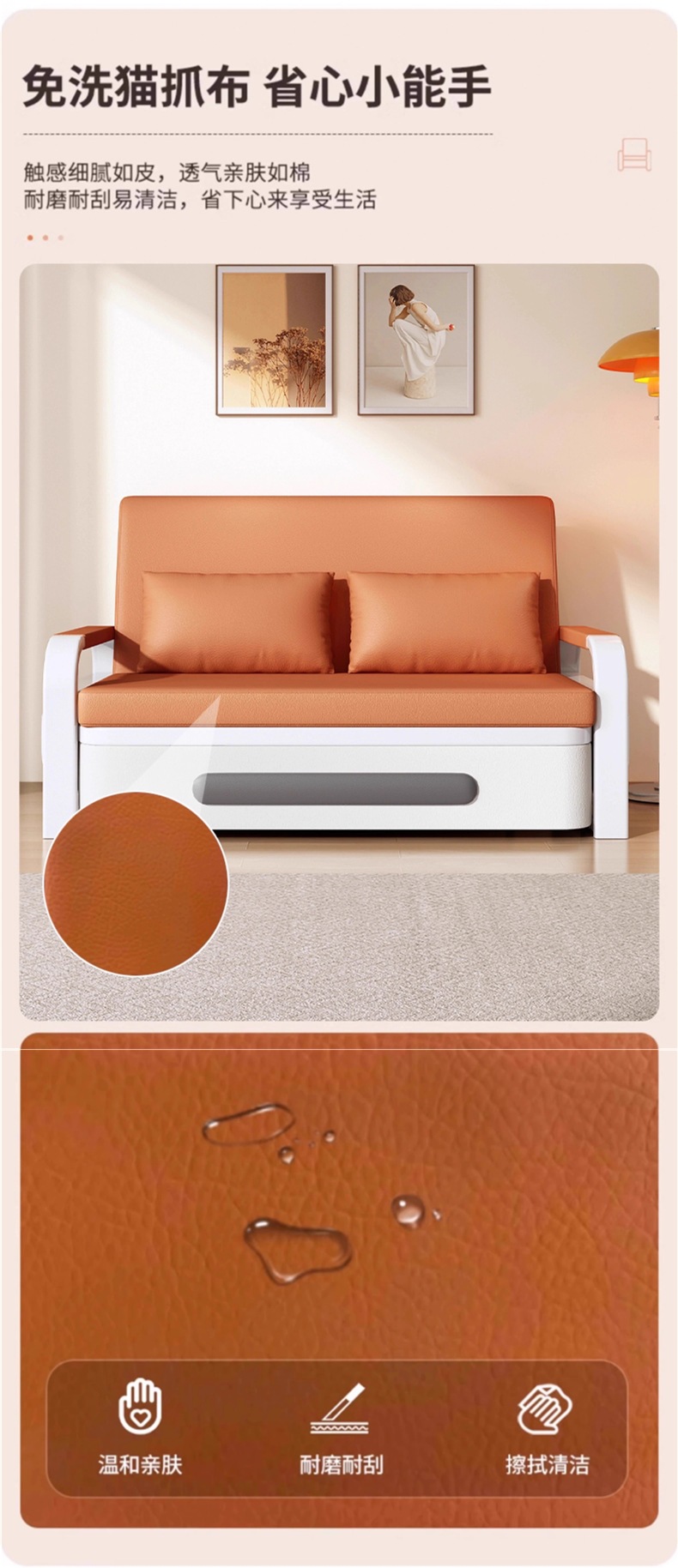 • ([0.82m 수납모델] 5cm 스펀지 + 2cm 라텍스 (고양이 스크래치 가죽 + 오렌지))
