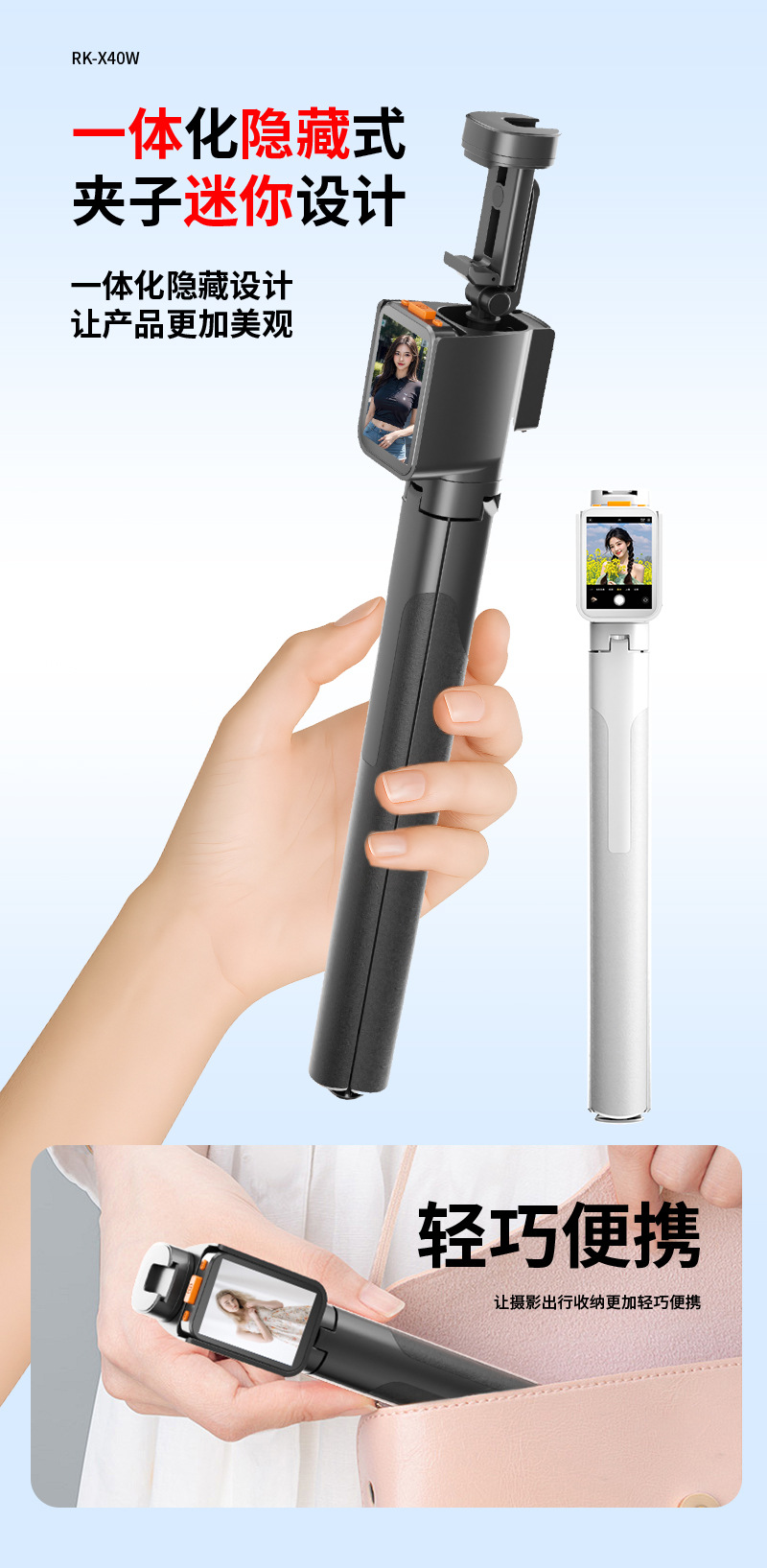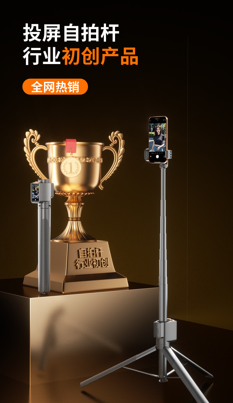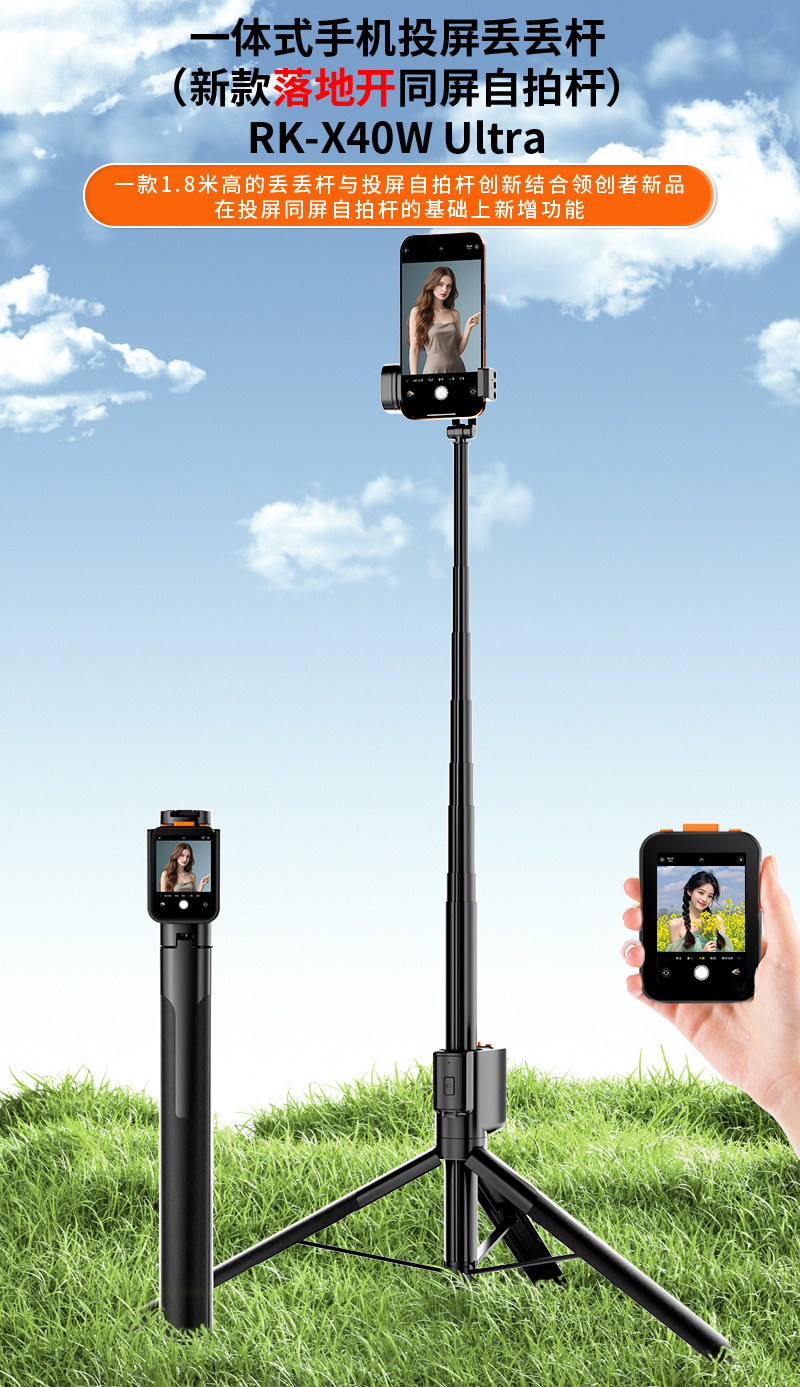 새로운 플로어 스탠딩 셀카봉, 오디오 및 동일한 화면, 듀얼 블루투스 사진, 줌 및 초점 조절, 휴대폰 스크린 프로젝션 스틱