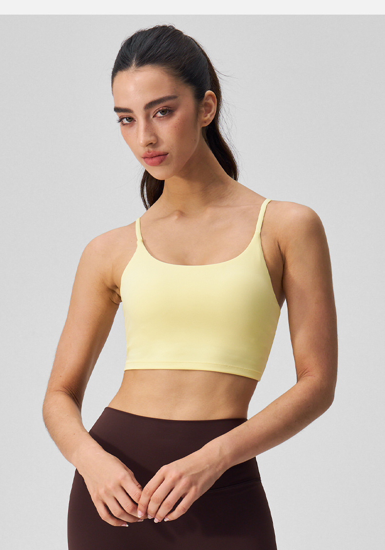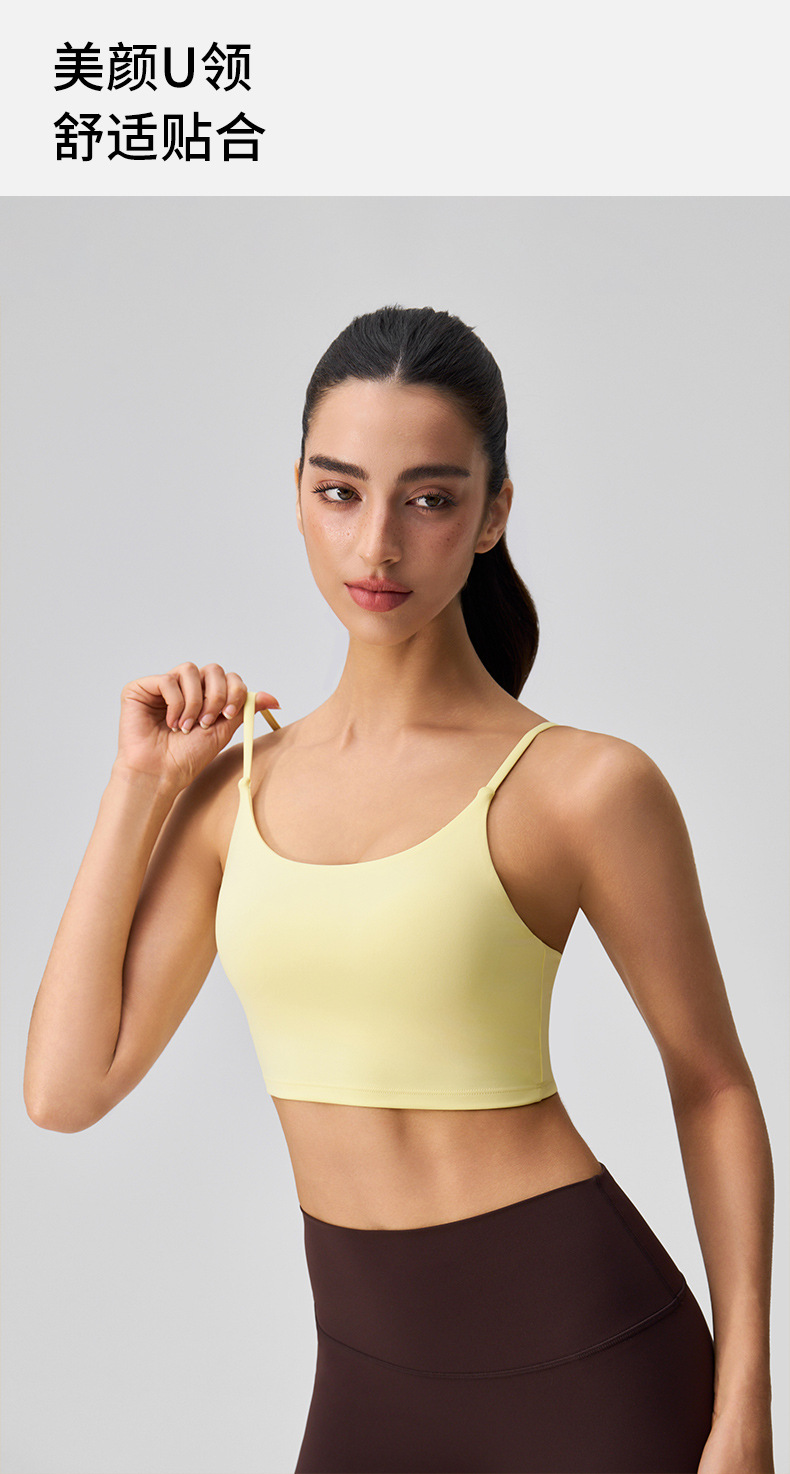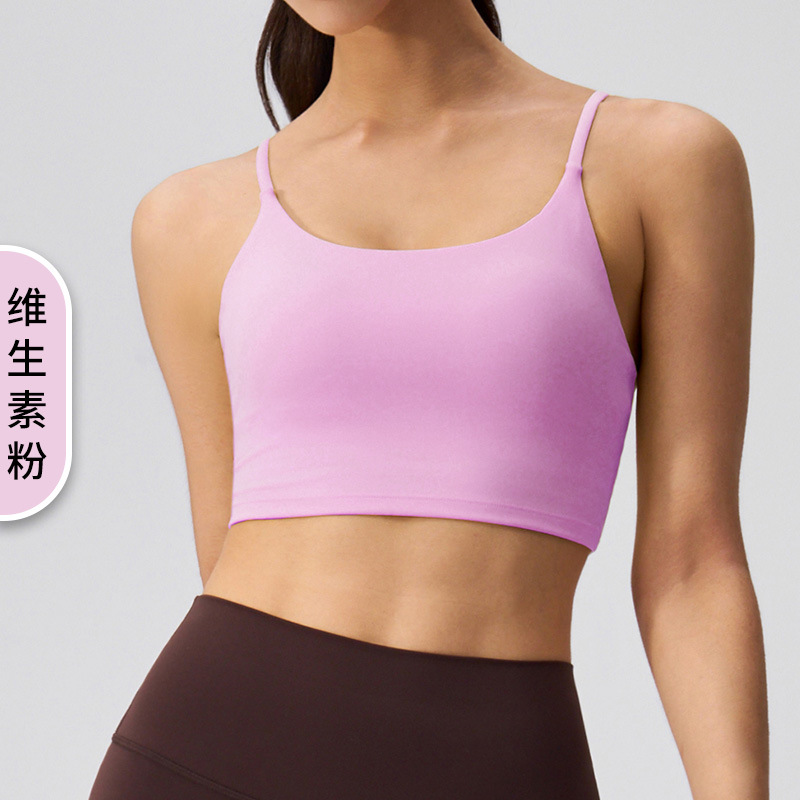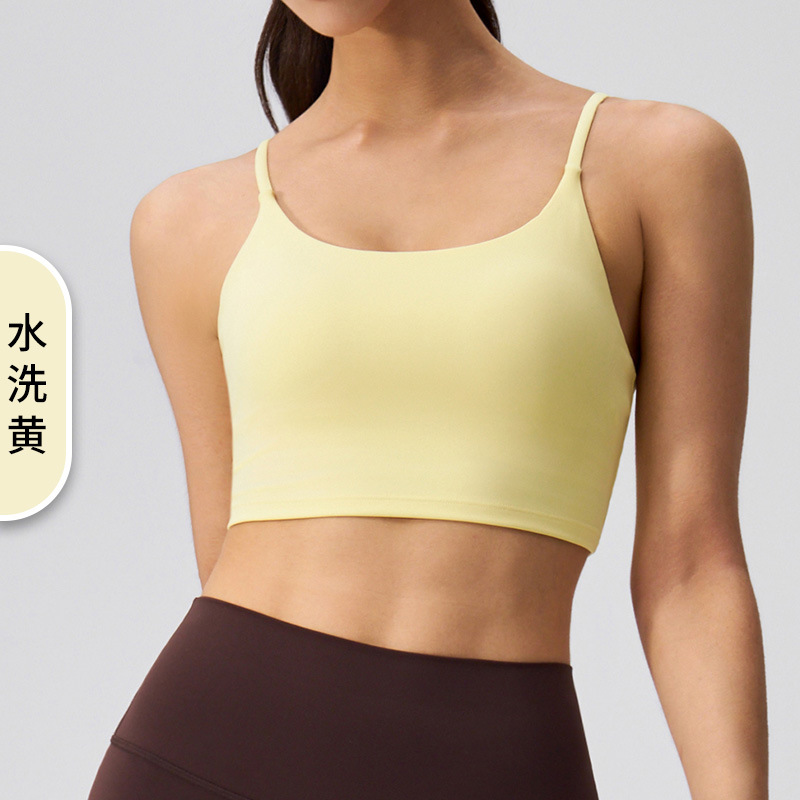 여성을 위한 새로운 여름 요가 조끼, 누드 느낌, 매끄럽고 섹시한 아름다운 등 스포츠 브라, 가슴 패드가 있는 고탄성 피트니스 브라