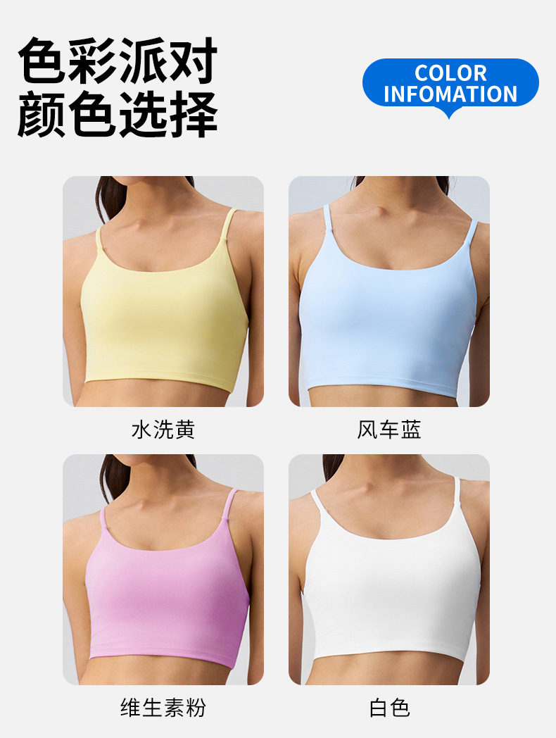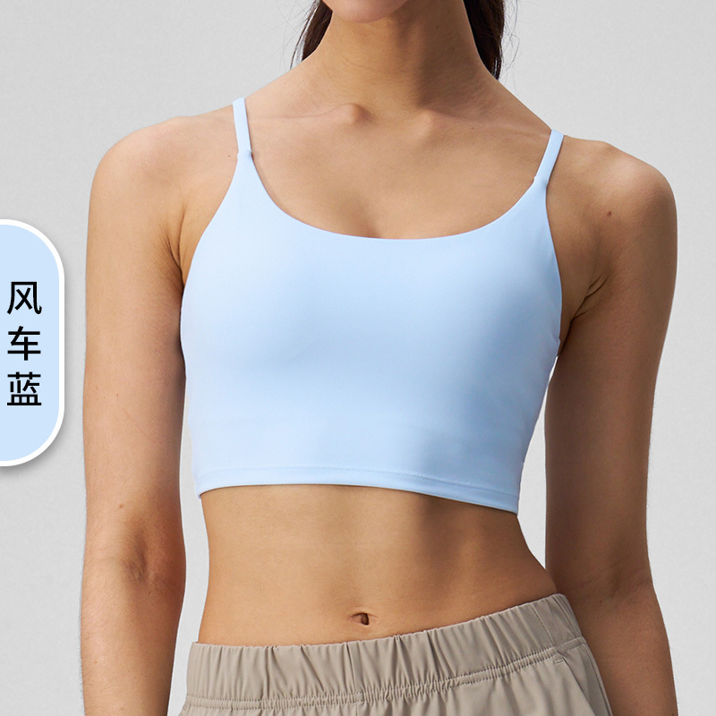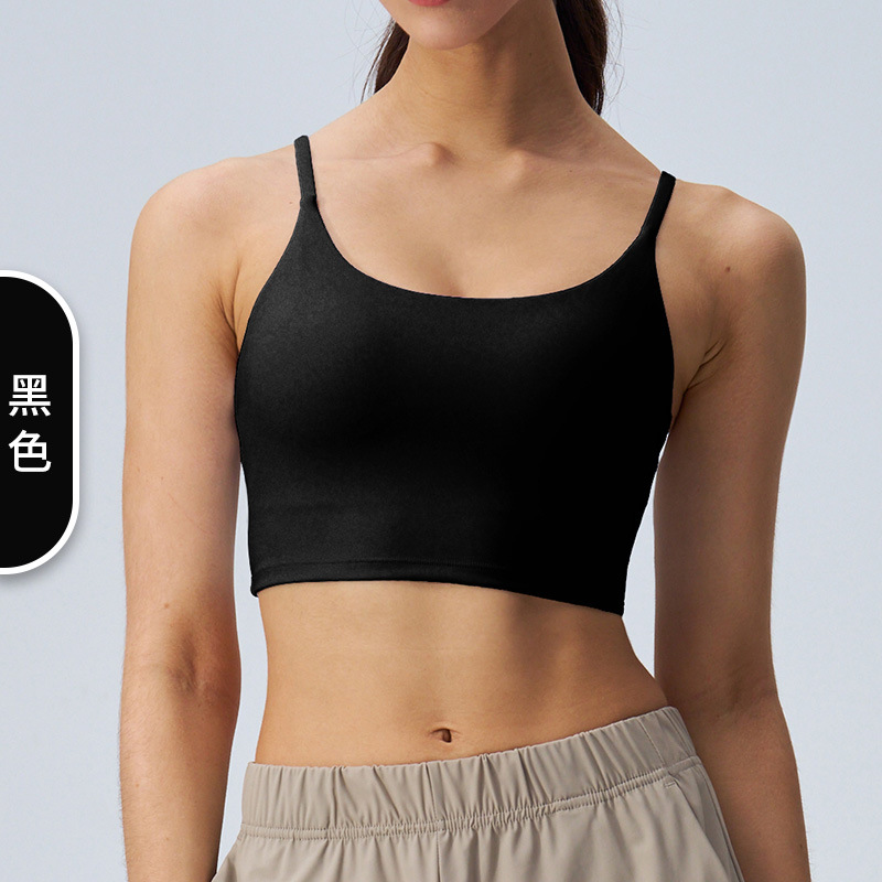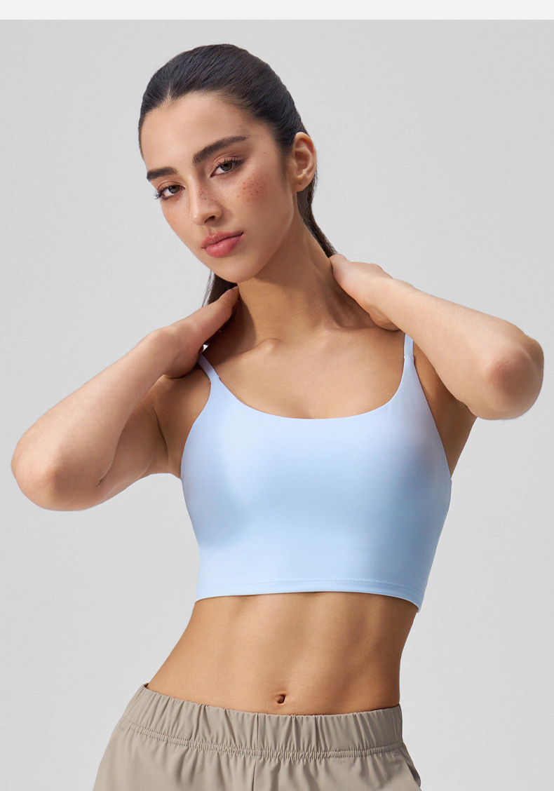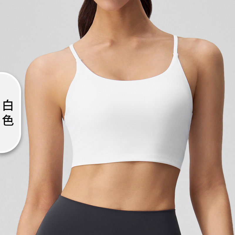 여성을 위한 새로운 여름 요가 조끼, 누드 느낌, 매끄럽고 섹시한 아름다운 등 스포츠 브라, 가슴 패드가 있는 고탄성 피트니스 브라