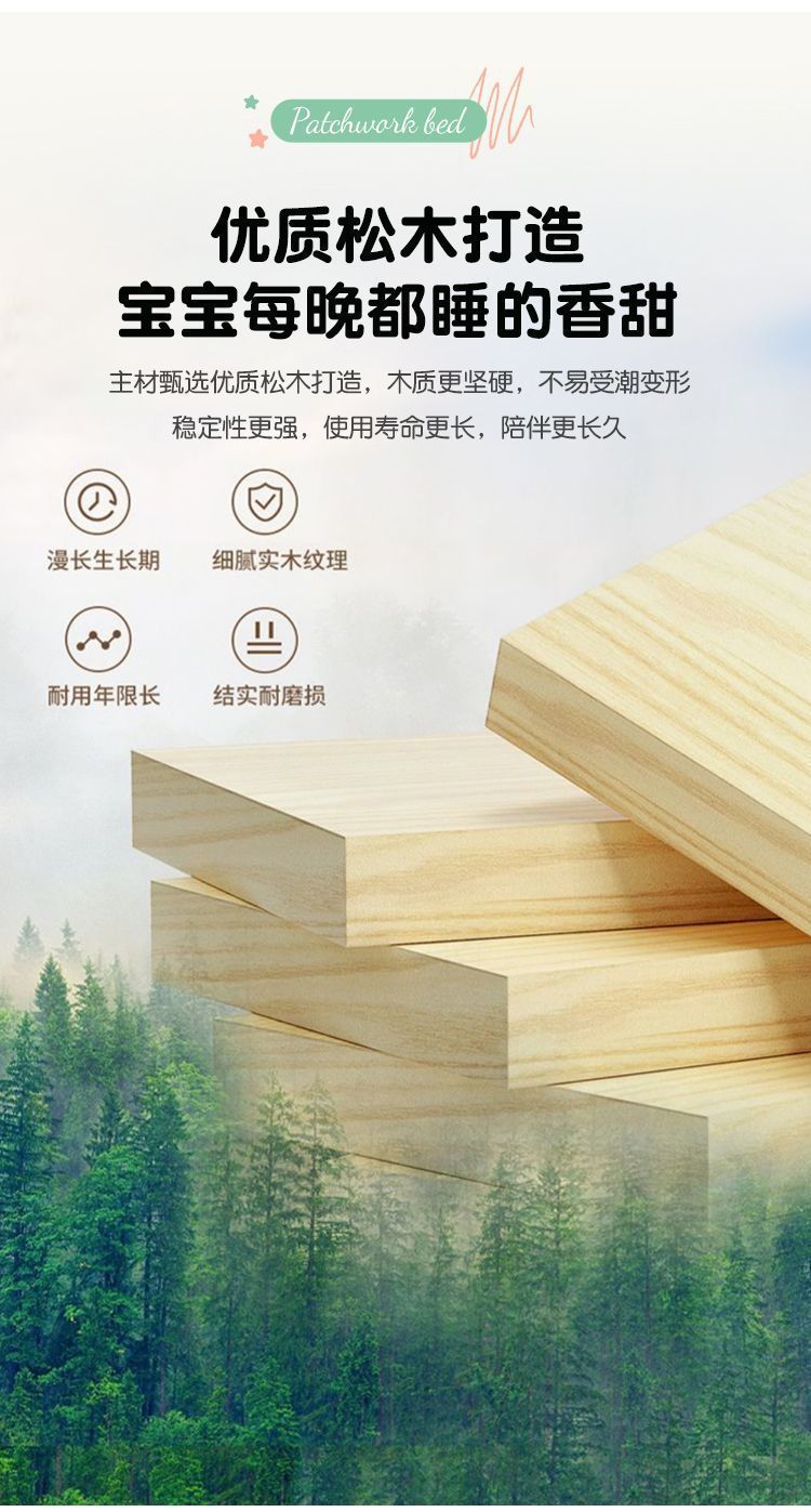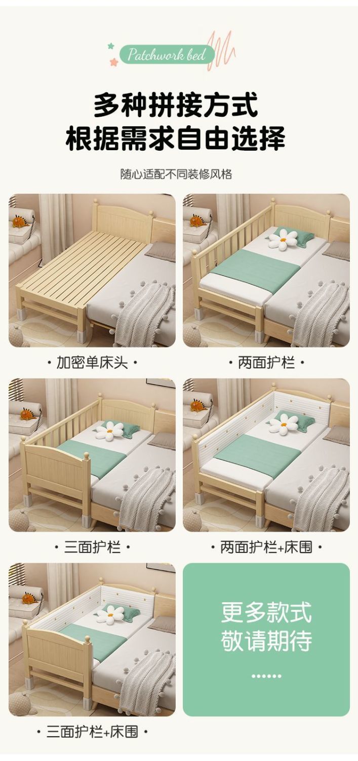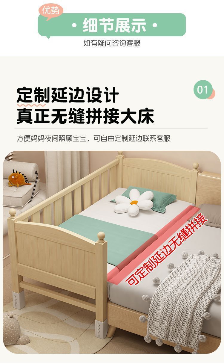 조립식 침대, 침대 옆 확장형 유아용 침대, 어린이용 침대, 원목 소형 침대, 높이 조절 가능 사이드 침대