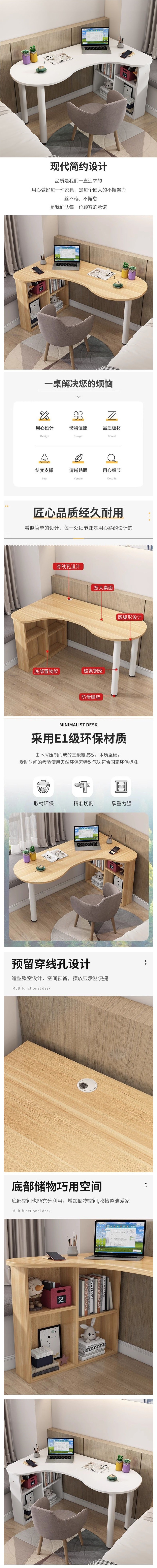 코너 책상 곡선 컴퓨터 침실 조합 사무실 책상 책장 코너 발코니 간단한 테이블