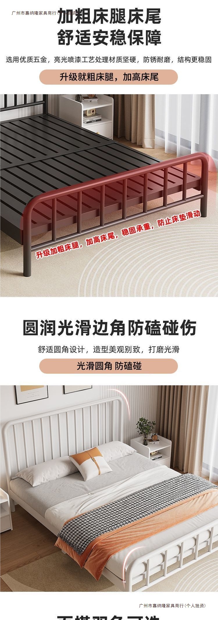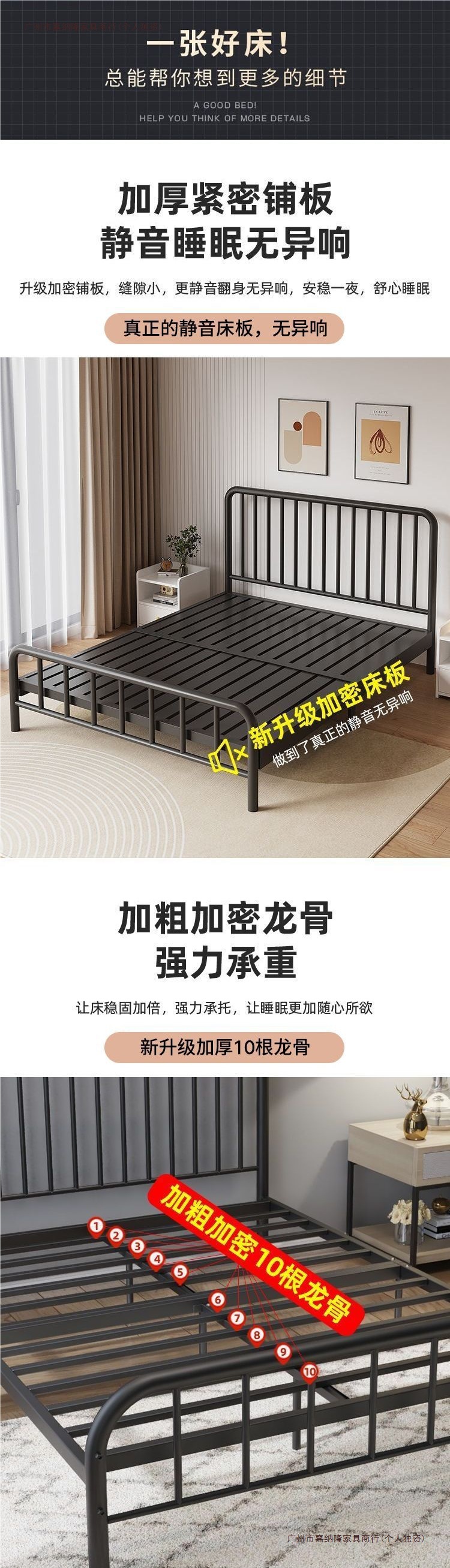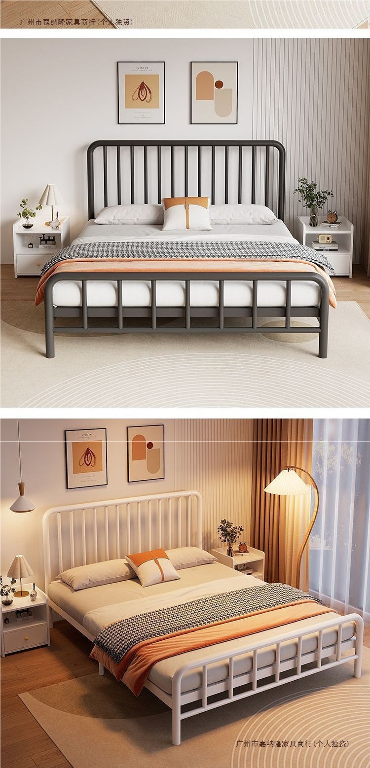 내구성이 뛰어난 심플한 철제 침대 더블 침대 1.8m 철제 침대 싱글 1.6m m 철제 프레임 침대 홈 렌탈 룸 인터넷 연예인