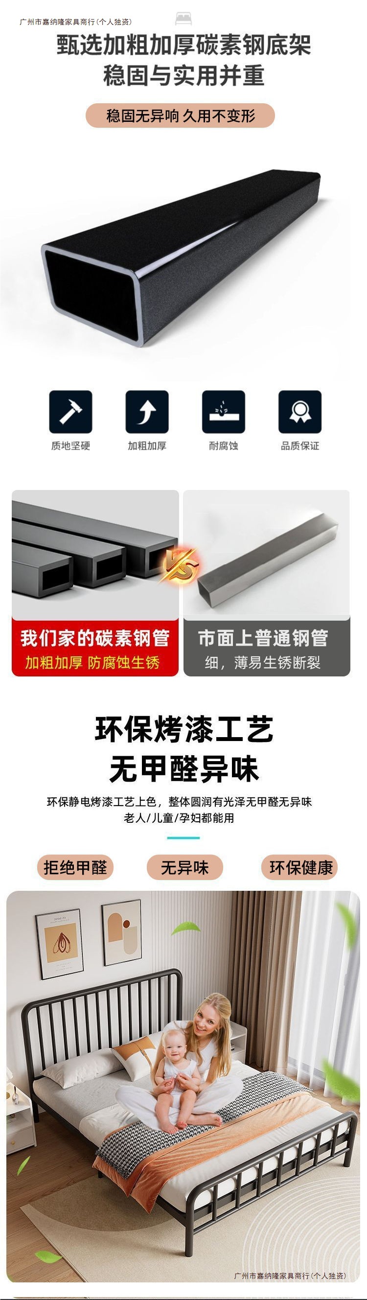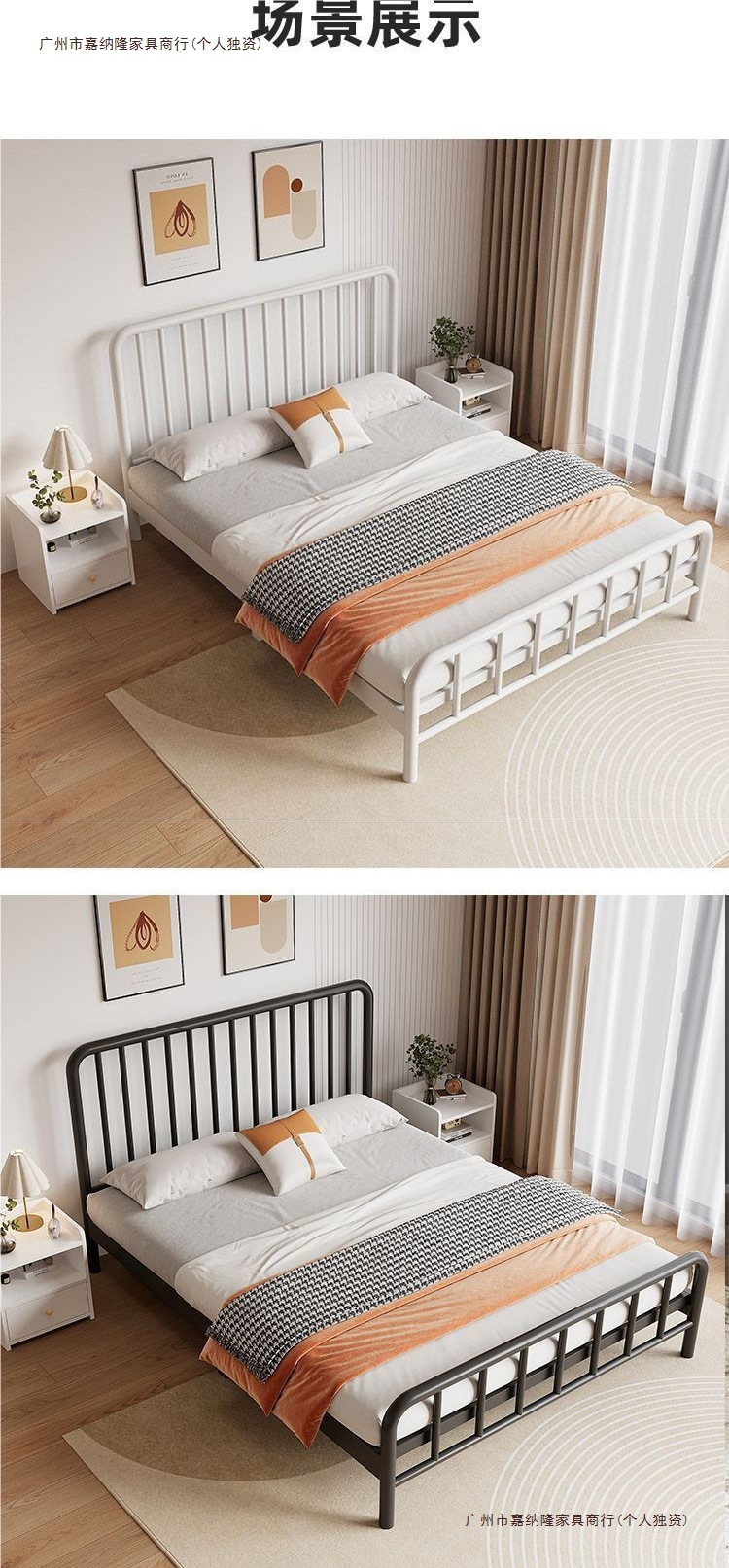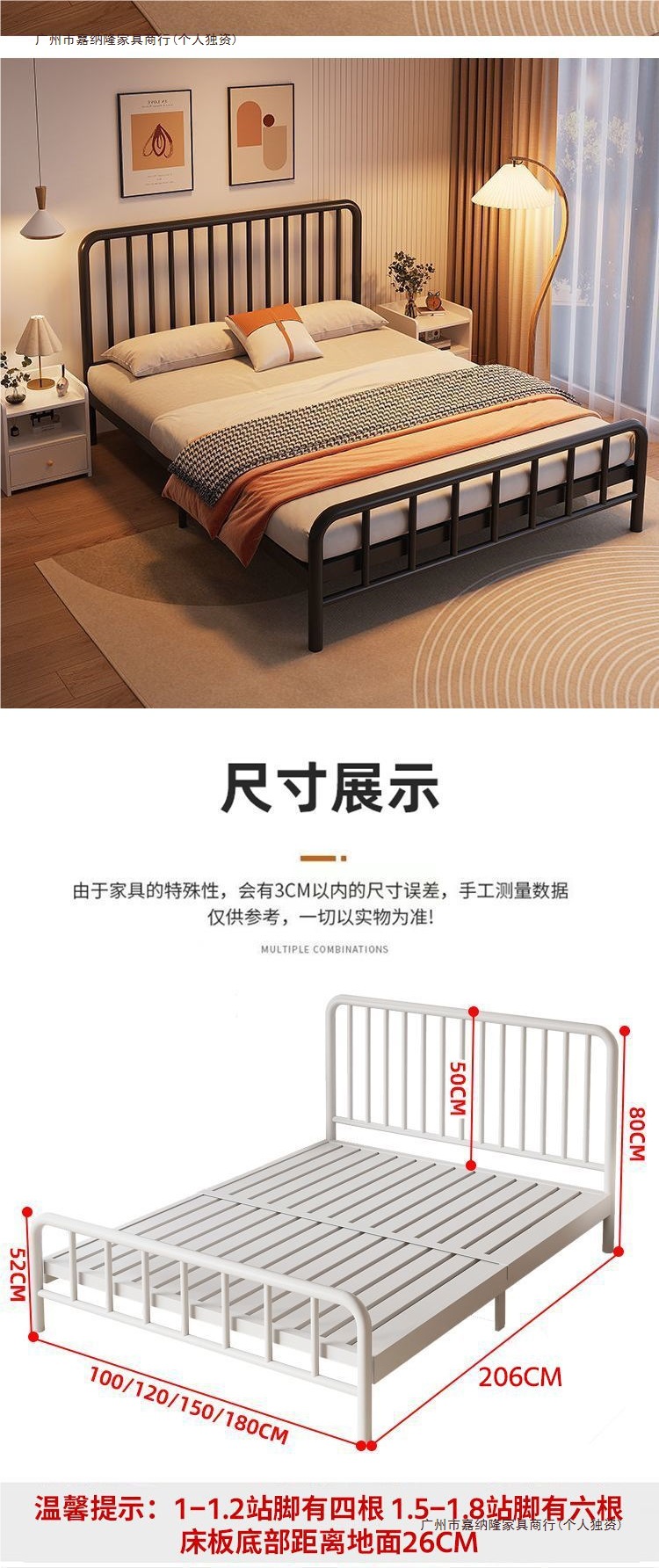 내구성이 뛰어난 심플한 철제 침대 더블 침대 1.8m 철제 침대 싱글 1.6m m 철제 프레임 침대 홈 렌탈 룸 인터넷 연예인