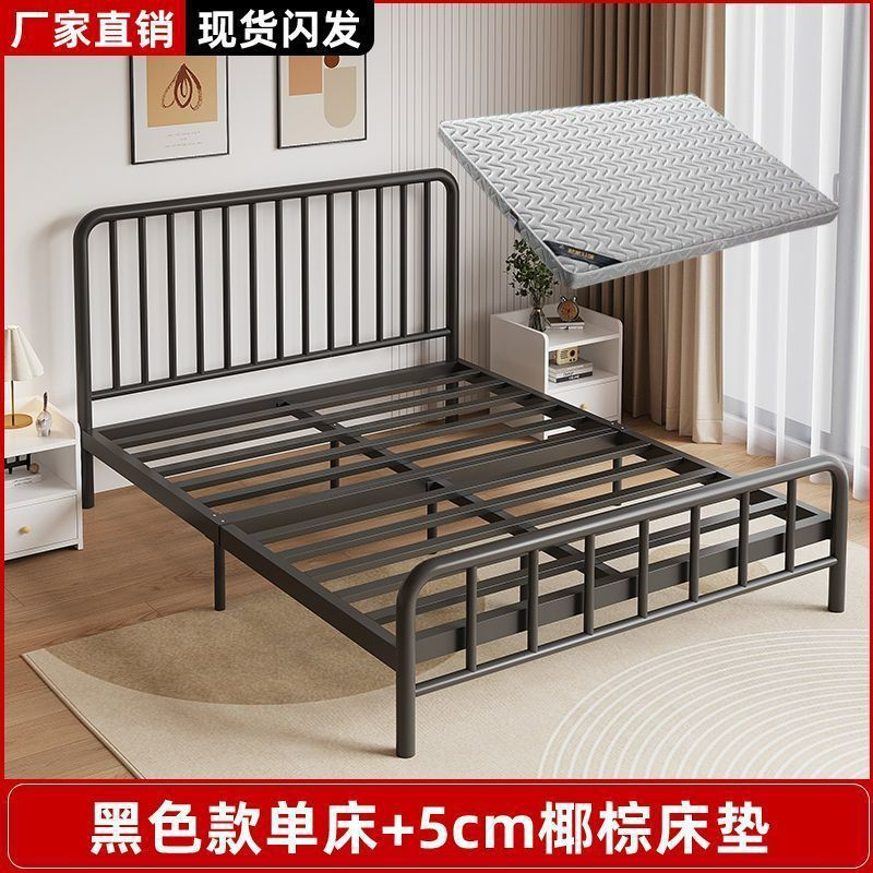 내구성이 뛰어난 심플한 철제 침대 더블 침대 1.8m 철제 침대 싱글 1.6m m 철제 프레임 침대 홈 렌탈 룸 인터넷 연예인스토어 가기