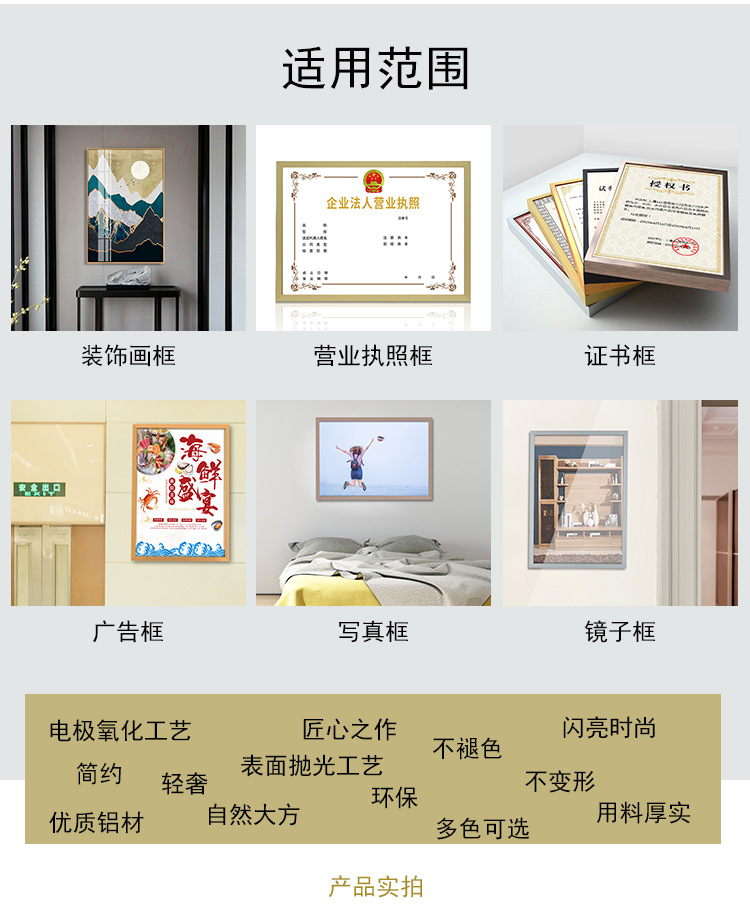 패션 간단한 알루미늄 합금 사진 프레임 인증서 금속 프레임 홈 장식 그림 프레임에 대한 다양한 색상 옵션스토어 가기