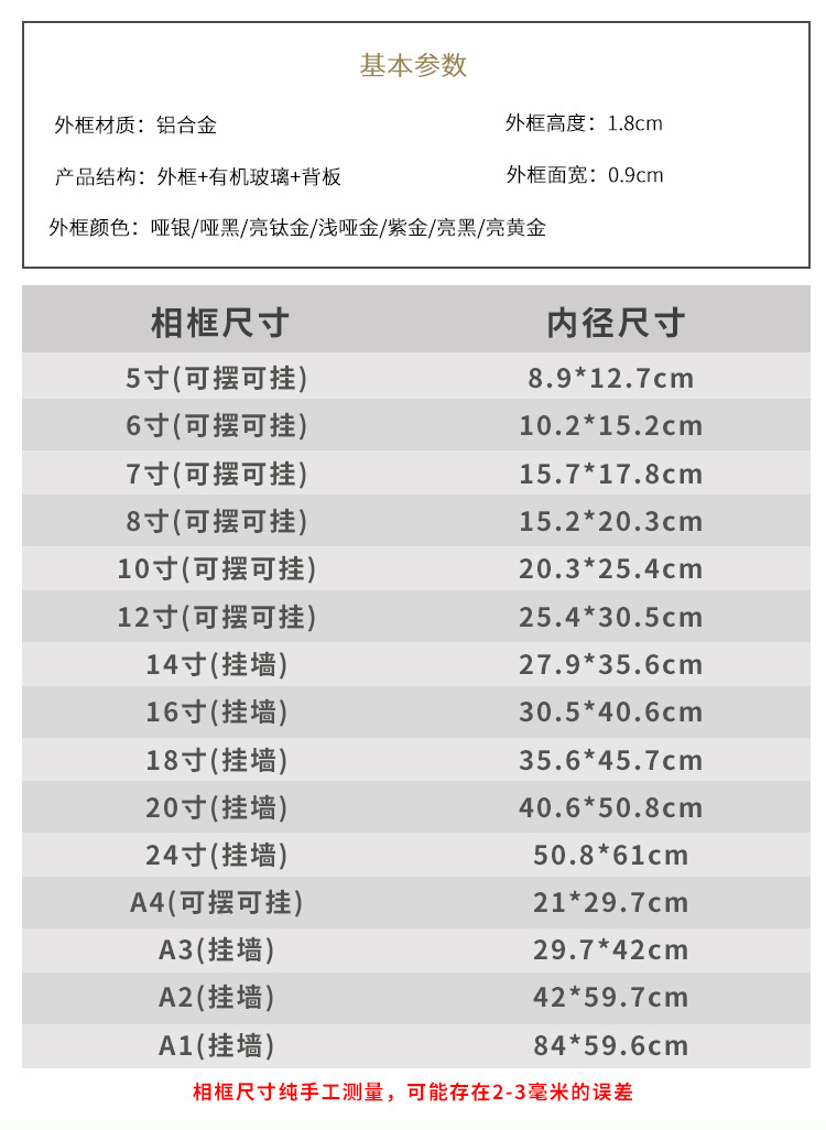 패션 간단한 알루미늄 합금 사진 프레임 인증서 금속 프레임 홈 장식 그림 프레임에 대한 다양한 색상 옵션