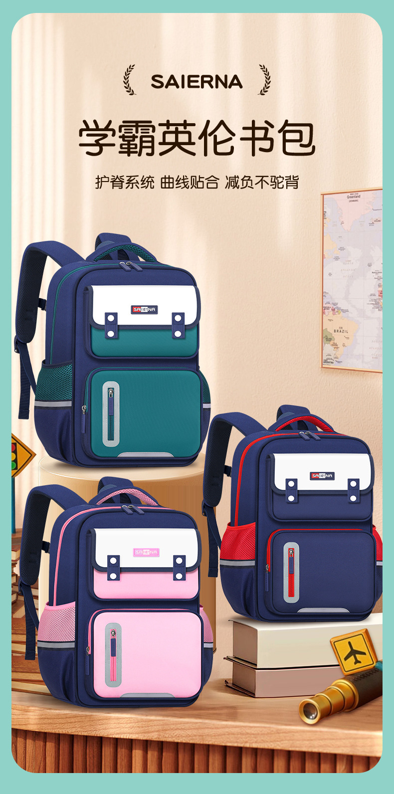 초등학생 책가방 1-6 학년 영국 배낭 남성과 여성의 경량 가방 인쇄 로고 도매스토어 가기