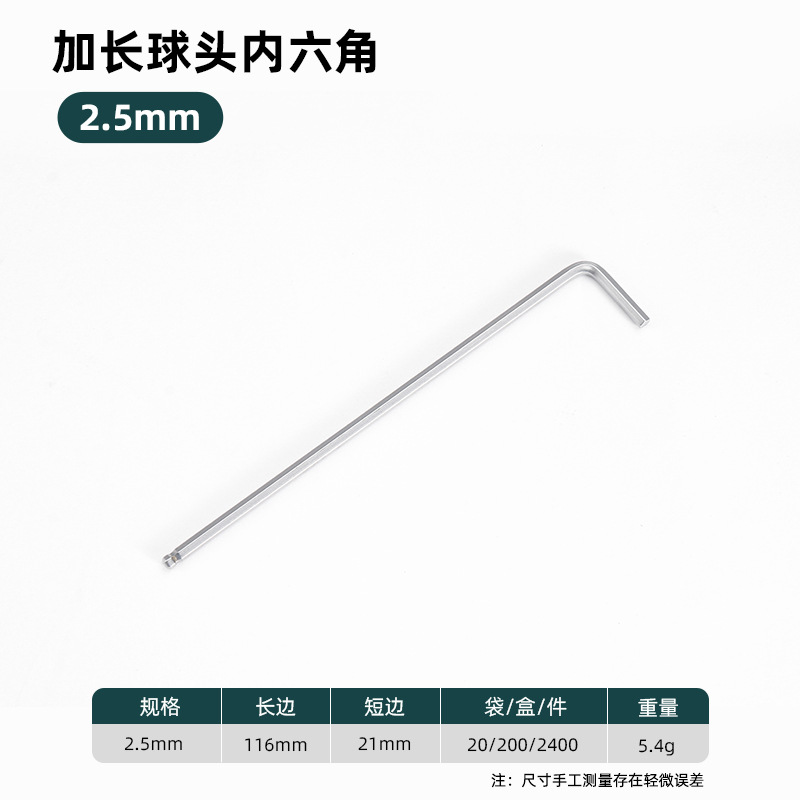 • 확장 볼 헤드 내부 육각형 2.5mm(포장하지 않은 상태에서 팩당 20개), 5.5g